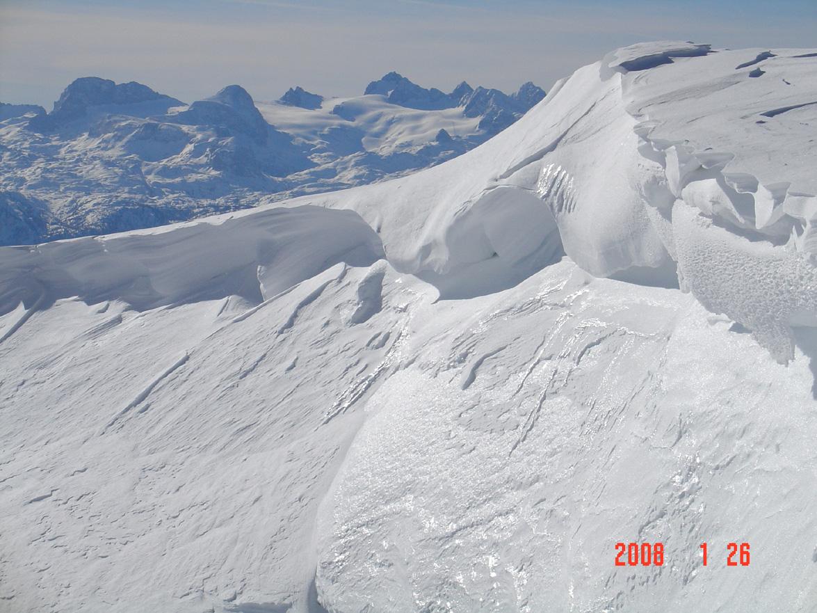 Bad Ischl, Rettenbachalm (ca 600 hm) Abgang. Forststraße Ri Bärengraben, neue Trasse, wesentliche Erleichterung. Ab Bärenkoglalm freies Gelände. Sonnseitig bereits Firn, schattseitig Pulver, dazwischen wegen der starken Sturmböen abgeblasene Eisplatten bis zum Gipfel des Schönberges (2100 hm).