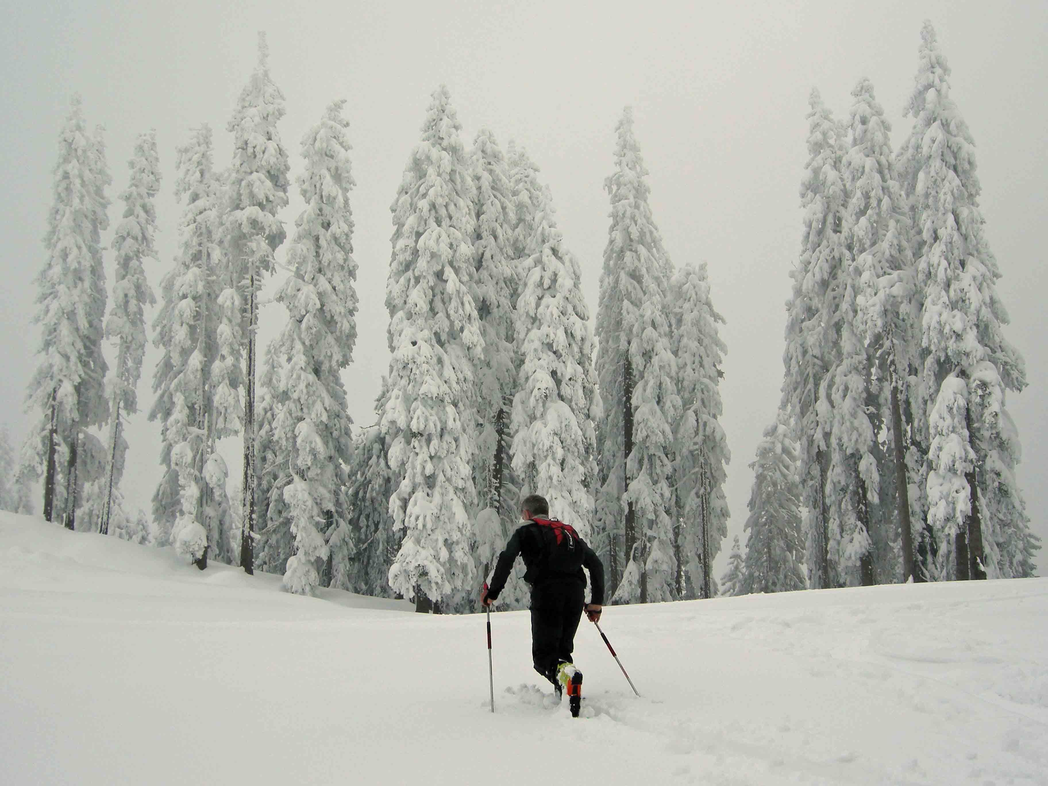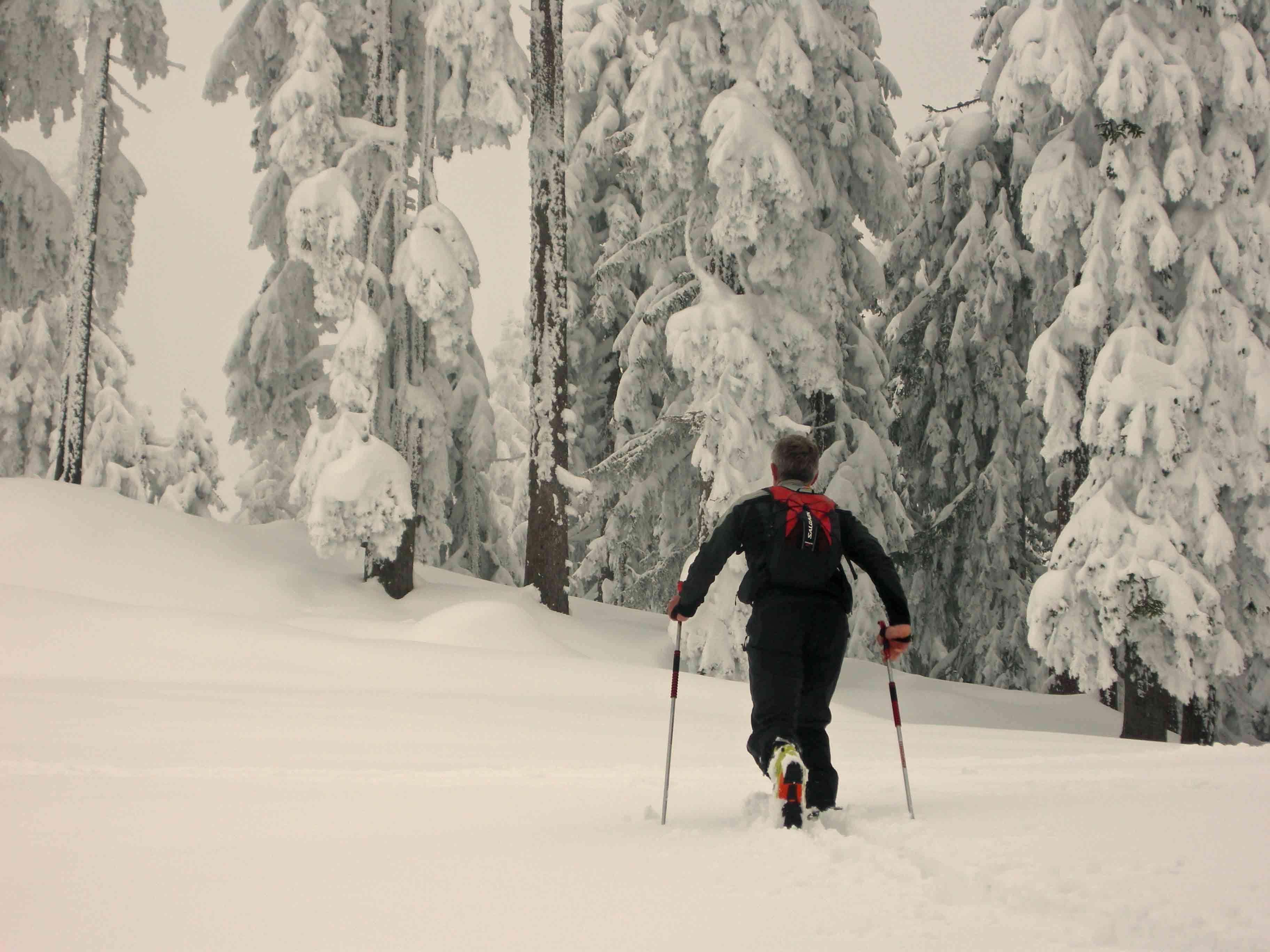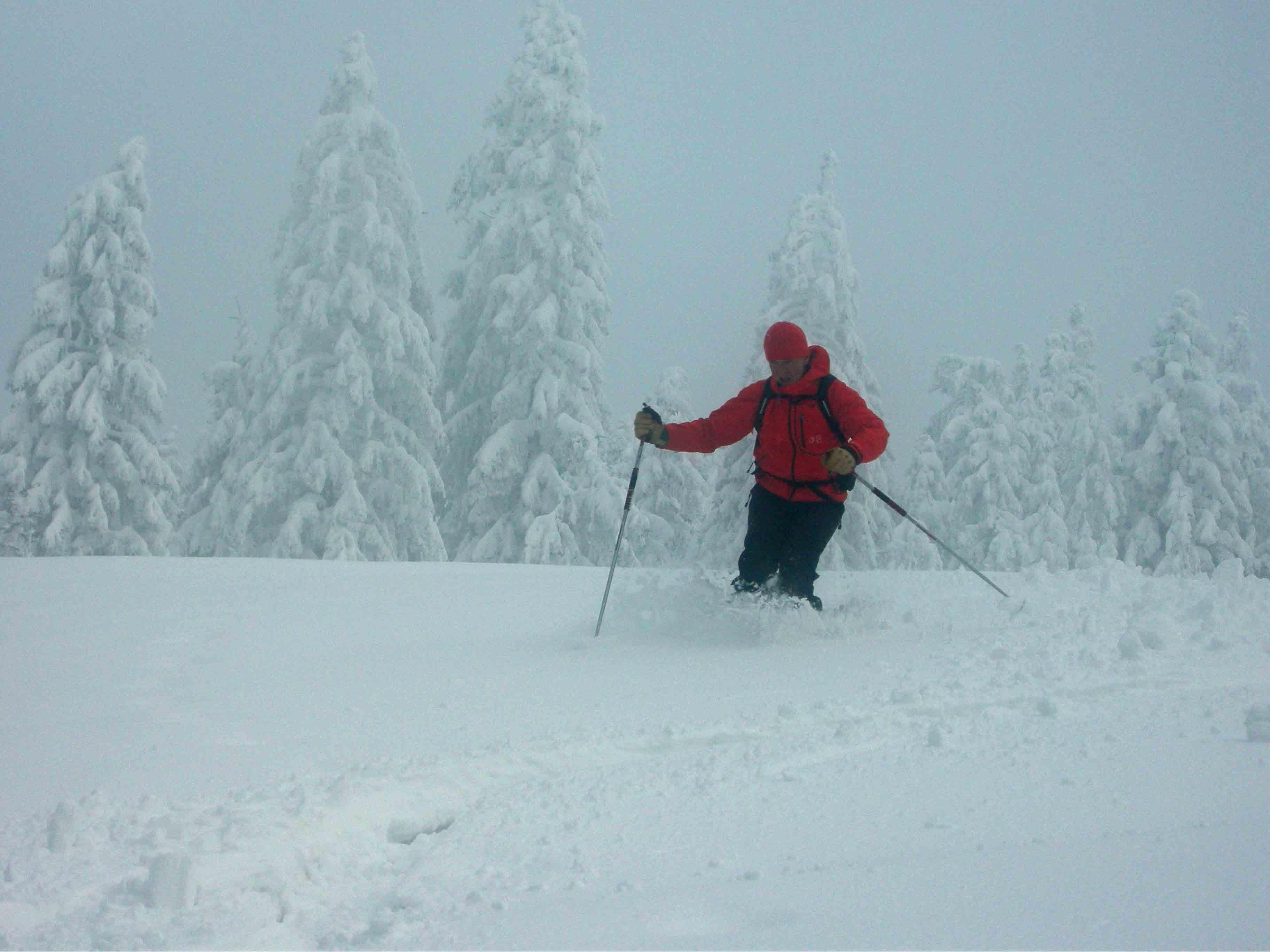 Als ich bei einer Visite in Hintertal im Tal 30cm Neuschnee sah mußte ich die Mittagpause unbedingt zu meiner ersten Schitour nützen. Pulver von oben bis unten vom feinsten. Nachmittags hat es dann aber schon angewärmt.
