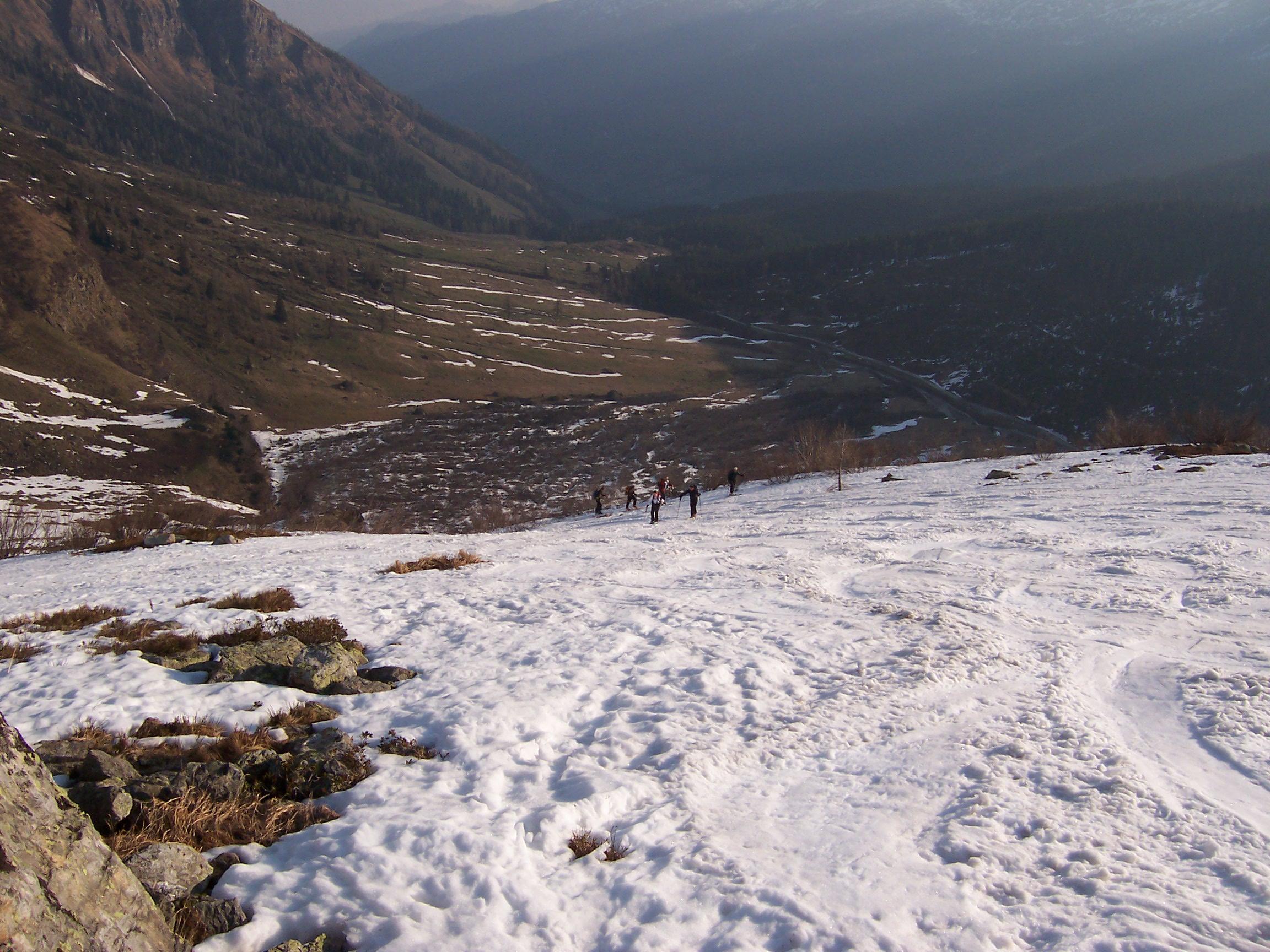 Um halb sieben in der Früh starteten wir vom stark frequentierten Parkplatz Lenzanger. Ca. eine halbe Stunde mußten wir die Ski tragen. Bei den ersten Metern auf Skiern (Lacheggklamm) waren die Harscheisen hilfreich. Da der Schnee bereits um 10 Uhr durch die südliche Hangexposition auffirnte, setzten wir den Anstieg im weichen Schnee fort. Die gute Fernsicht und die sommerlichen Temperaturen am Gipfel teilten wir uns mit etwa 50 Gleichgesinnten. Die Abfahrt gegen Mittag wartete bereits im Gipfelbereich mit Sulz auf!