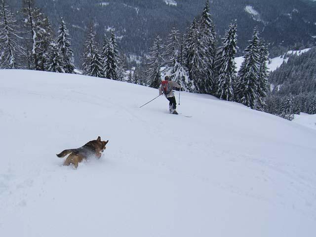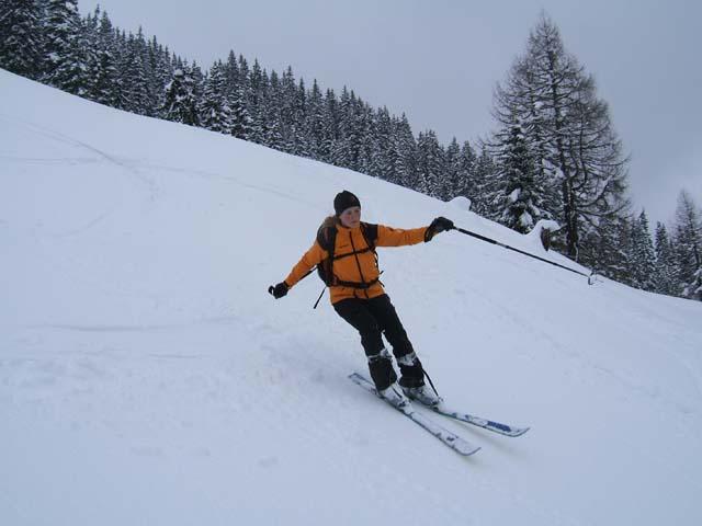 Wir waren gestern 24.3.2007 am Ahornstein aus dem Schwarzenbachgraben (zweigt bei der Strasse Lend-Dientenab). Start bei der Jausenstation Ottino. Genug Schnee, keine Untetrgrundberührung. Im Wald und geschützten lagen noch Pulver, sonst angefeuchteter Schnee, aber gut fahrbar. Gerade recht für unsicheres Wetter, am schönsten natürlich bei Pulver im Hochwinter!