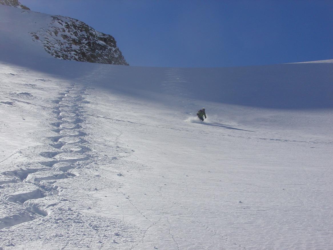 Abfahrt vom Rainerhorn auf den Sattel zur Schwarzen Wand ziemlich glatt.
