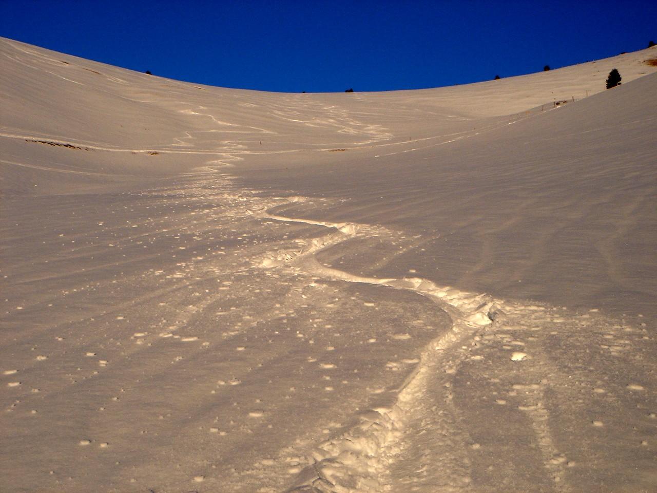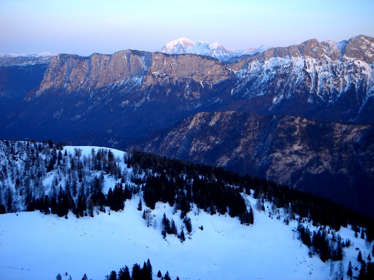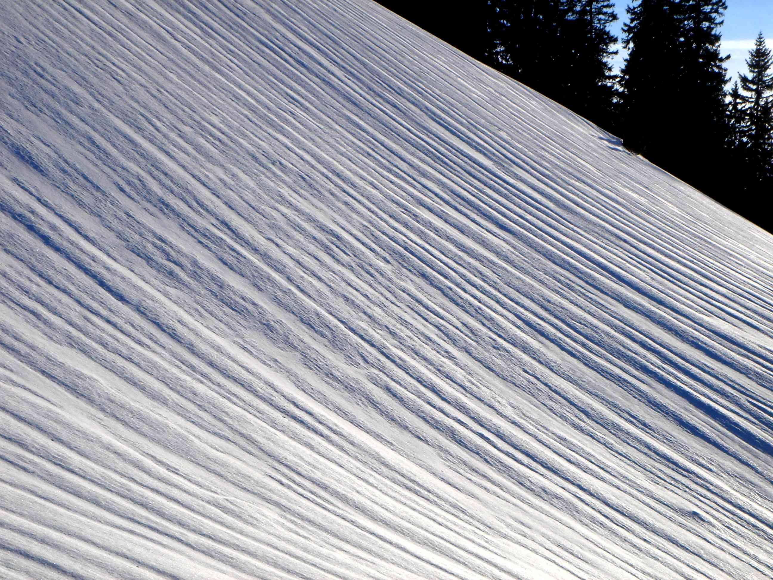 Tourenverhältnisse: Vom Heutalbauern muss man die Schi ca. 10 Min. tragen, ab der Waldschneise geht es derzeit noch, allerdings nicht mehr lange, ohne Unterbrechung zur Hochalm. Der Schnee ist tagsüber sonnseitig patzig, schattseitig gefroren mit einer leicht eisig/harschigen Oberfläche, die je nach Tageserwärmung durchbricht mit dem Ergebnis: Bester Bruchharsch.