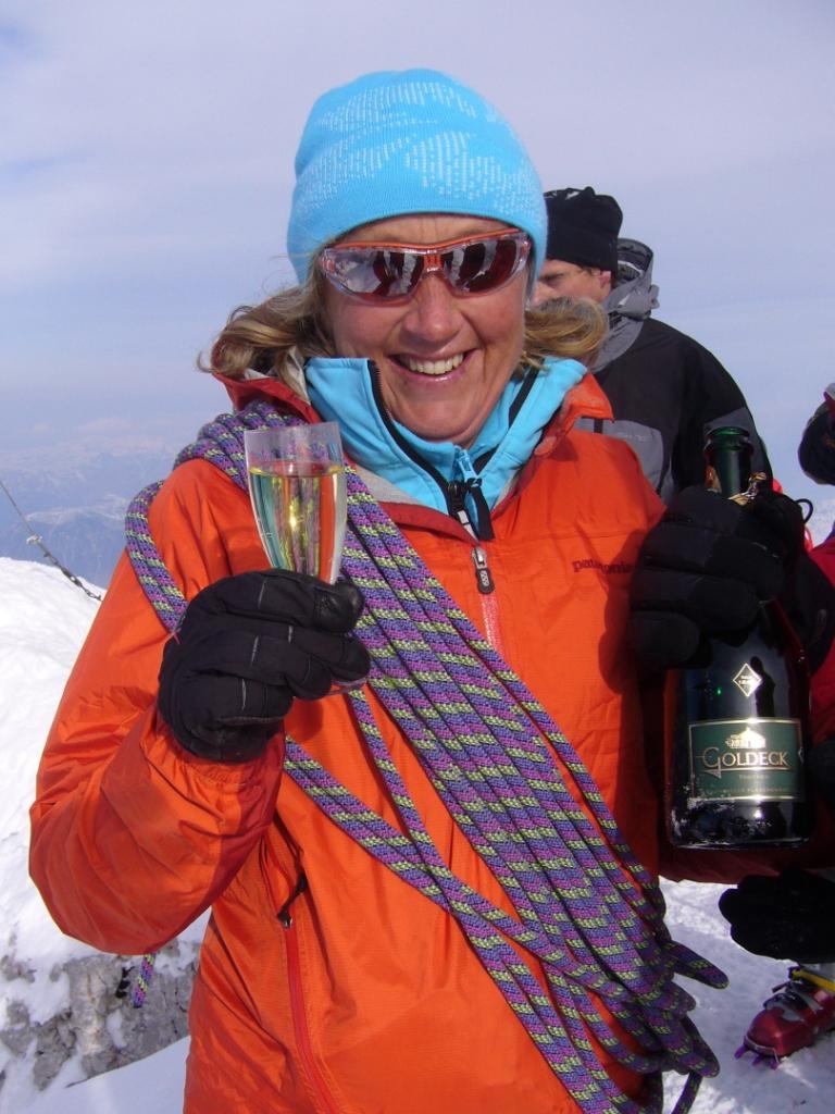 Anlässlich der Einladung zur Geburtstagsfeier am Wiesberghaus setzte sich vom Oberfeld eine Menschenlawine über den Rumpler zum Dachstein in Bewegung. Rechtzeitig zur Gipfelbesteigung verzog sich der Nebel und es schien für Martina die Sonne. Nach der Abfahrt zum Wiesberghaus wurde dort bei Bratl und Lifemusik gefeiert. Neben einheimischen Freunden kamen auch noch Bergfreunde aus Bayern und Südtirol und auch Aloisius aus Uganda fand sich ein, den Martina bei der Ersteigung des Ruwenzori vor einigen Jahren kennen lernte. Ganz Eifrige warteten in der Gaststube auf das Frühstück, um ja am nächsten Tag den Sonnenaufgang und den Abmarsch zur Simonyhütte nicht zu verpassen.