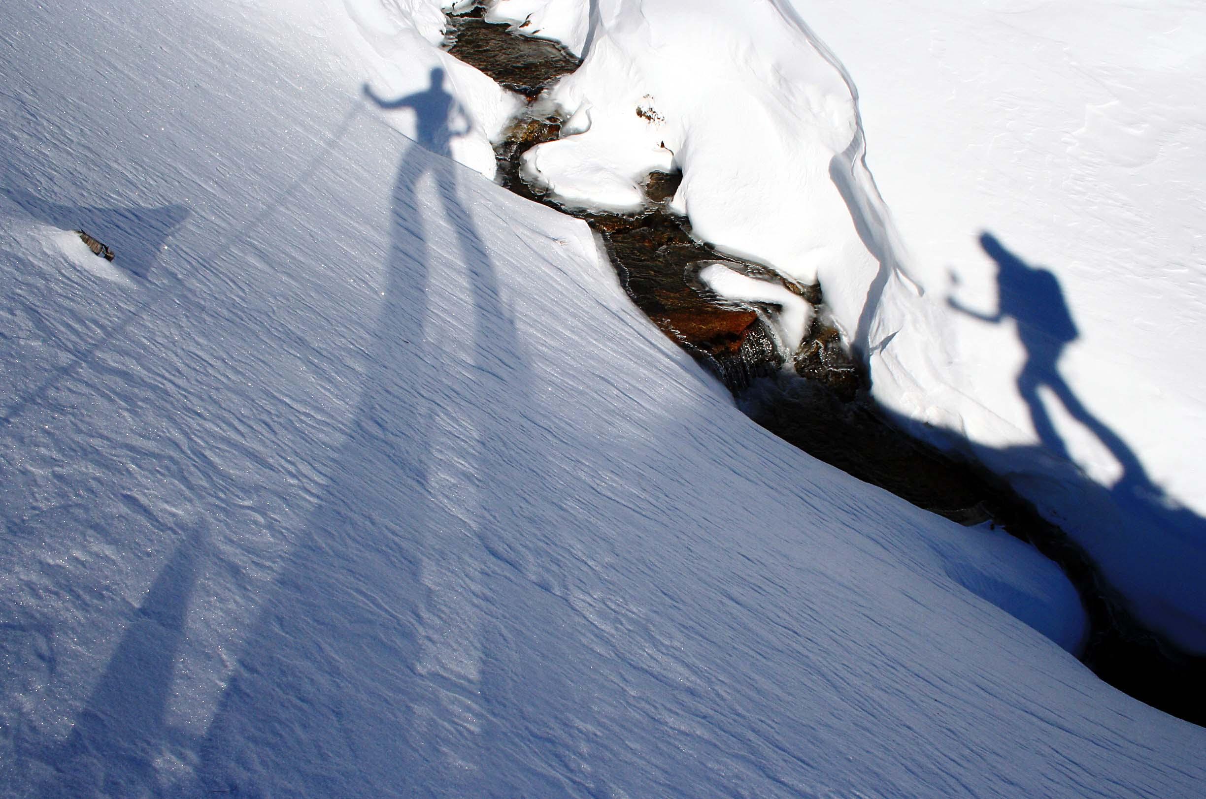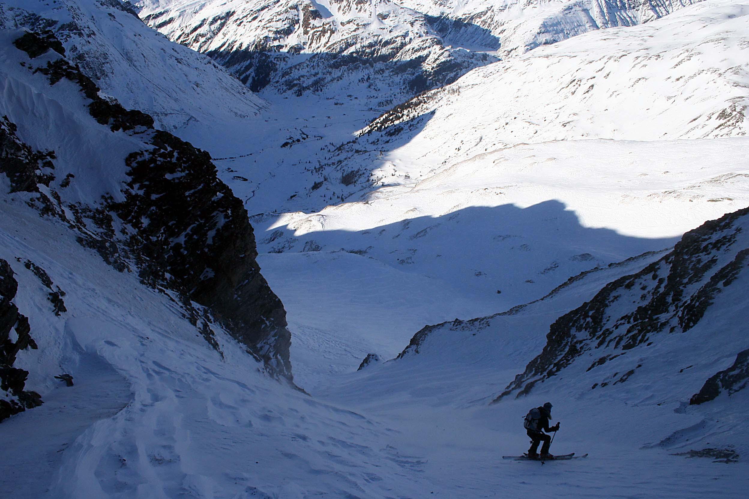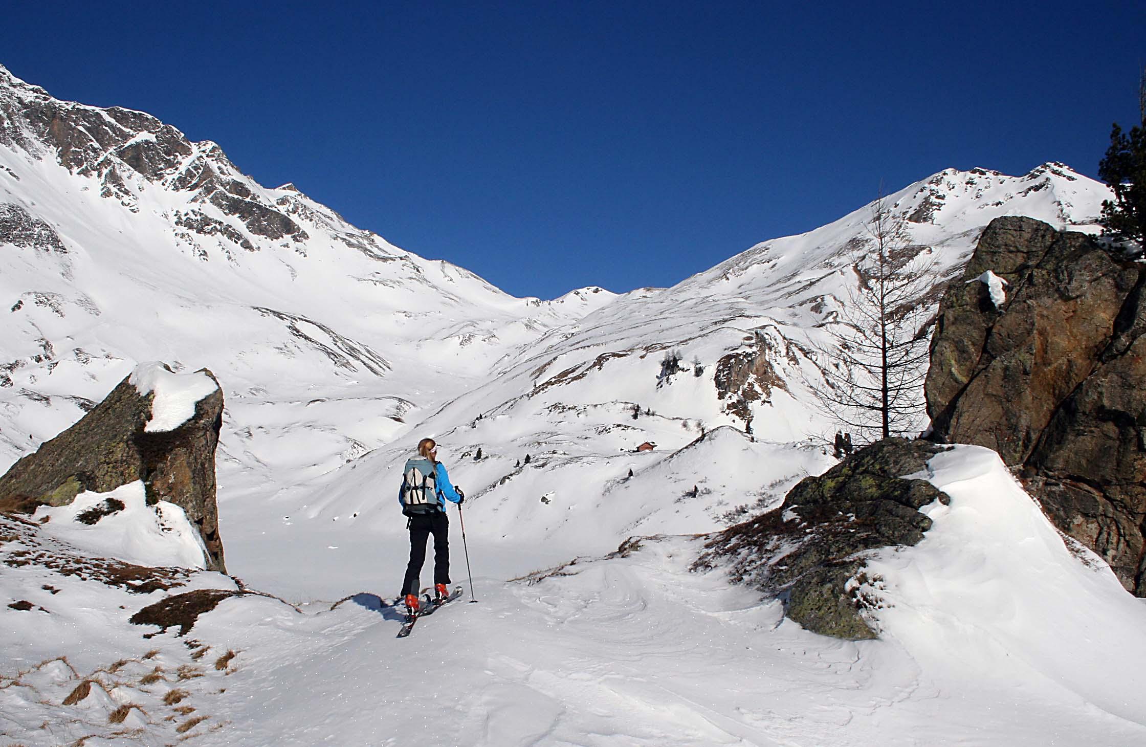 Hohe Geisel 2974m Grenzberg im Herzen des Nationalpark Hohe Tauern. Überschreitung vom Süden. Mit der Bahn von Böckstein nach Mallnitz,weiter mit dem Taxi zum Parkplatz unterhalb der Jamnighütte.(1700m) Aufstieg in die Feldseescharte/ Weißgerber Biwak (2714m) über den Südgrat auf die Hohe Geisel (2972m). Abfahrt über die Hagener Hütte, Eselkar nach Sportgastein. Zurück mit den Bus nach Böckstein. Südseite- günstige Touren und Firnverhältnisse zur Feldseescharte, zur Hagener Hütte oder auch Romatespitze. Lokale Gefahrenstellen im Kammbereich durch Einwehungen (Feldseescharte) Nordabfahrt- Im Gipfelhang Pulver, danach bis zur Hagener Hütte alles verblasen, gepresst und mit Windgangln übersät. In den Steilhängen der ?oberen Hagener Einfahrt? stabiler, harter griffiger Untergrund. Teils Pulver durch die ?Eselkar? und ?Gugelrinne? nach Sportgastein.