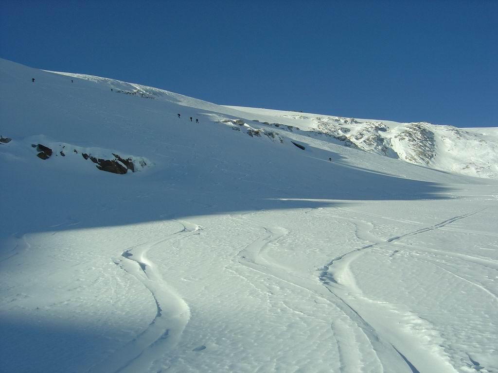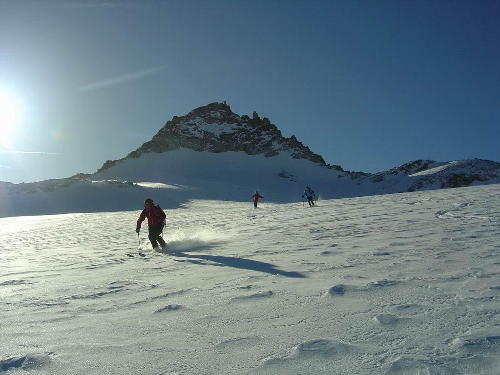 Da seit gestern die Seilbahn auf die Rudolfshütte in Betrieb ist, entschlossen wir uns heute zu einer Tour auf die Granatspitze. Bei wolkenlosem Wetter, jedoch zum Teil lebhaftem Wind konnten wir heute für diesen sonst stark überlaufenen Gipfel einen relativ einsamen Aufstieg genießen. Die Abfahrt bescherte uns herrlichen Pulverschnee der nur zum Teil etwas windgepreßt war. Die Abfahrt von der Rudolfshütte ins Tal ist derzeit mit Skiern nicht zu empfehlen (Besser mit der Seilbahn ins Tal).