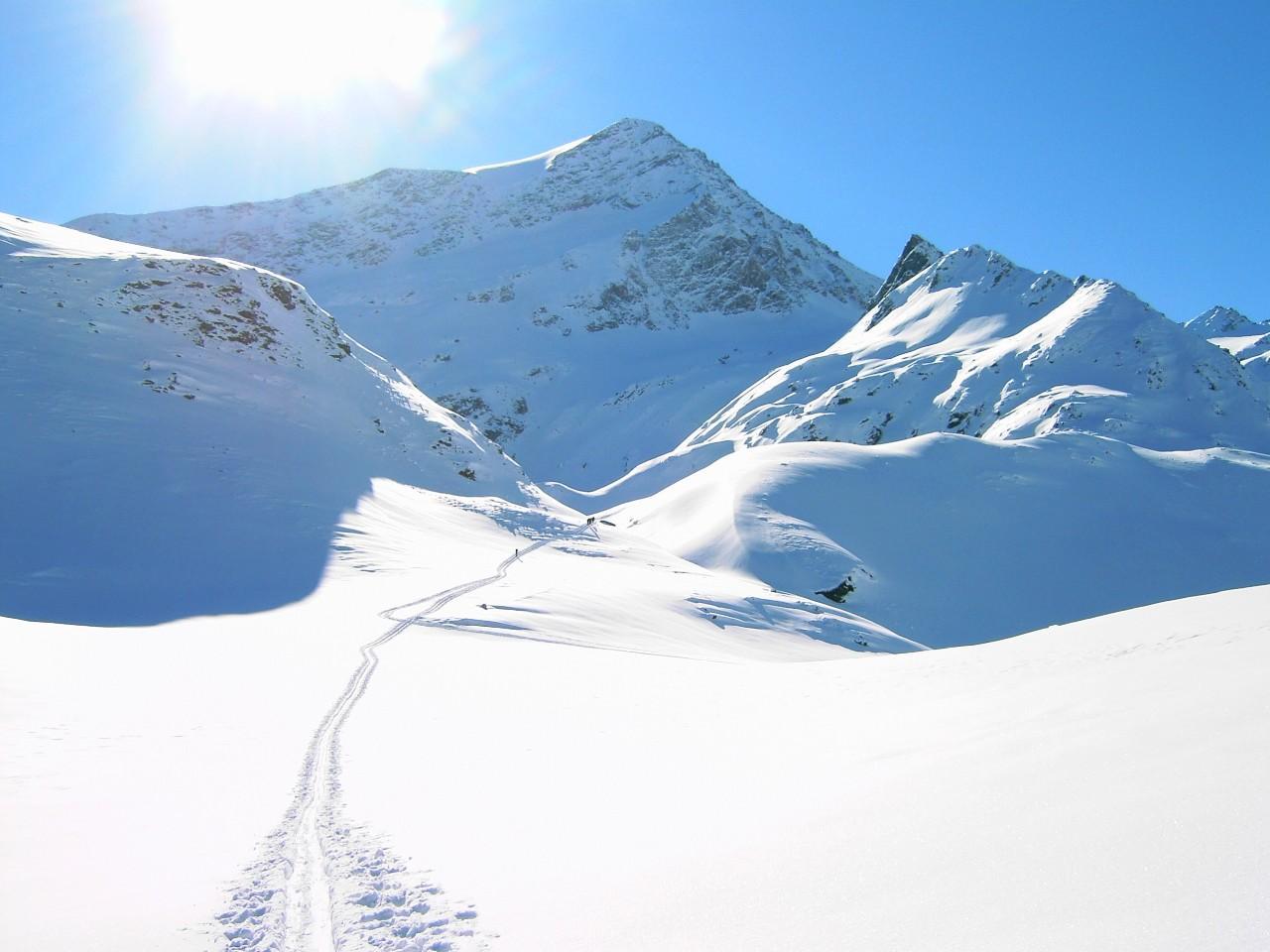Bedingungen: Am Enzingerboden auf 1470 m -7 Grad, von unten bis oben Pulver bis 30 cm, am oberen Hocheiserkees sehr kalter Westwind, am Gipfel Windstill und ca - 3 Grad