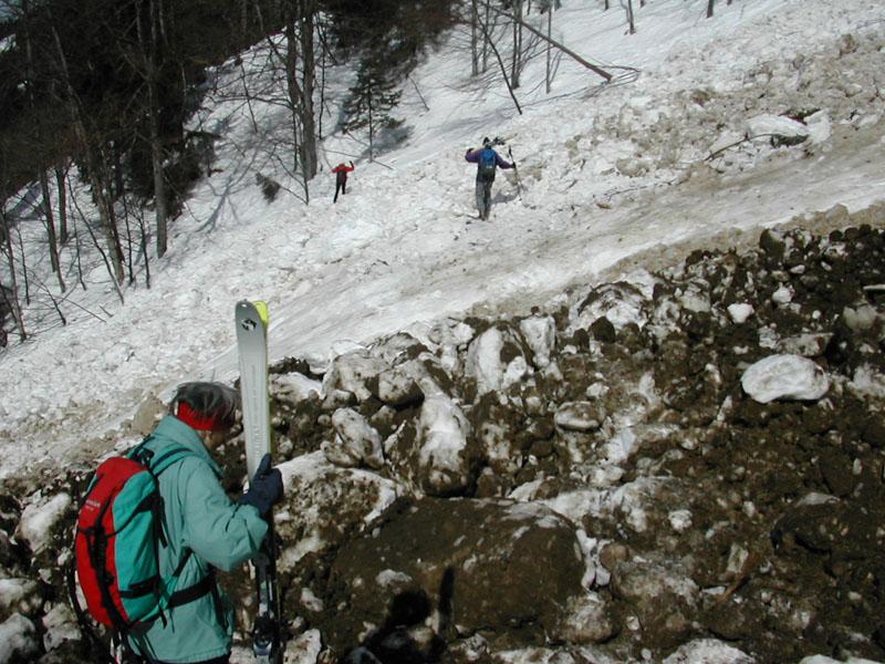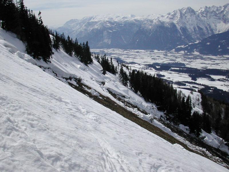 Bei einer kurzen Tour auf den Schlenken am Freitag Vormittag haben wir eine beeindruckende Grundlawine in der Schlenkenrinne entdeckt. Schon bei einer Tour Anfang Jänner habe ich "Lawinenmäuler" in der Rinne beobachtet. Einsendungen in letzter Zeit haben auch davon berichtet. Laut Wirt von der Halleiner Hütte hat es am Freitag in der Früh ordentlich "gerumpelt".