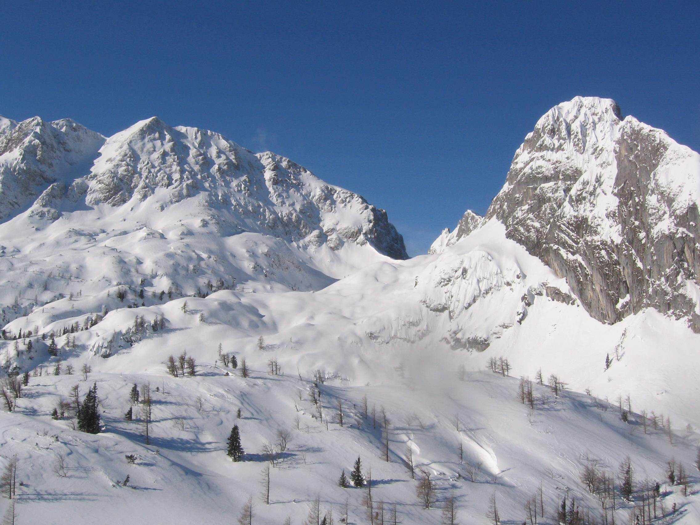 Am heutigen Morgen sind wir aus den Talnebeln des Abtenauer Beckens in die traumhafte Kulisse des Tennengebirges enteilt. 10 cm Neuschnee auf Harschdeckel, ruhiges Wetter bis in die Kammlagen, aber Föhnstürme in den Gipfelbereichen.