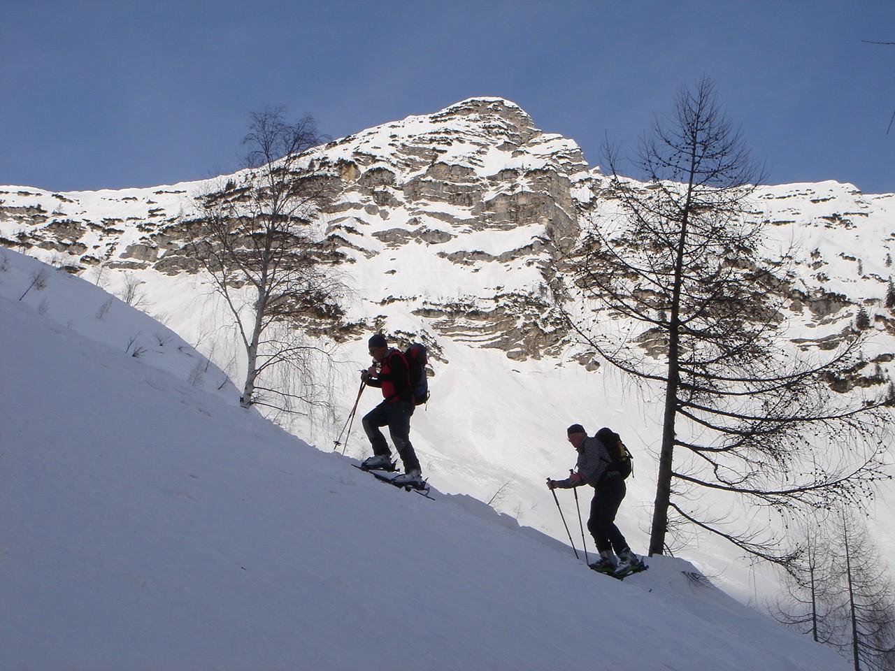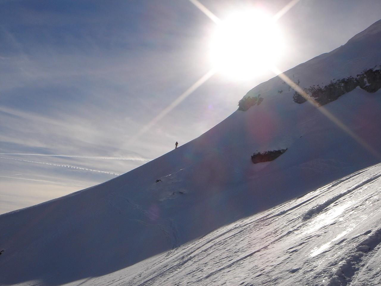 Aufstieg von Kragensteg durch das Gimbachtal auf den Mittagkogel und Speikkogel. Nur bei sicheren Verhältnissen empfehlenswert, da durch sehr steile Seitenhänge lawinengefährdet und auch die Tour selbst im unteren Teil nicht gerade flach ist.