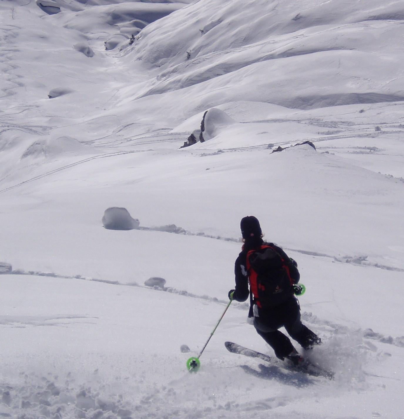 Vom Parkplatz in Rohrmoos (Maria Alm) haben wir uns heute dezent von der Nebelsuppe verabschiedet und sind über die Kaseregg-Kapelle durch den Wald Richtung Freithofalm aufgestiegen. Nachdem es Richtung Hühnerkopf immer wieder gegrollt und gedonnert hat und die ein oder andere Lawine dahergerollt ist, haben wir uns doch für die Buchauer entschieden. Wie des öfteren waren wir auch diesmal wieder zu spät unterwegs. Die Sonne hatte heute schon so eine Intensität, dass wir gar nicht recht etwas gefunden haben, das wir noch ausziehen hätten können. So haben wir den vollkommenen Gipfel- bzw. Schartensturm ausgelassen und uns Richtung Mittagwandl begeben, kurz die Kohlehydratespeicher aufgefüllt und sind dann in einer 'Moiten' abgefahren. Aber Spaß hat's trotzdem gemacht!