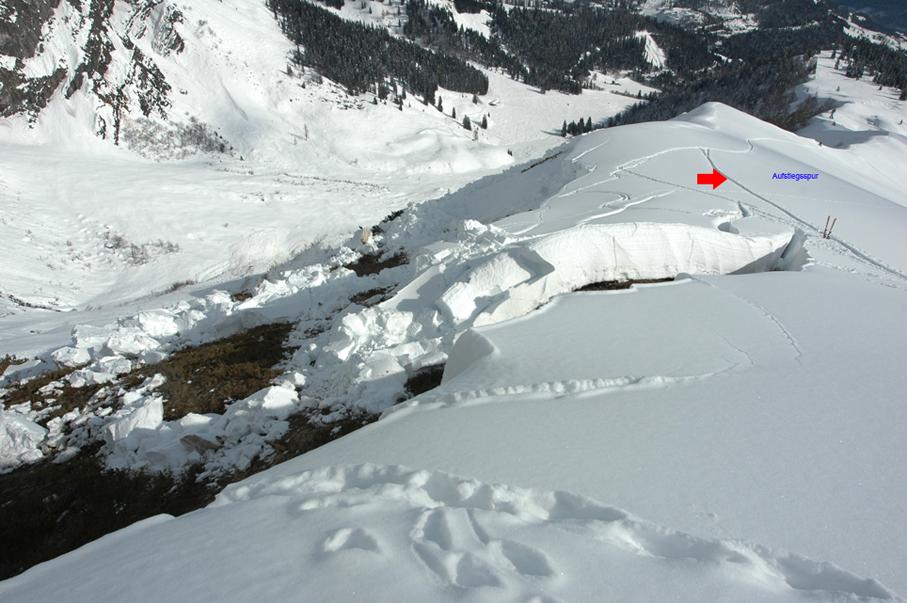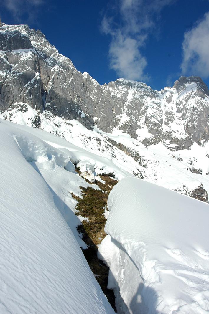 Am 9.2.05 stieg ich von der B 164/Mühlbach/Hkg. über die Wiedersbergalm zum "Fürst" auf um ein frisches Schneebrett für die Lawinenseite zu fotografieren.
