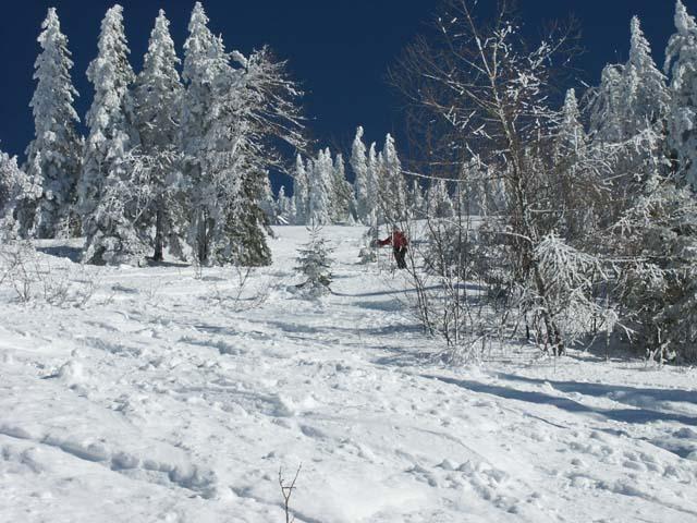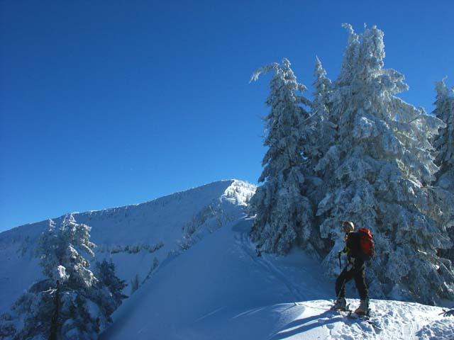 Bei der hohen Lawinen-Warnstufe überlegt wohl jeder Tourengeher sehr genau, ob er überhaupt eine Tour gehen soll und wenn dann, welche. Wir habens uns am Faschingsamstag leicht gemacht und sind mit Millionen von Tourengehern auf den Schlenken aufi g´rannt... Was mich ehrlich gesagt a bisserl wundert ist, dass kein Mensch sich was denkt bei einer Anstiegsspur in einem Hang mit ca. 40% Hangneigung... Naja, da ist er der gefährliche Gruppenzwang. Man denkt, es rennen eh so viele rauf, warum soll es da gefährlich sein. Der Schlenken ist sicher bekannt als Tour, die man jederzeit gehen kann... Nur ist das auch wirklich so? Ich war auf jeden Fall auch oben und nix is passiert... auch beim Runterfahren hat der Schnee gut gehalten. Wir haben uns bei der Abfahrt daran gehalten, nicht in unverspurte Hänge rein zu fahren und trotzdem ein tolles Fahrvergnügen gehabt.. Power, powder...