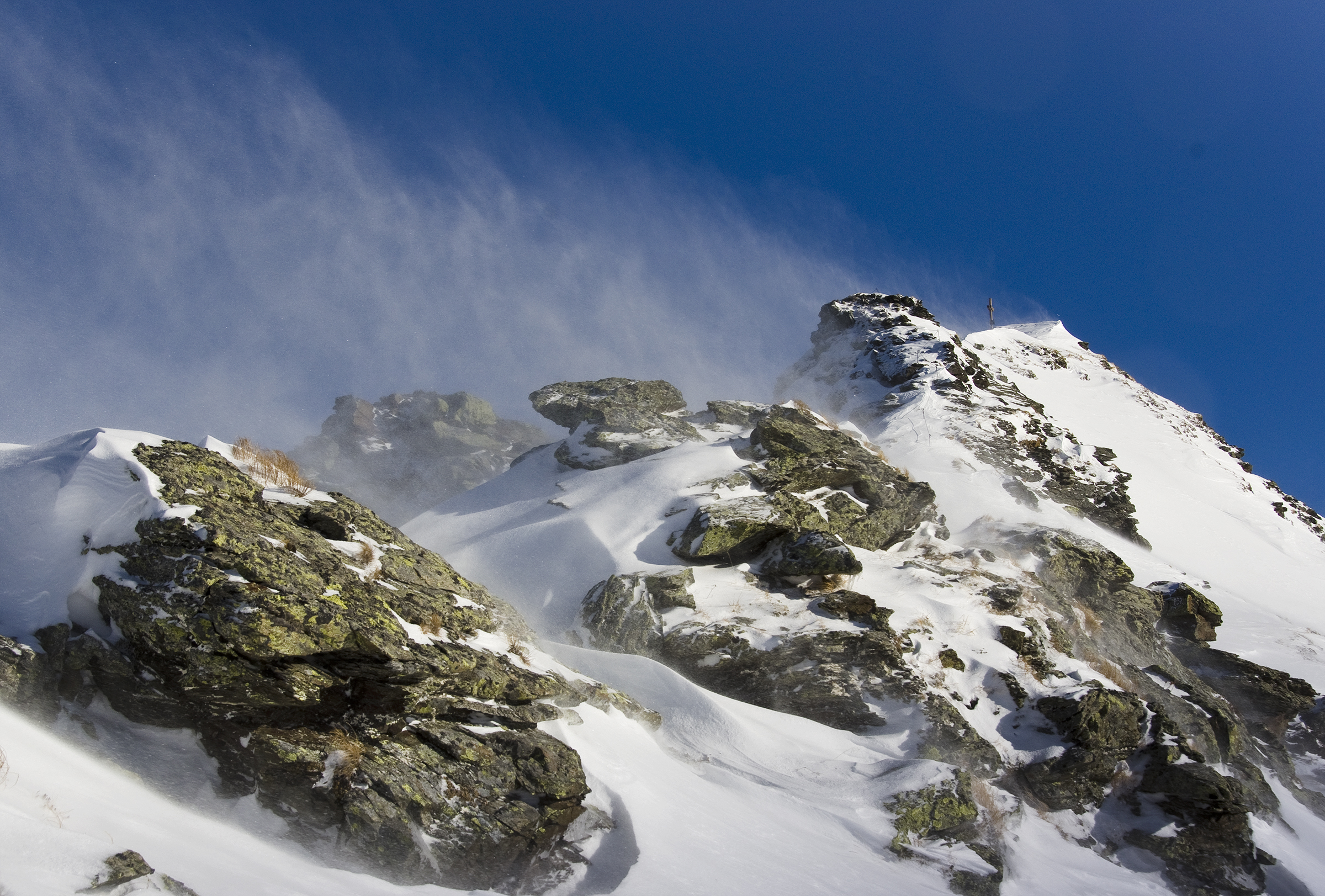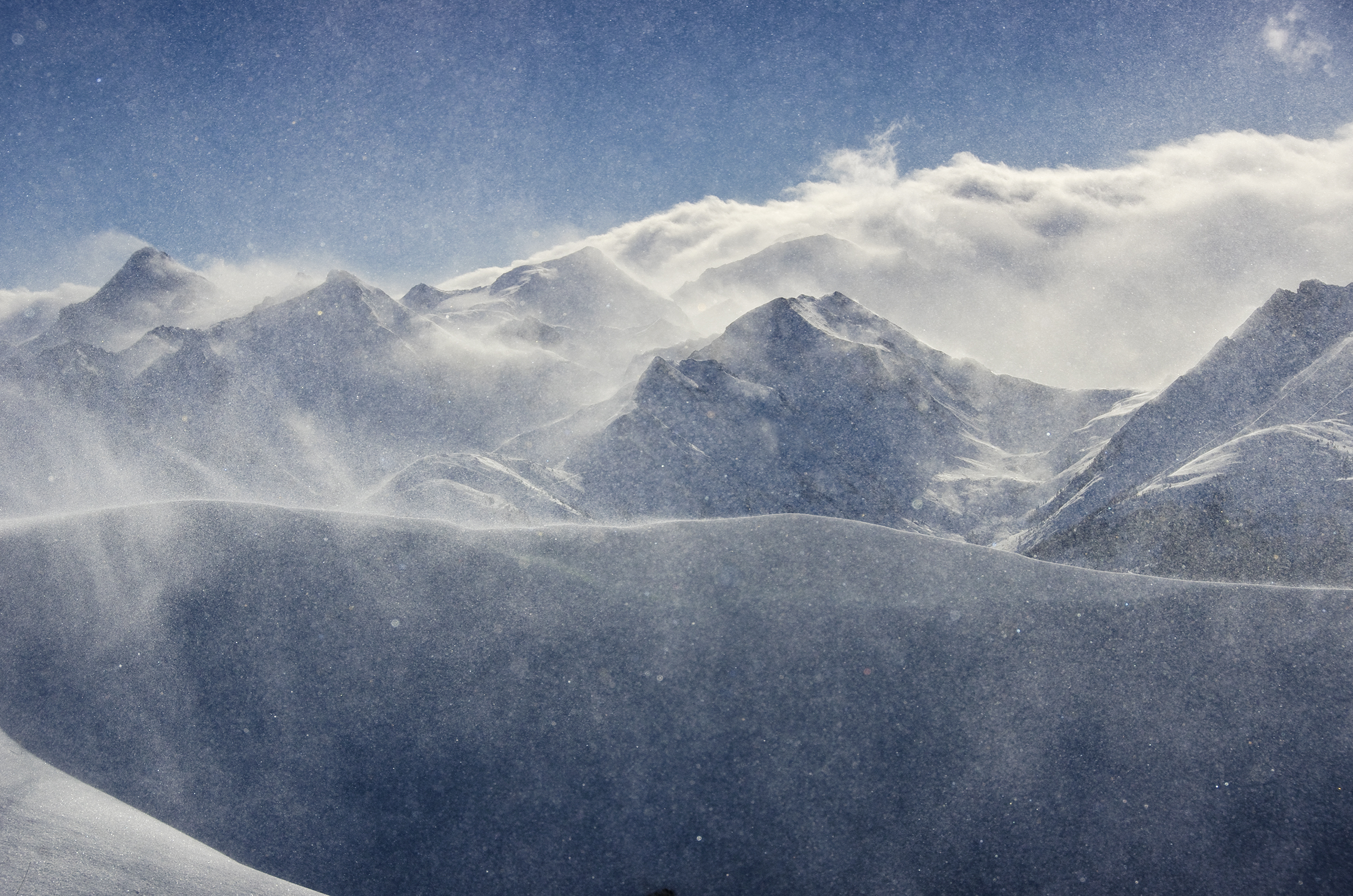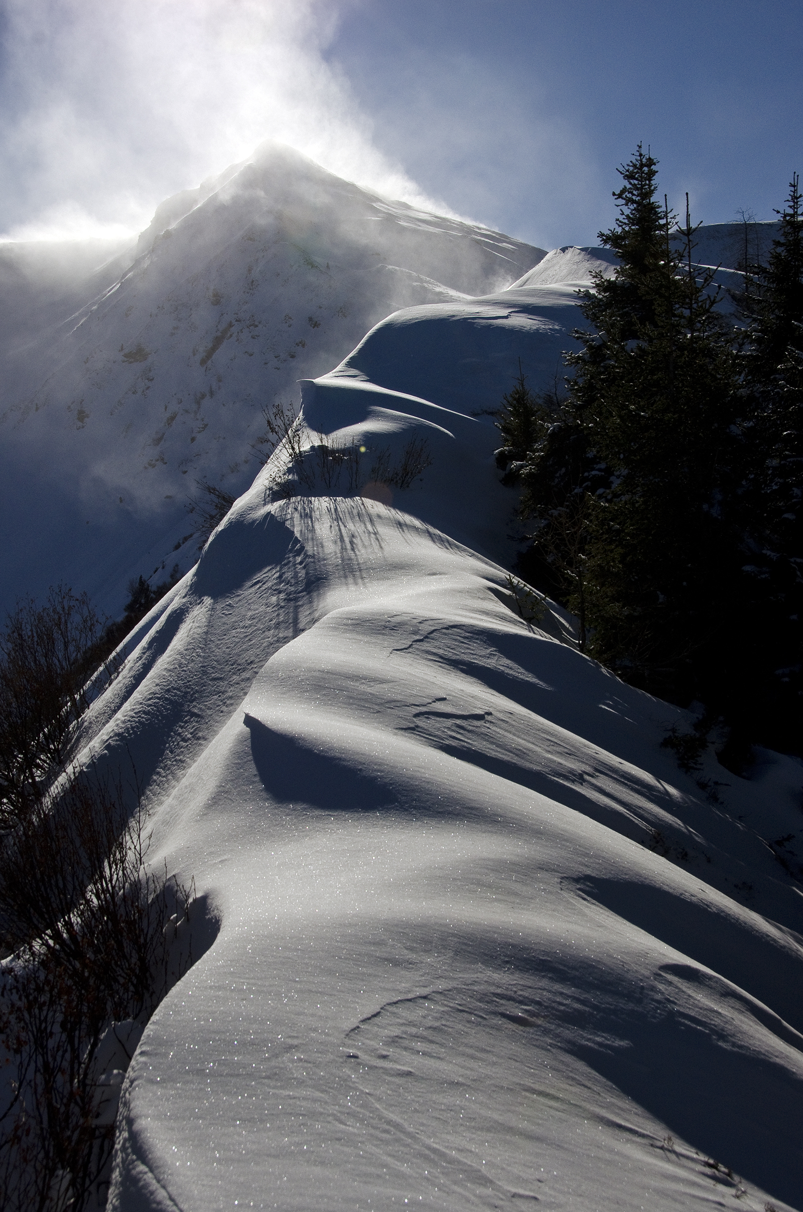 Die Einfahrt vom Grat ins Polzkar war heute nicht ratsam, zu lawinengefährlich. Irgendwo ist der Schnee ja hingetrieben und abgelagert worden...