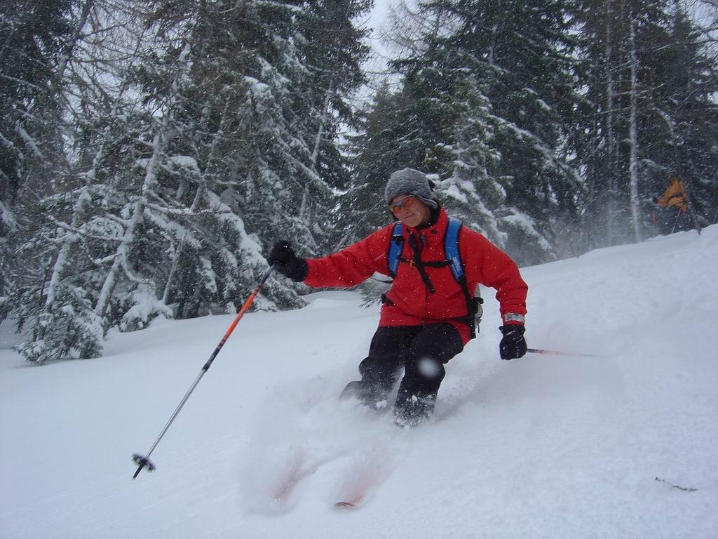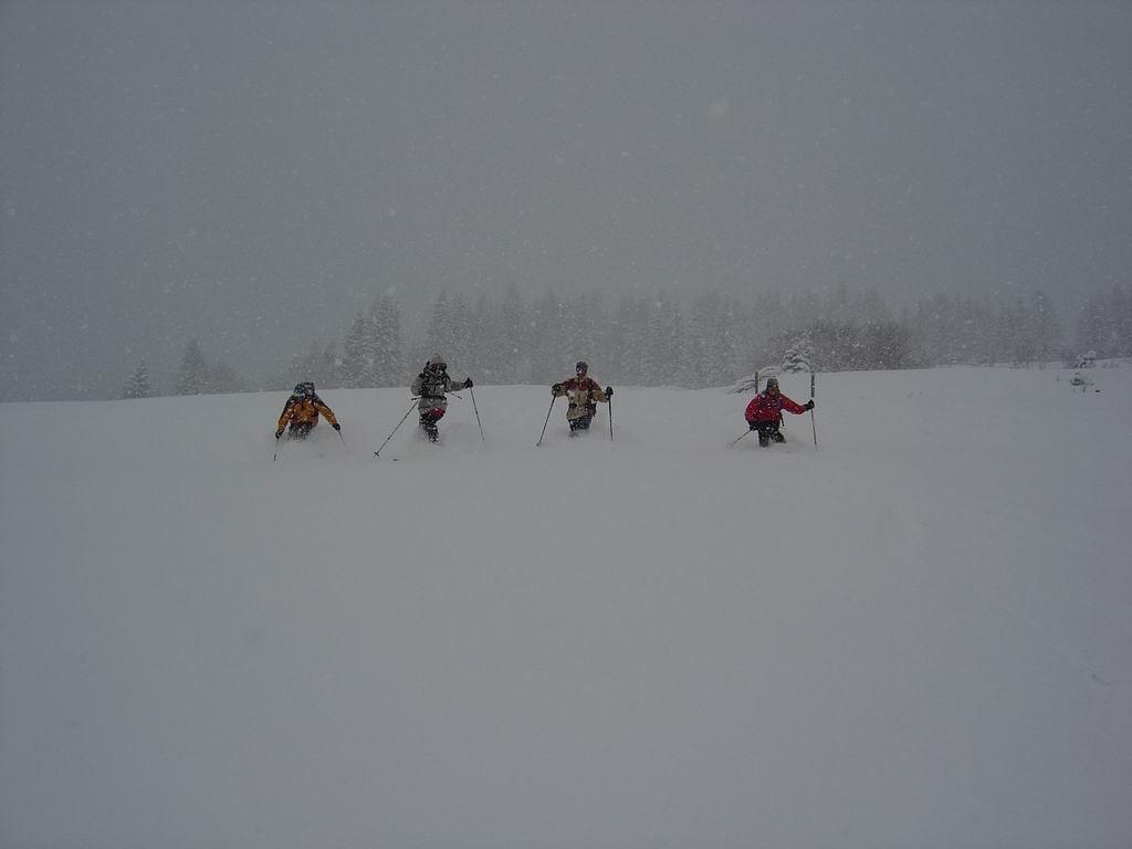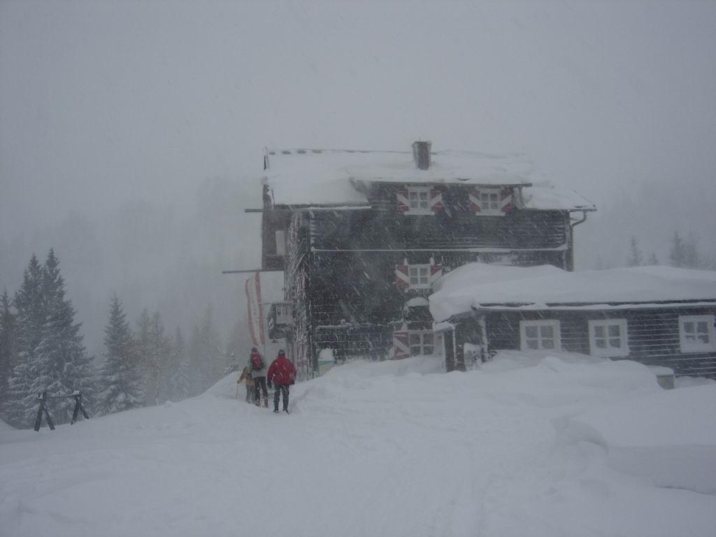 Die starken Schneefälle und die schlechte Sicht veranlaßten uns heute wieder einmal die netten Wirtsleute Christiane und Lois auf der Kleinarlerhütte zu besuchen. Es herrschte im Hüttenbereich starker Wind. Bei der Abfahrt kann man zum Teil auf die präparierte Rodelbahn ausweichen.