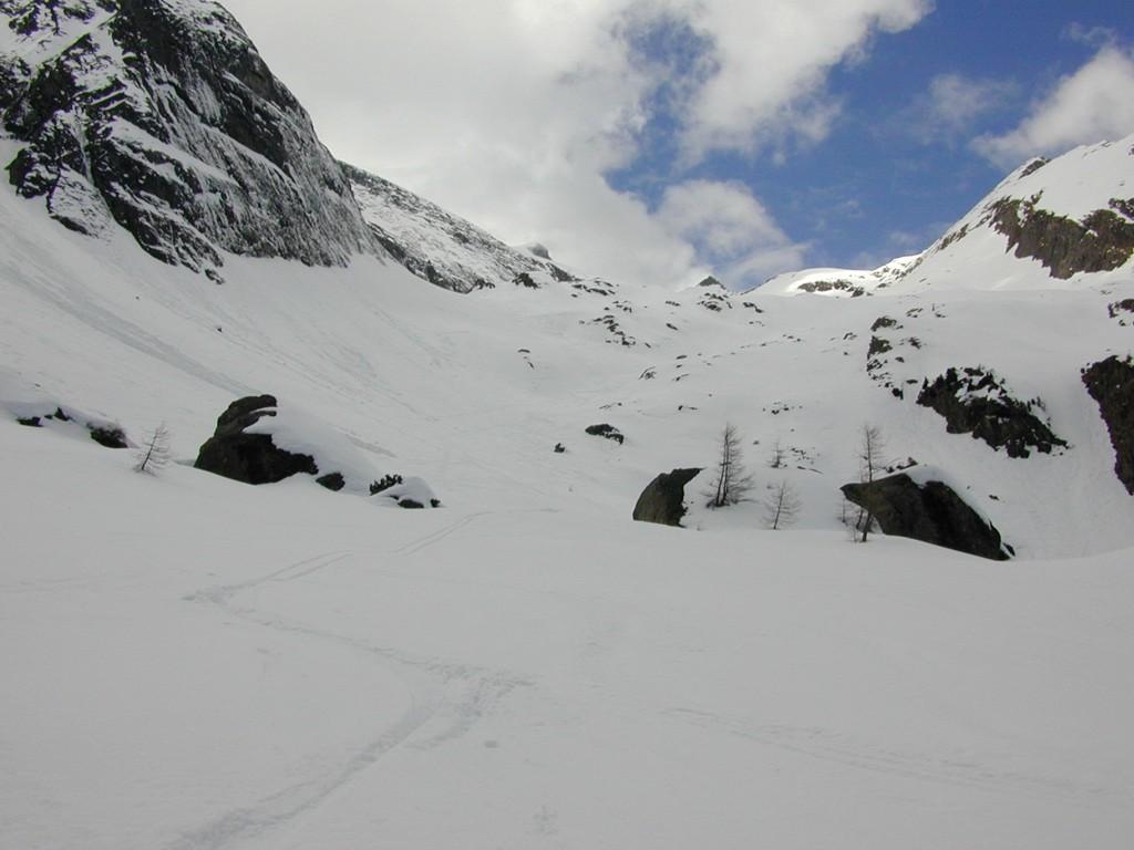 Vom Wimmhof (940) in Fusch in der Morgendämmerung (5:45 Uhr) zunächst die Schi tragend den Almweg hinauf. Nach ca. 25min. geht's dann auf den Schiern weiter. Da über Nacht die Temperaturen nicht unter 5°C waren, gings folglich schon im etwas weichen Sulzschnee los - Die Spur wurde aber mit steigender Höhe immer fester. Vorbei an der Schmalzgruben Grundalm (1364) zur Schmalzgruben Hochalm (1720). Wetter zu dieser Zeit sehr trüb und im oberen Schmalzgrubenkar sogar etwas Schneefall! Schidepot auf dem Zwingkopf (3117). Zu Fuß weiter zur Schneespitze (3317). Wetter ab hier schon sonnig. Den letzten Anstieg zum Hohen Tenn hat dann außer mir niemand mehr gemacht - hat sich aber gelohnt. Achtung! Sollte man lieber zu zweit machen - 2 kritische Stellen. Wetter jetzt endgültig super. Die Fönmauer bleibt auf Kärtner Seite. Ein paar aufsteigende Nebelschwaden, die dann immer häufiger auftreten veranlassen mich dann endgültig zum Abstieg. Die Abfahrt ab Zwingkopf im (etwas schweren) Pulver. Ab Mitte Schmalzgrubenkar immer tiefer werdender Firn. Ab Schmalzgruben Hochalm dann Sumpf. Der Lawinengraben noch einigermaßen befahrbar.