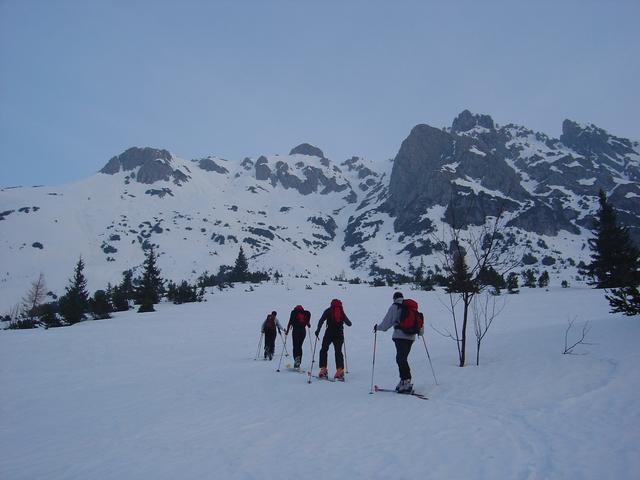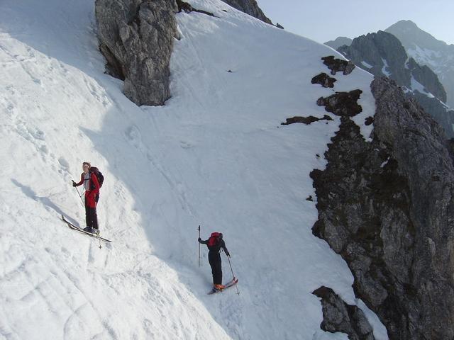Da die Wetterprognose für den heutigen Tag nicht so günstig war, wählten wir wieder von Dienten aus den Lauskopf als unser Tourenziel. Die Schneedecke hatte nur einen dünnen, beim Aufstieg tragfähigen Harschdeckel. Die Abfahrt gestaltete sich demenstprechend. Im oberen Teil Bruchharsch - im unteren Teil Sulzschnee.