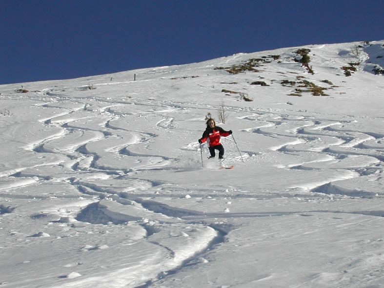 Am Samstag war ich mit Anja auf dem "Nogöstoa"(=Vordings vom Arappkopf). Im Sinne der Exposition und der Tageszeit (Nachmittag), war diese Tour eine sehr gute Idee. Bei der Abfahrt gab es oben noch sehr gute Verhältnisse, im schattigen Wald sogar noch Pulverschnee. Unterhalb von 1600 m war der Schnee aber auch im Wald schon stark durchfeuchtet.
