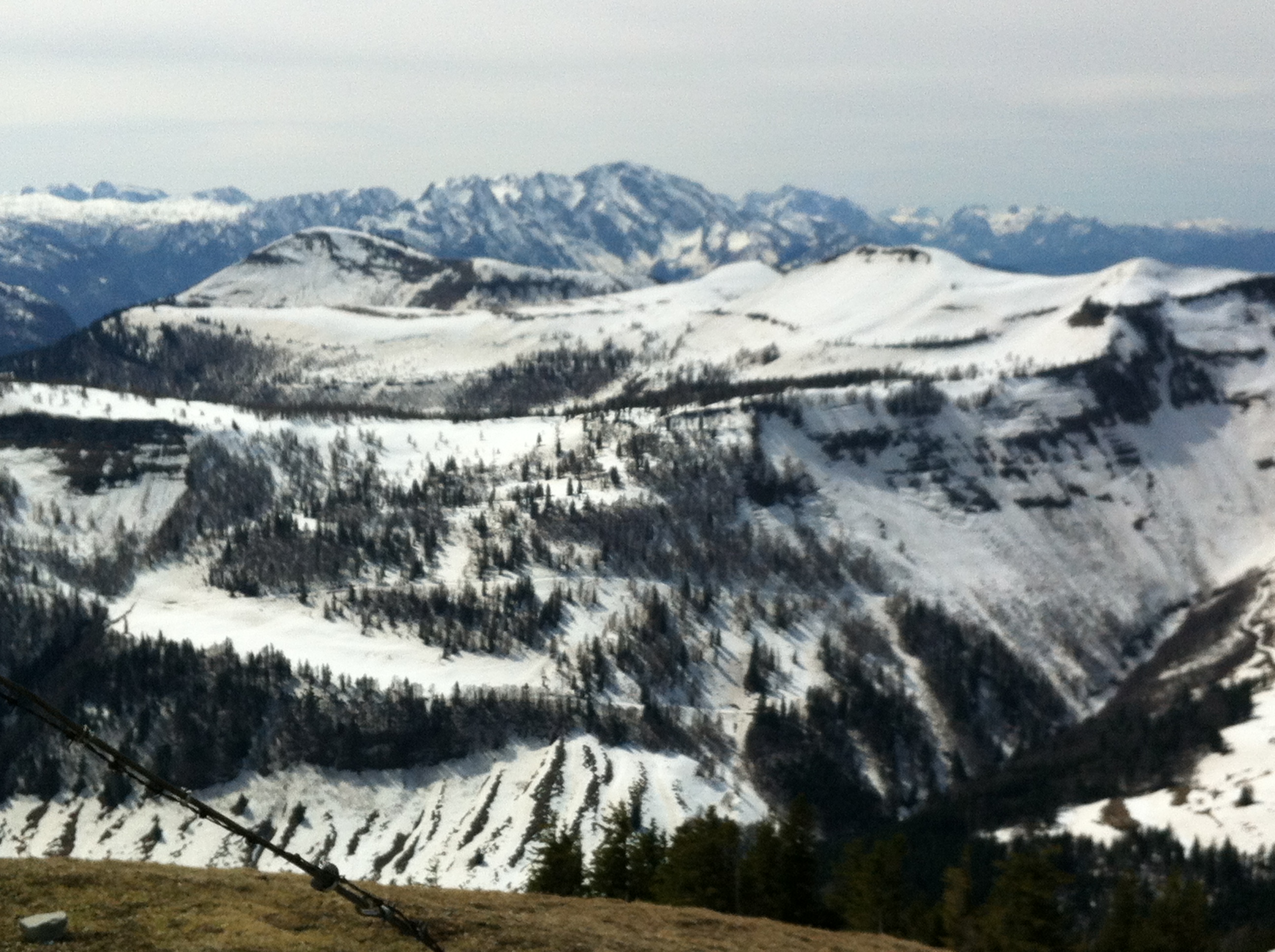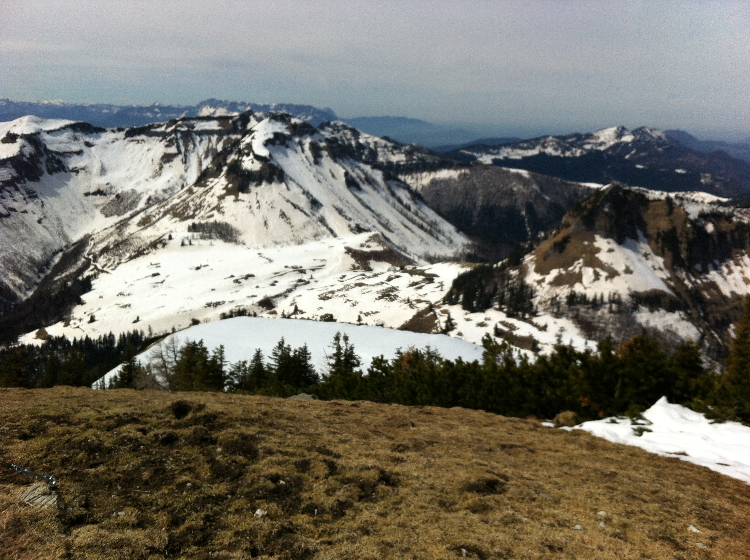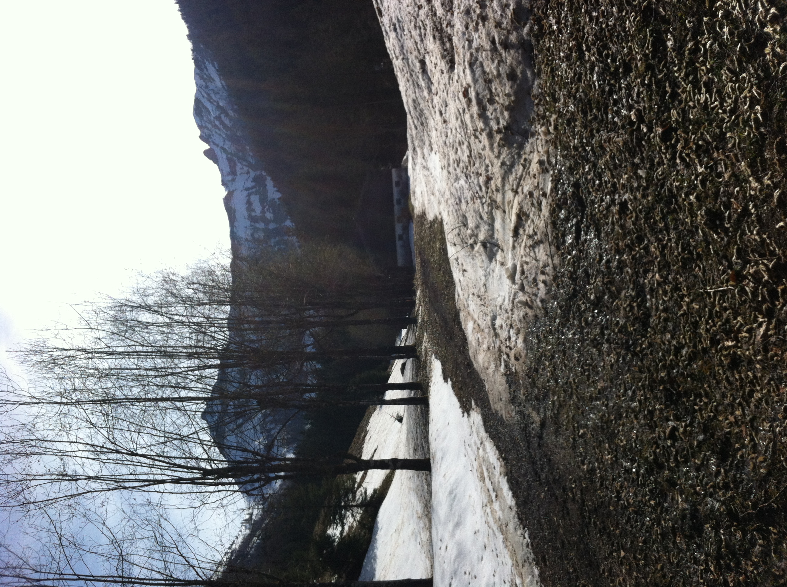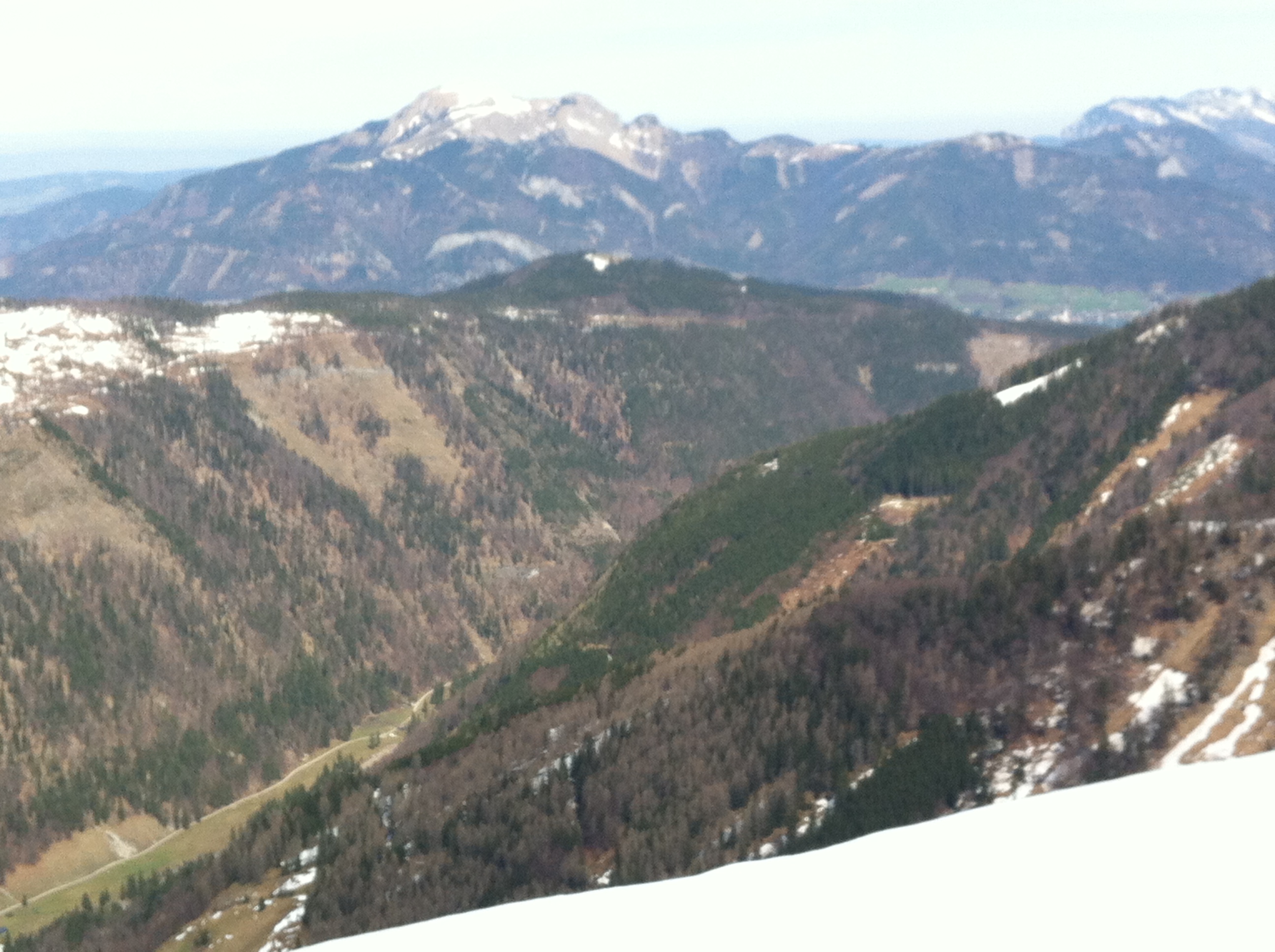 Der schöne Pulver ist zum Gatsch geworden, Einsinktiefe 2-3 cm, darunter der massive März-Sahara-Betonschnee. Anstandslos zu fahren aber faul. Die Forststrasse ist stellenweise aper, Tragezeit keine 10 Minuten.