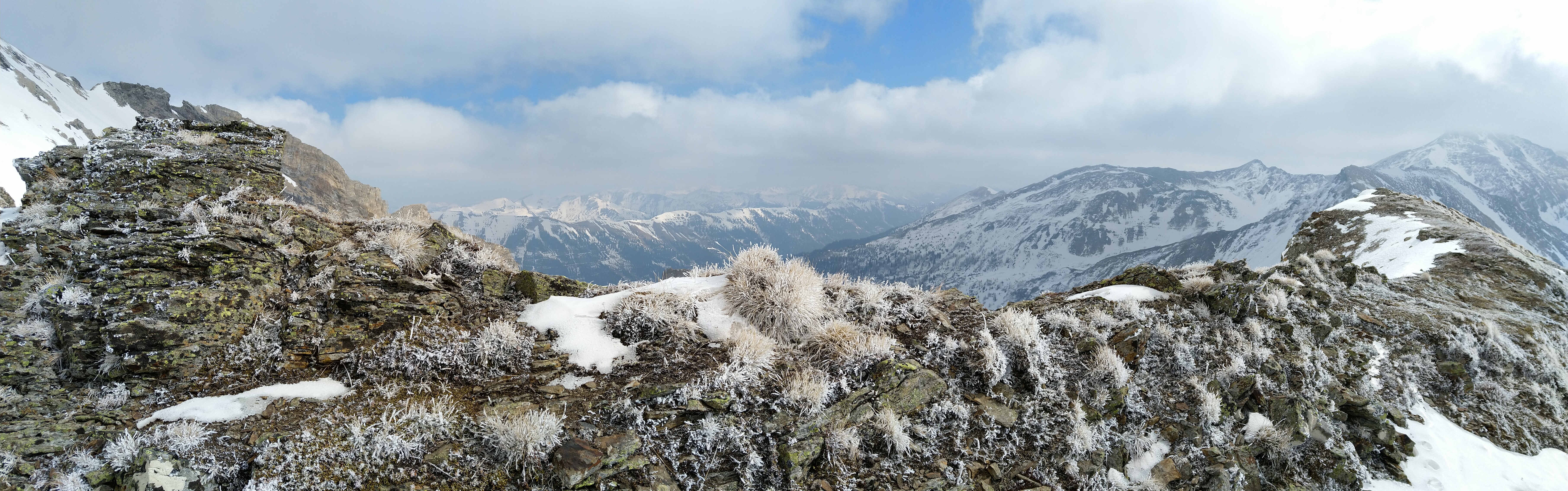 Ausgangspunkt beim Hinteren Härtleb in Pusterwald. Vom PP vorbei beim Blasbauer über die Pölsenhütte und Pölseckjoch zum Gipfel. Die Forststraße bis zum Sommerparkplatz weißt schon viele Unterbrechungen der Schneedecke auf, die aber zur Zeit noch mühelos über das angrenzende Feld umgangen werden können. Ab dem SommerPP bis knapp vor den Vorgipfel ist ein Aufstieg ohne abschnallen möglich. Die letzten 50HM zum Vorgipfel ist Skitragen angesagt. Auch den Gipfelhang habe ich mit den Skiern am Rucksack gemacht. Aufgrund der Steilheit war mir ein Skiaufstieg zu riskant. Schneedeckenbeschaffenheit: Die Schneedecke war bis zur Pölsenhütte hart und tw. mit einem leichten Harschdeckel versehen. Ab der Pölsenhütte griffig und tw mit Triebschneelinsen. Der Triebschnee war heute leicht auszumachen. Durch den Saharasand am Anfang der Woche war die Schneedecke in höheren Lagen leicht rötlich gefärbt. Der Triebschnee war hingegen blütenweiß. Für den Aufstieg zum Pölseckjoch und den Rücken bis zum Vorgipfel sind Harscheisen zwar von Vorteil aber nicht unbedingt nötig. Wetter: Der Gipfel war am Vormittag noch in den Wolken, die sich dann aber kurz vor Mittag weitestgehend auflösten. Am Grat hat der Wind (aus SW Richtung) bereits sturmartige Stärken erreicht.