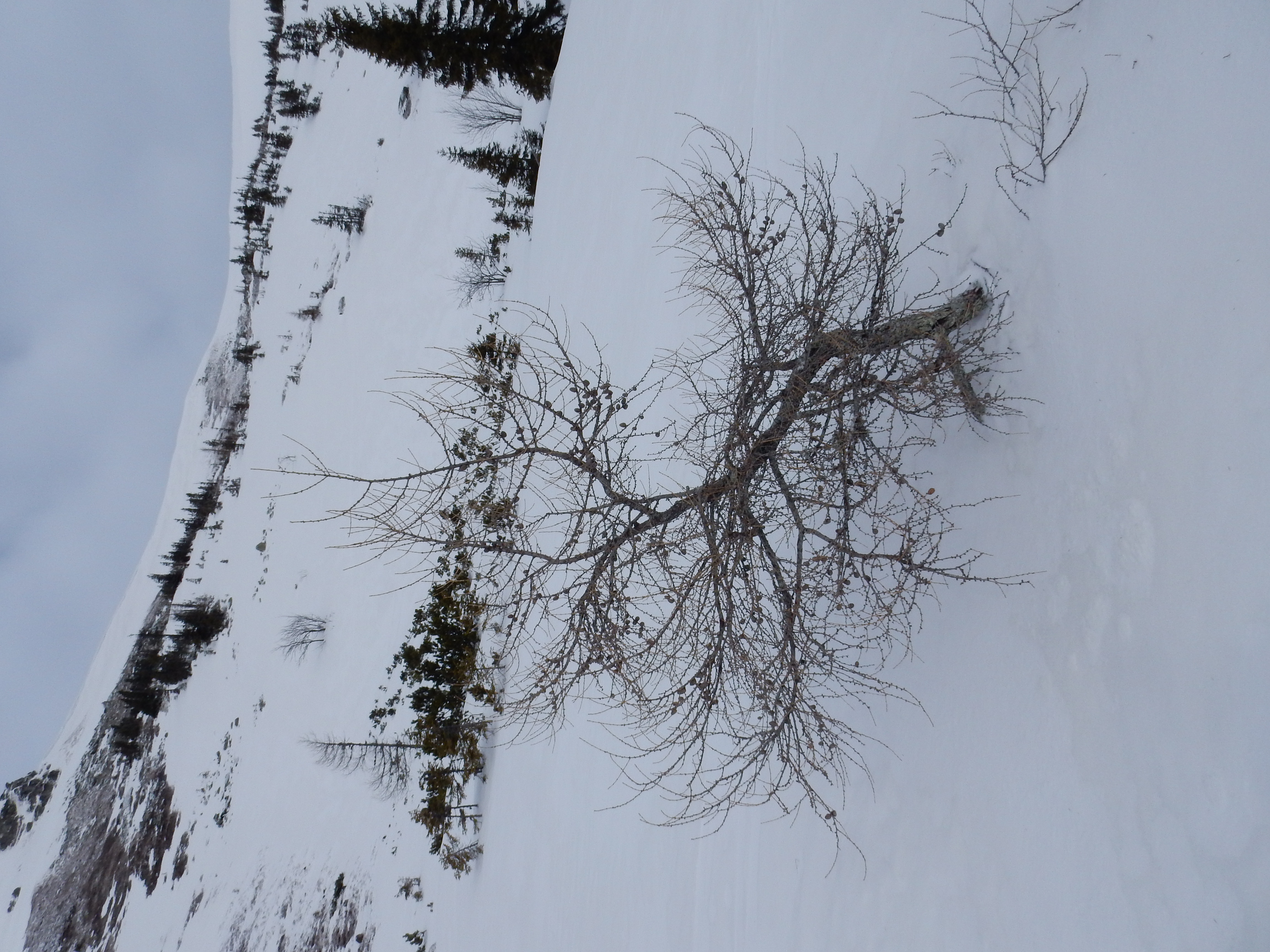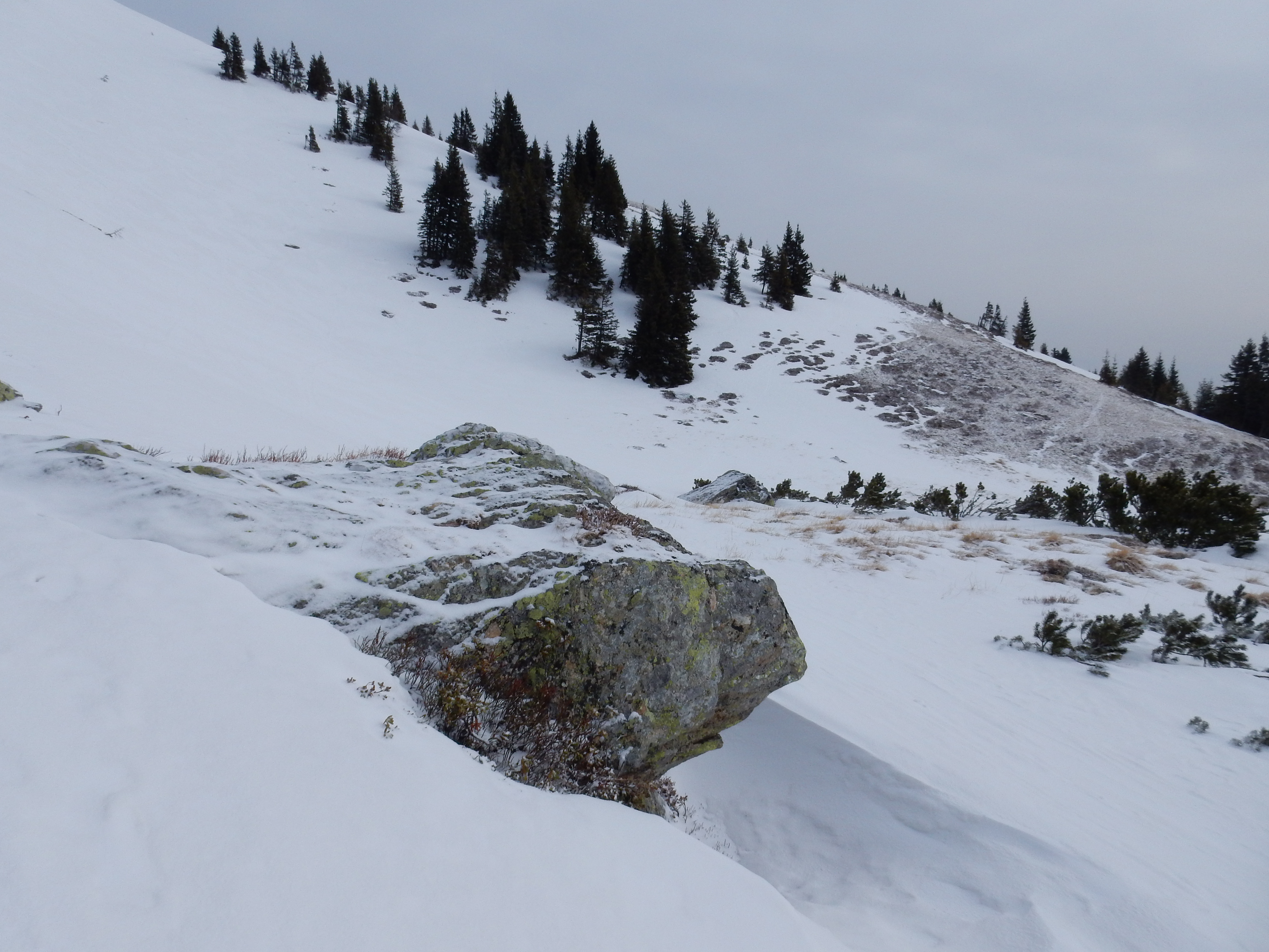 In der Nacht hat es etwa 5 mm geschneit. Ab 1600 m kleine Einwehungen, aber an keiner Stelle tiefer als 10 cm. Dieser frische Schnee ist nicht mit dem Untergrund abgebunden.