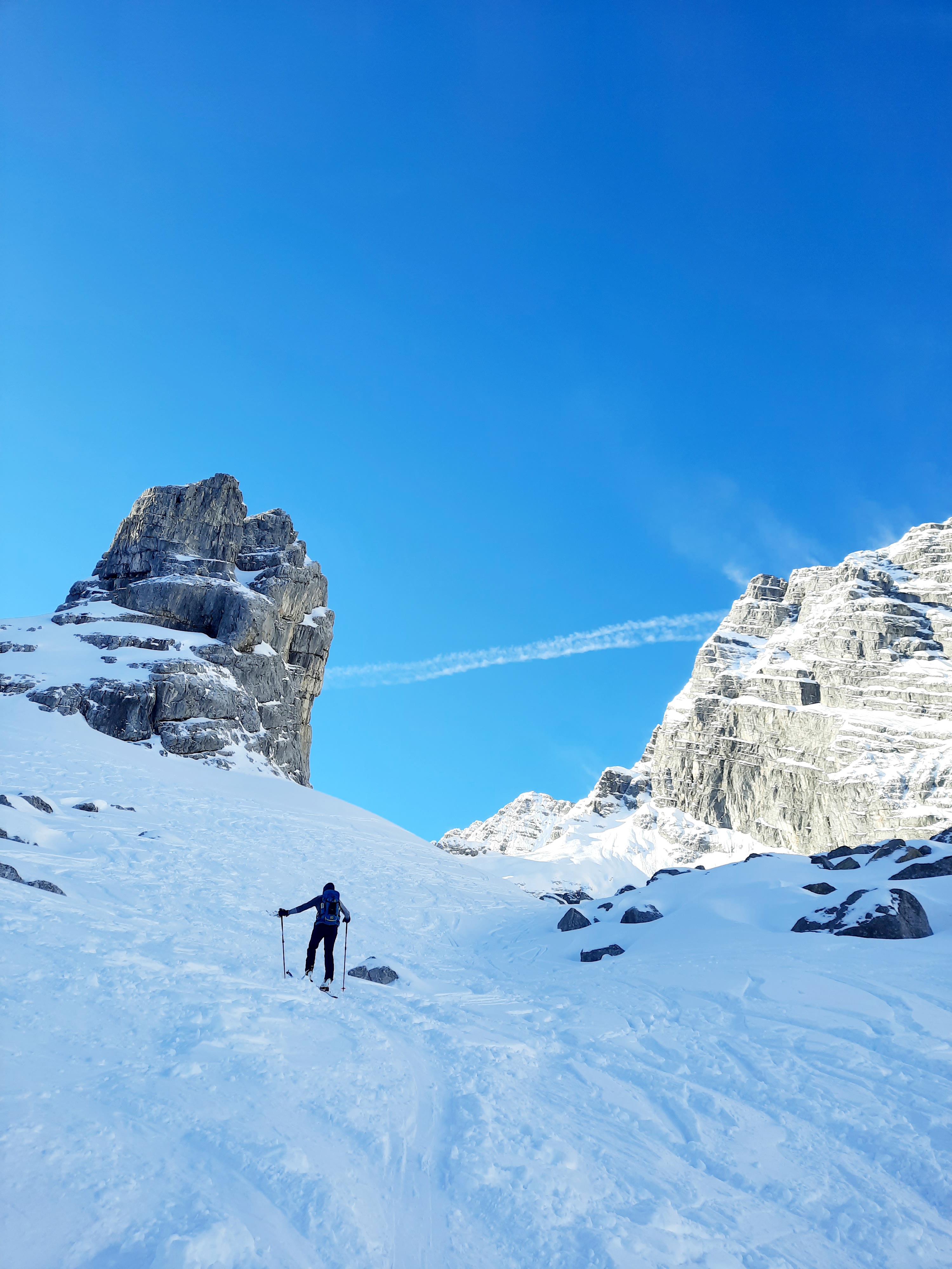 Eine wirklich wunderschöne, alpine Tour durch das Watzmannkar und weiter zum 3. Watzmannkind. Am Forstweg bis zur Schapbachalm und dem Kar liegt leider nur wenig Schnee, jedoch genug um mit den Ski hinauf und hinunter zu kommen. Im Kar bis zum Gipfel fanden wir herrlichen Pulverschnee, bei sicheren Verhältnissen vor! Super Tour ;-)