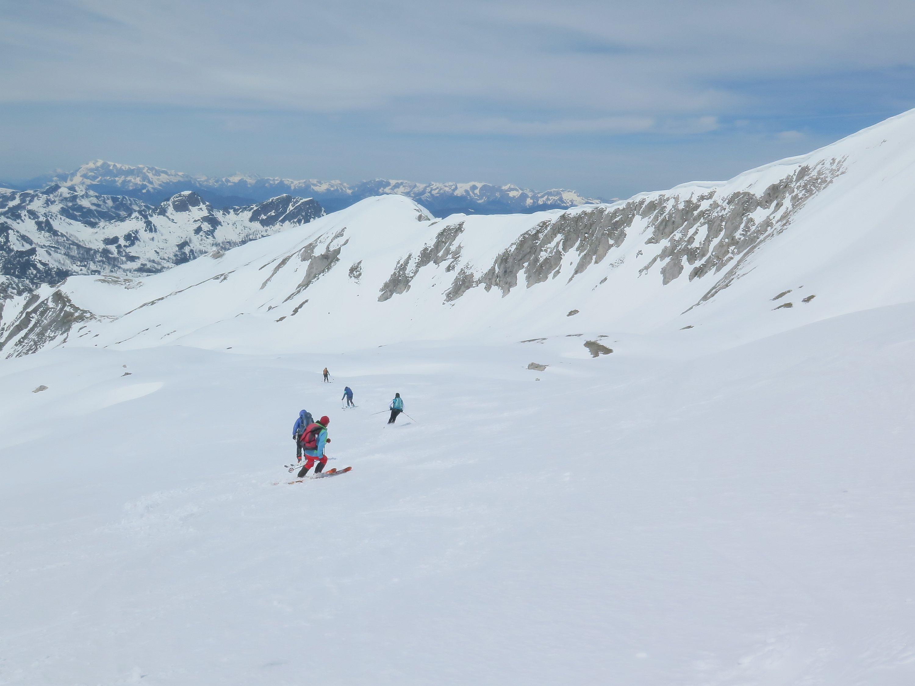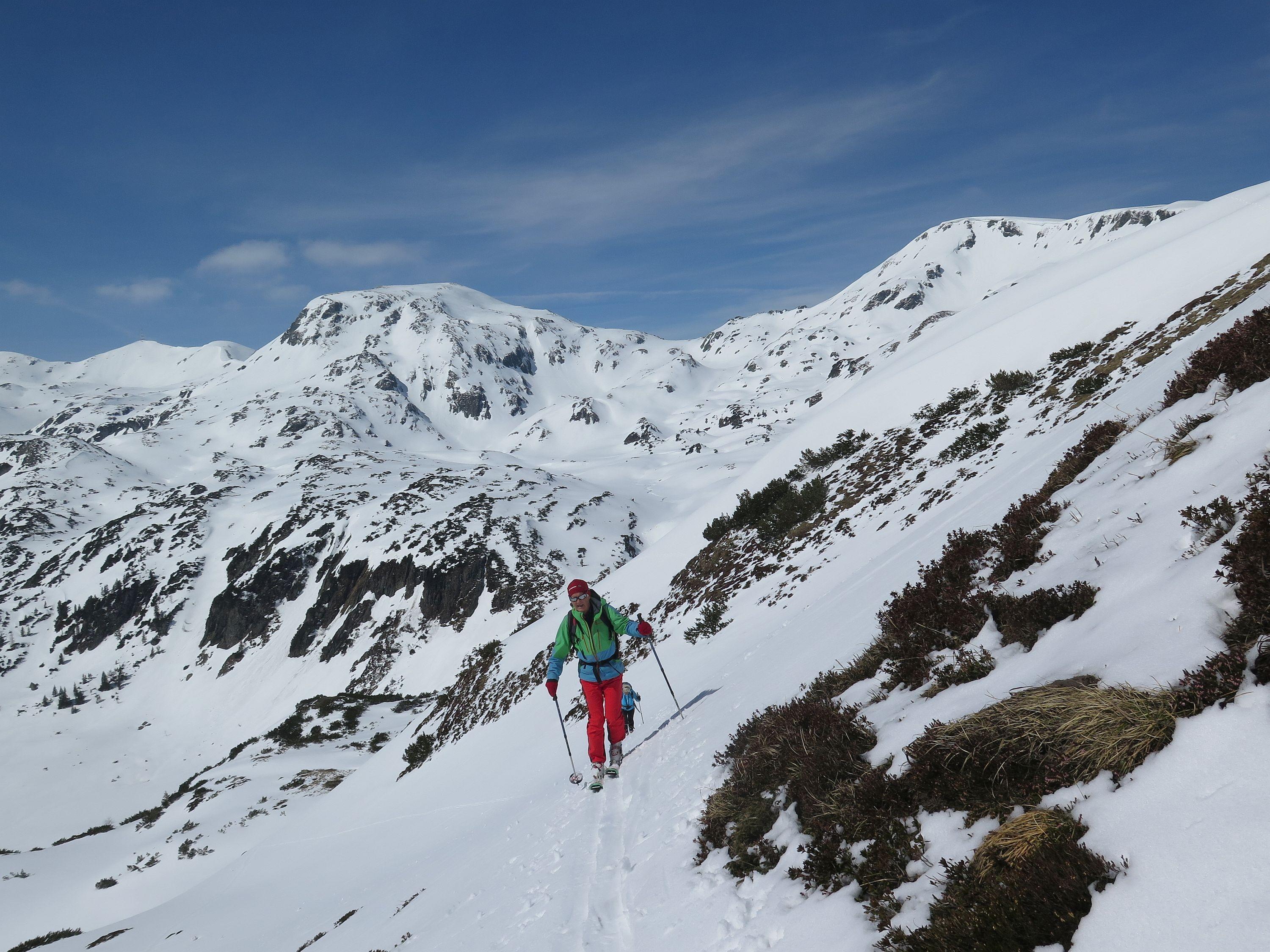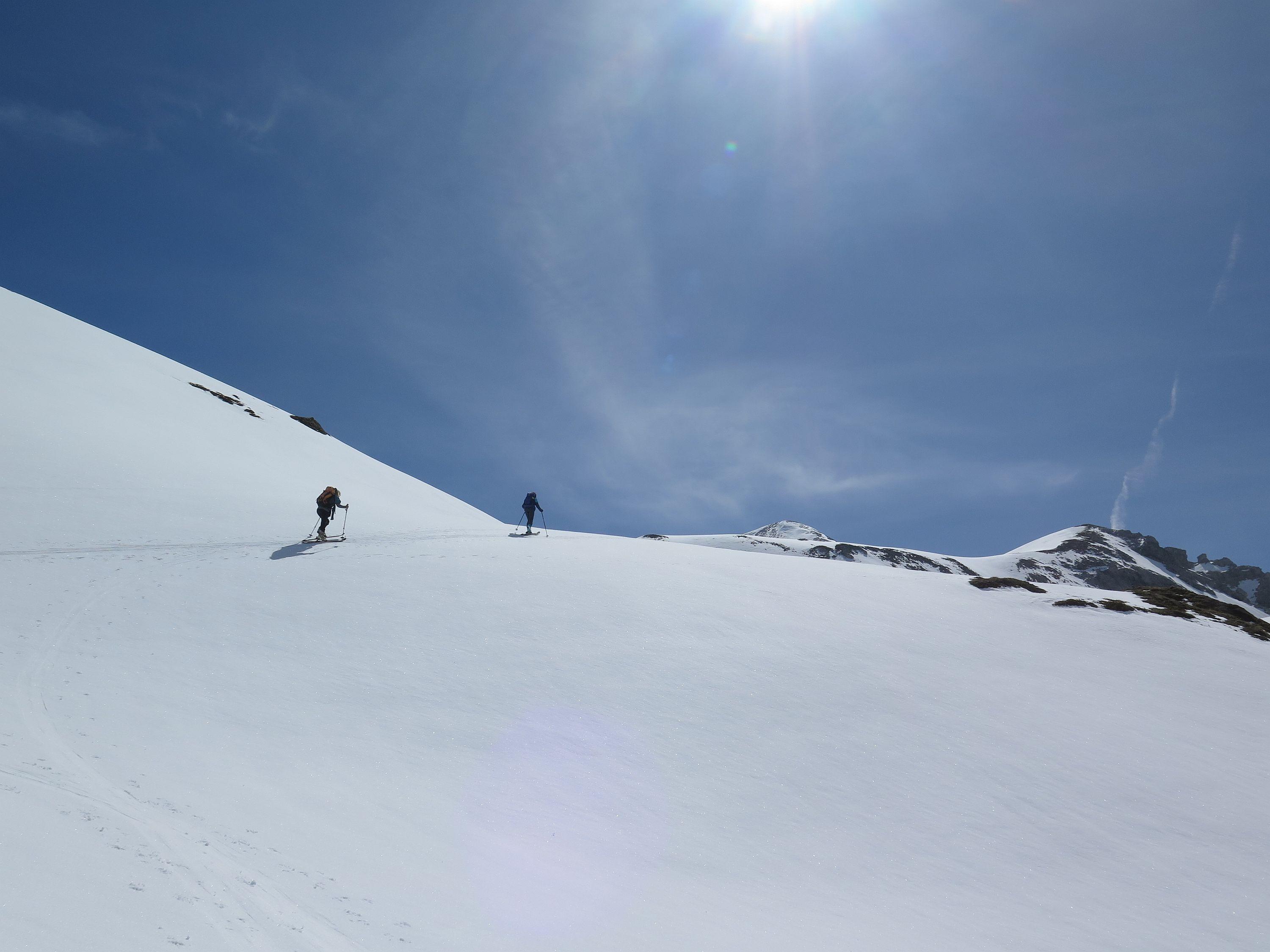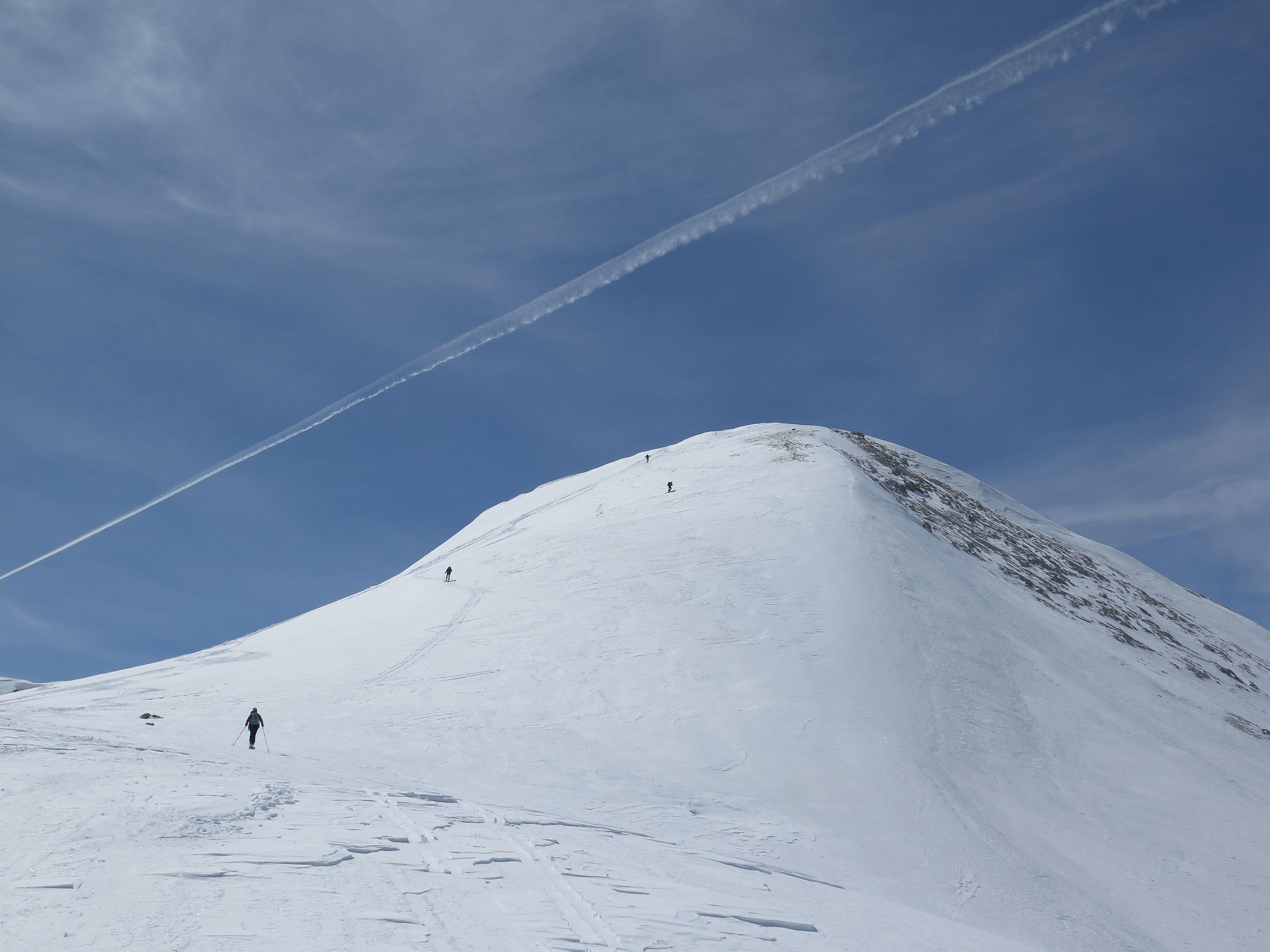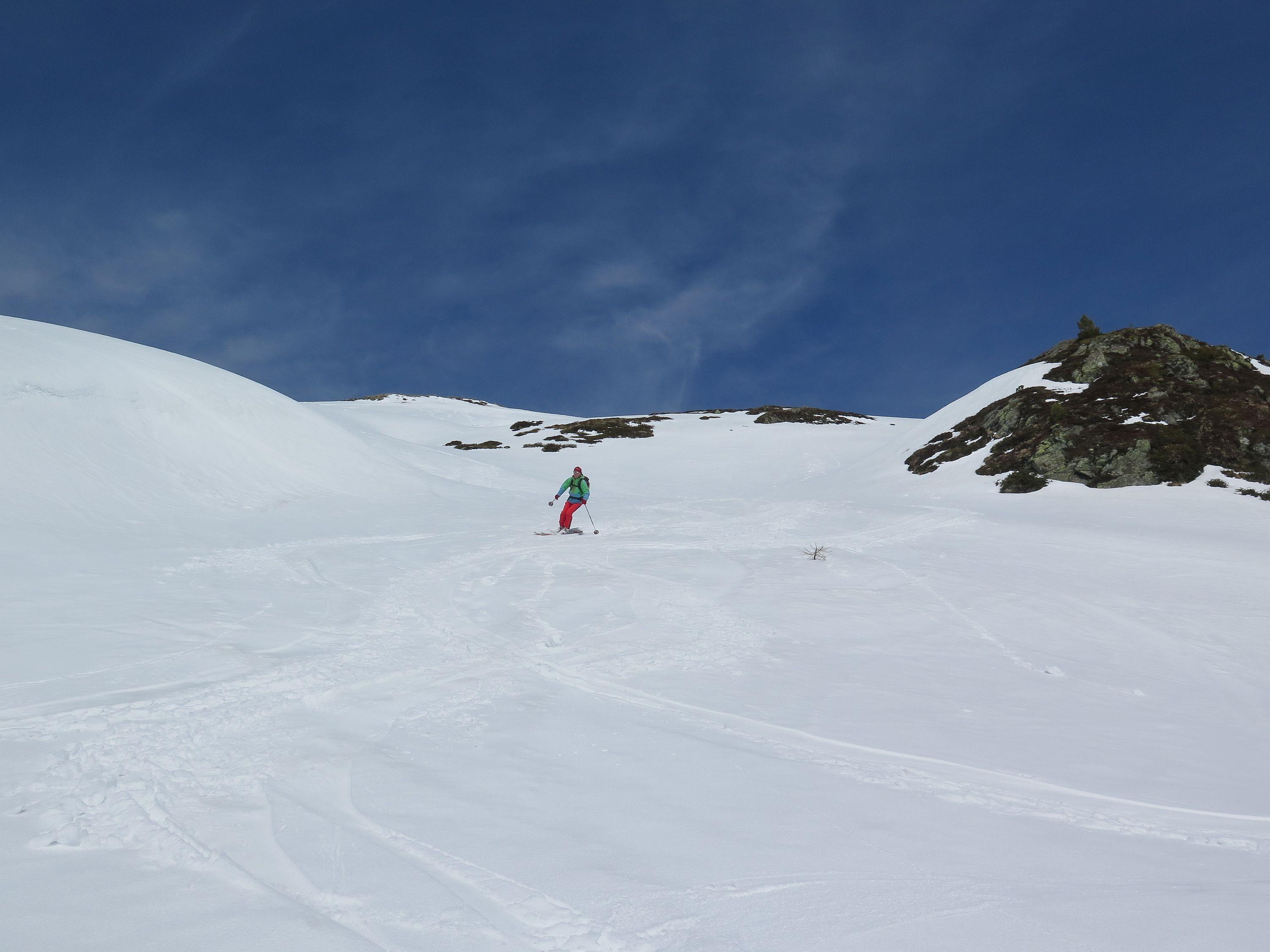 Bei herrlichem Wetter, stabilen Schneeverhältnissen auf die Lungauer Kalkspitze. Gipfelbereich windig. Schnee: im Aufstieg griffig, Abfahrt : Pulver - Firn.