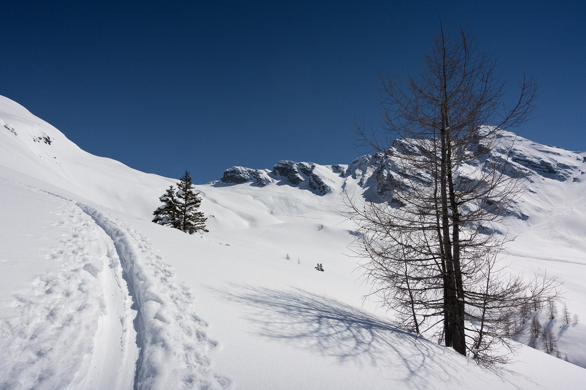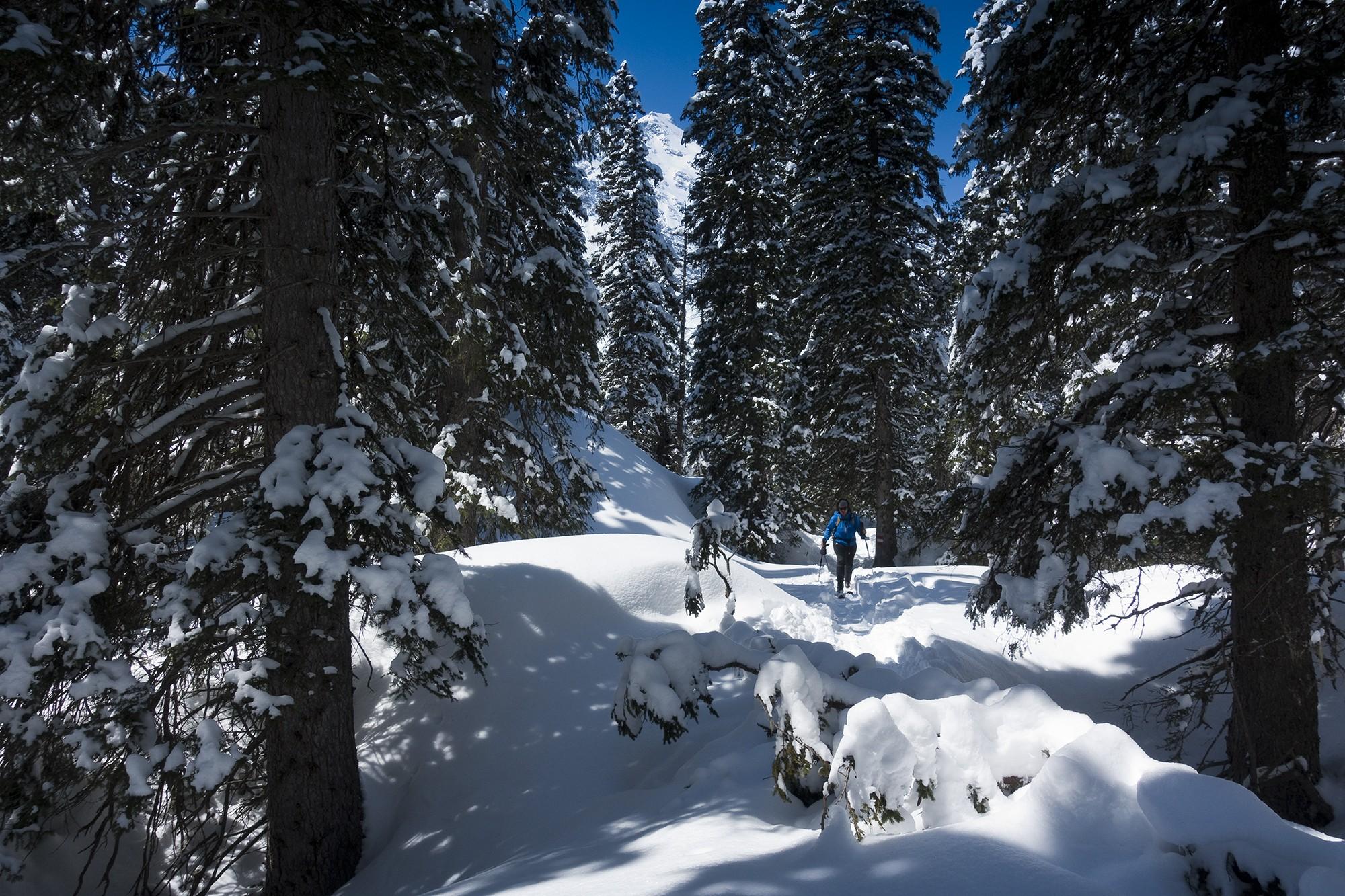Auch im Urwald ist satt Schnee, und selbst nachmittags konnten wir an den sonnenabgewandten Stellen Pulverschnee genießen.