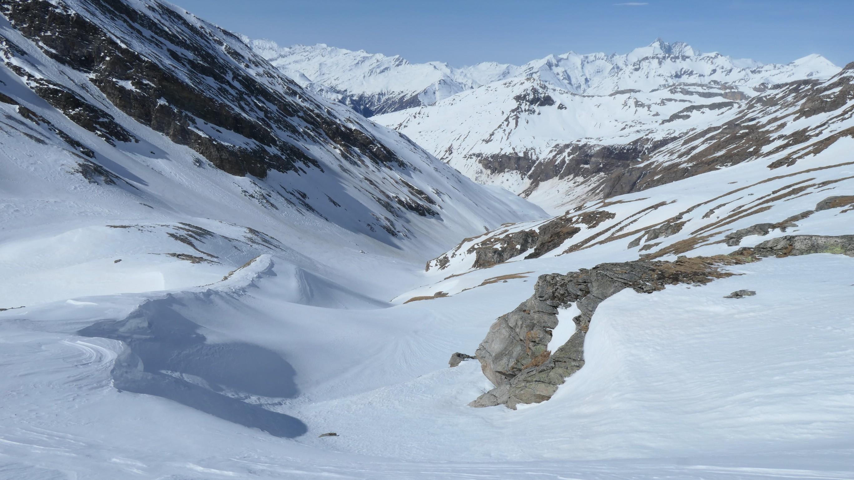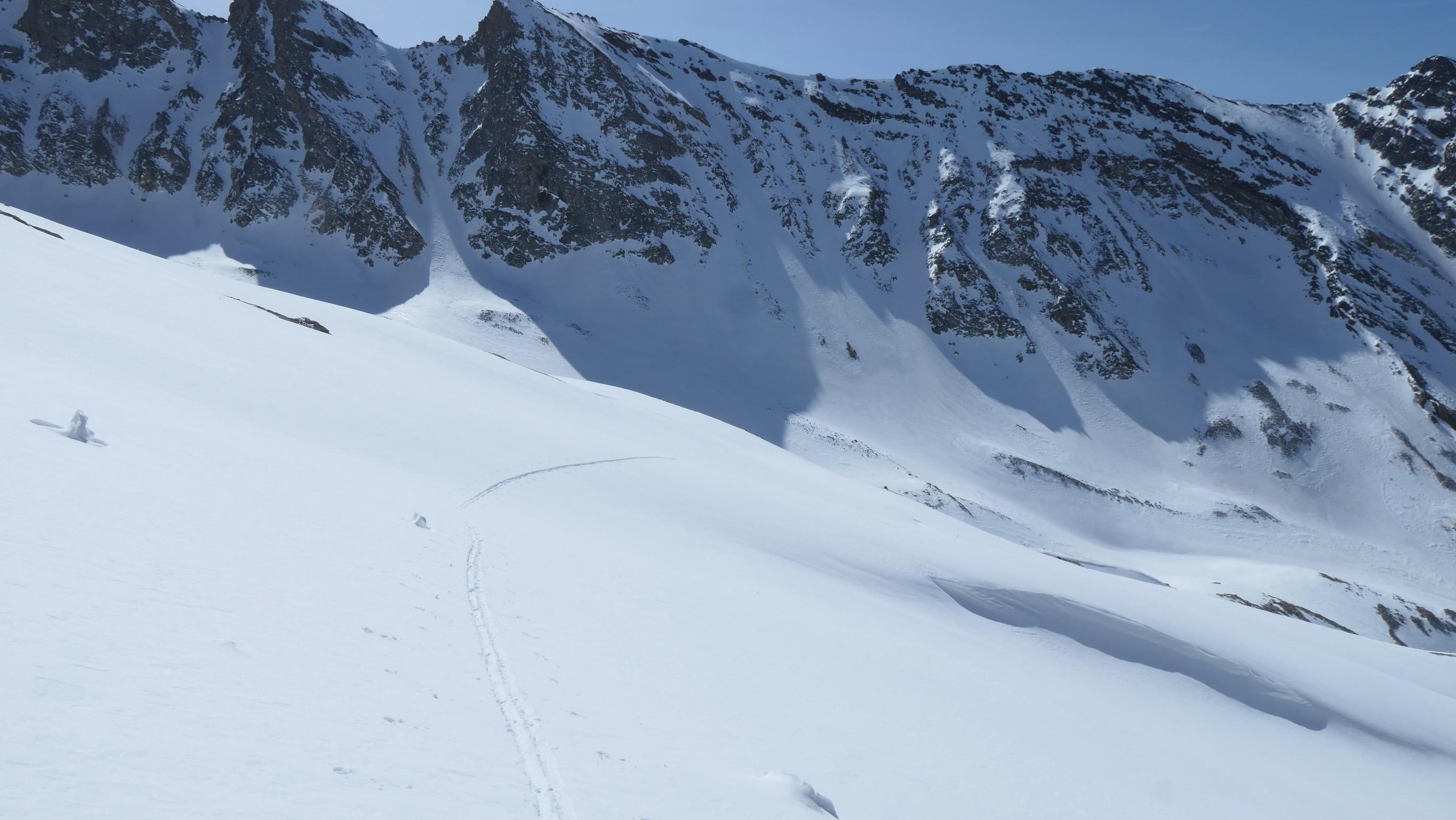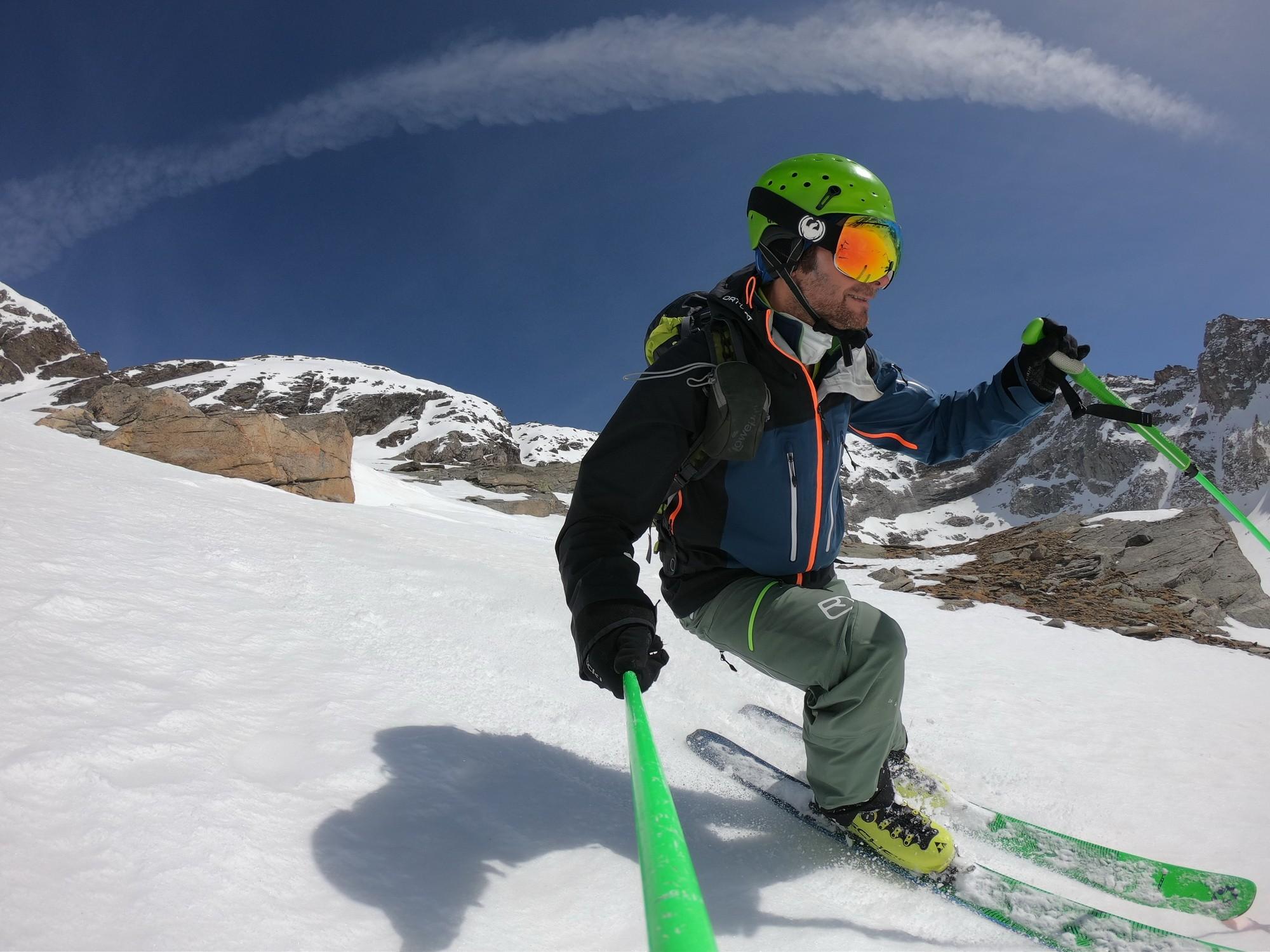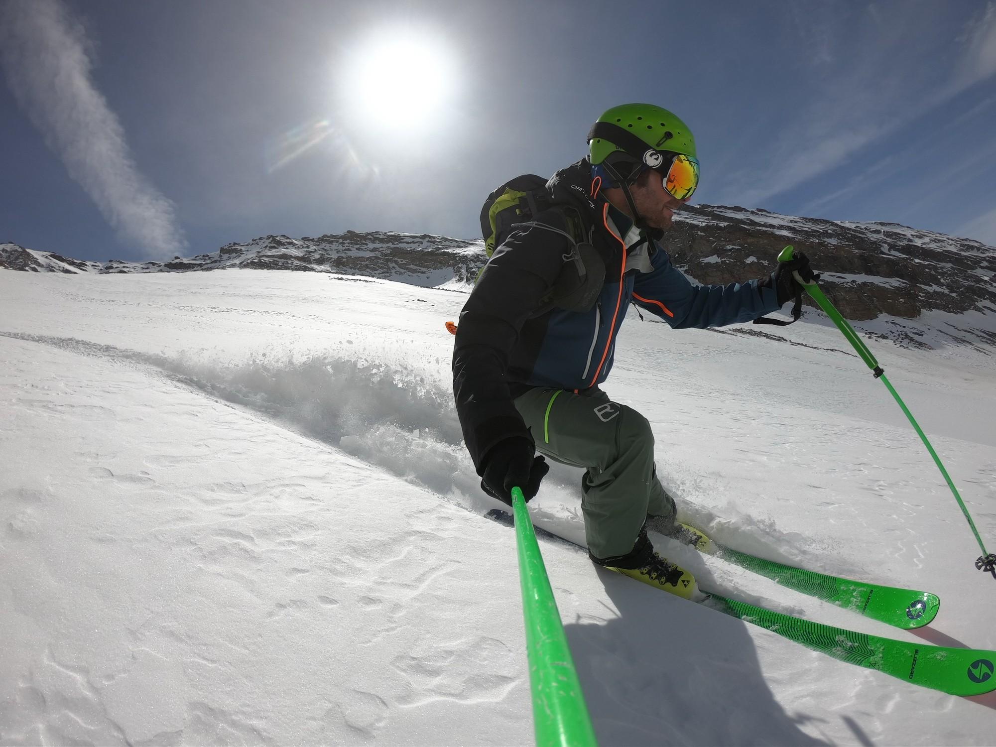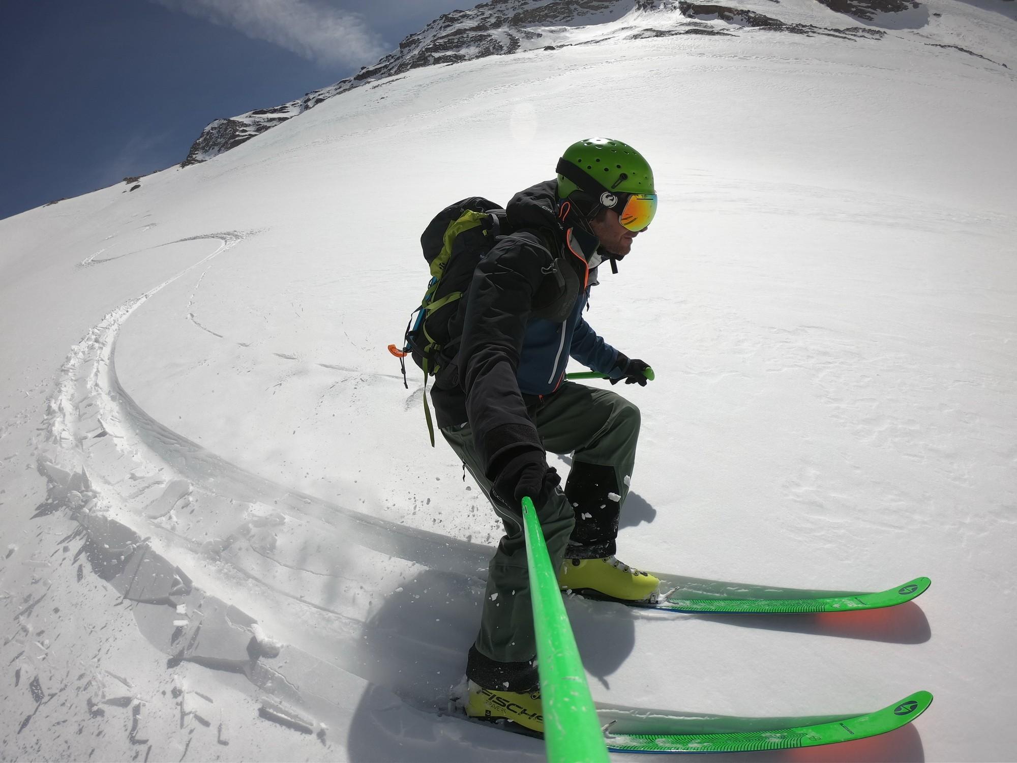 Die Abfahrt war dann wirklich genial, aber Bilder sagen da eh mehr als 1000 Worte. Lawinentechnisch konnte man ausser einigen alte Nassschneelawinen nicht viel erkennen. Natürlich war auch die Sonneneinstrahlung ein Thema und aus sicher Entfernung konnte ich dann nach der Abfahrt noch ein paar Entladungen aus Felsdurchsetztem Gelände beobachten.