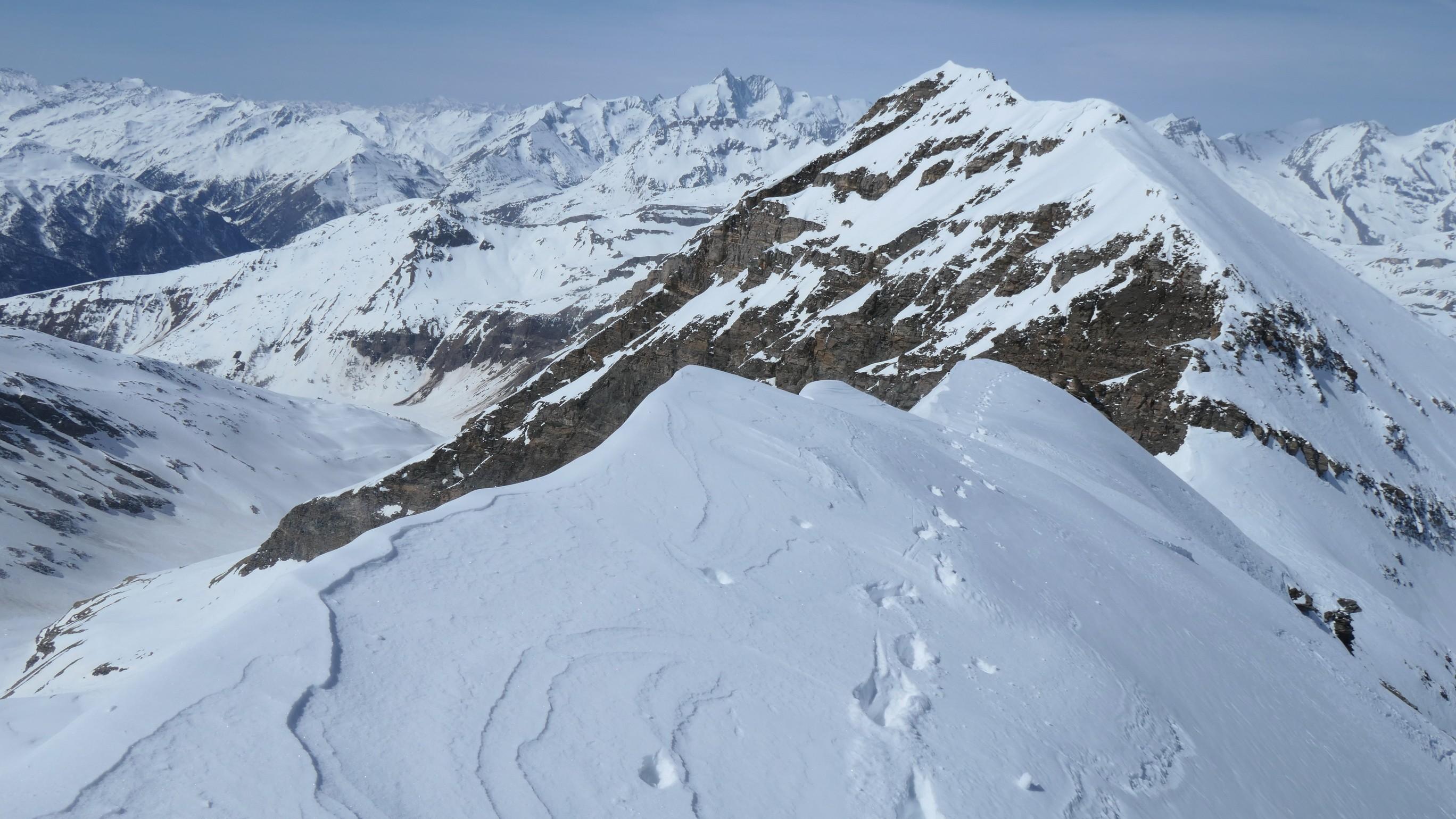 Heute war mein Ziel eigentlich der Krumlkeeskopf vom Fleisstal aus. Allerdings schon ab einer Höhe von 2300m fand ich in allen Richtungen kleinere Triebschneepakete vor. Das Gelände ausnützend habe ich also so flach wie möglich bis etwas unterhalb vom Oto- Umlauft Biwak gespurt. Das letzte etwas steilere Stück bis zum Biwak habe ich dann auf hartem Untergrund (Gleitfläche eines älteren Schneebrettes) zurück gelegt. Oberhalb von der Scharte waren überall mächtige Wächten und so habe ich mich umentschieden es einmal in Richtung Arlthöhe zu versuchen. Hier bin ich dann vorwiegend über den Grat aufgestiegen, habe mich aber dann kurz vorm Gipfel dazu entschieden abzubrechen. Die Wächten waren für mich schwer einzuschätzen und auf der anderen auch relativ steilen Gratseite war einfach zu viel eingewehter Schnee um aus meiner Sicht sicher zum Gipfel zu kommen.