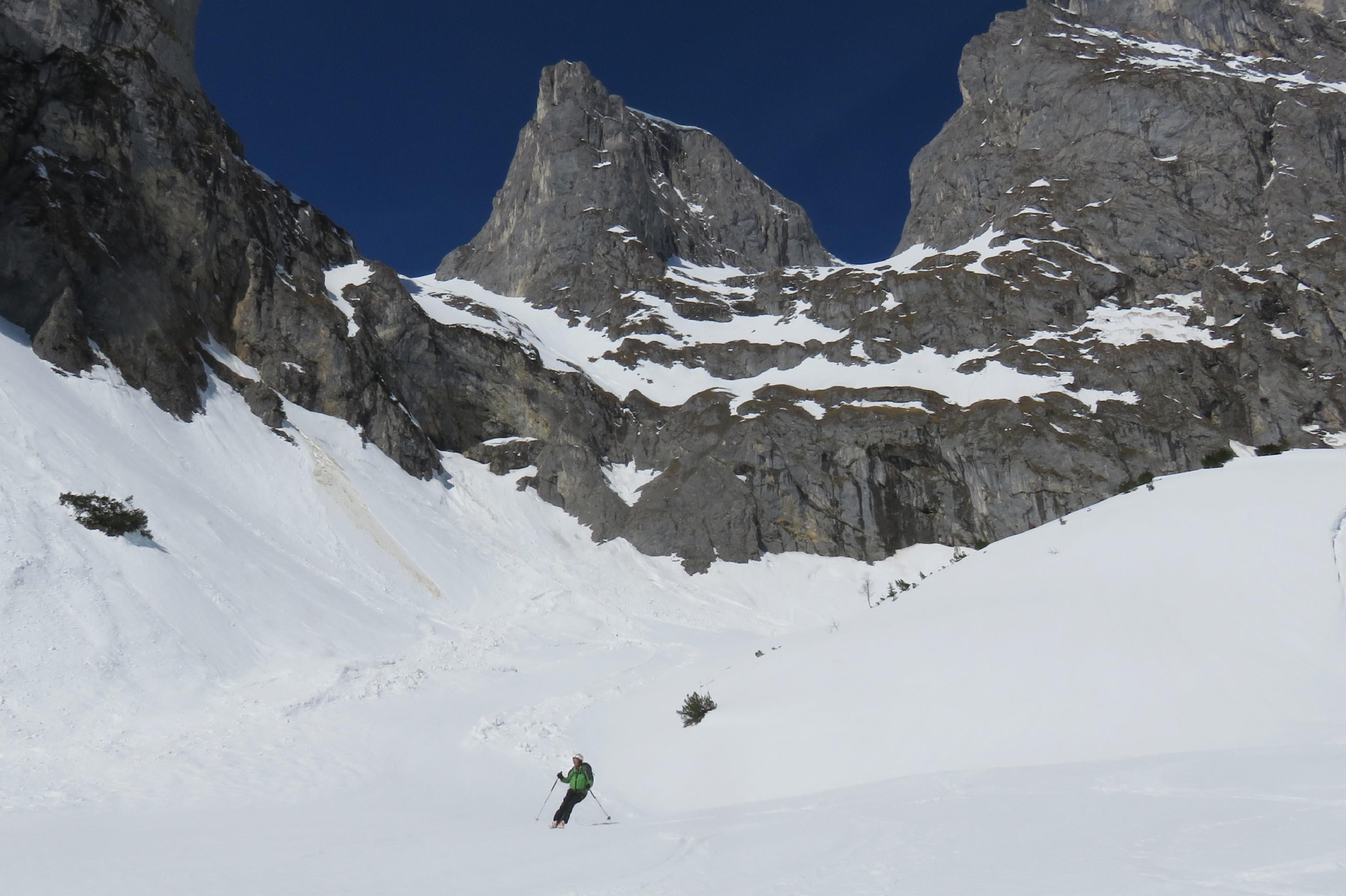 Die Südseite des Tennengebirges wies wahrscheinlich noch nie so ideale Schneeverhältnisse wir zur Zeit auf. Dank dem Eintrag von gestern von Albrecht Seer (Birkar) wagten wir die lange Autoanfahrt und fanden heute im Gamsmutterkar Verhältnisse, wie sie nicht besser hätten sein könnten. Perfekter Firn im Anstieg und in der Abfahrt, vollkommen glatt, 2 bis 3 ca. Schmierfirn. Eine gewaltige Tour, obwohl nur 800 Hm, das wird den meisten viel zu wenig sein. Weitere Infos wieder >>hier<< ;-)