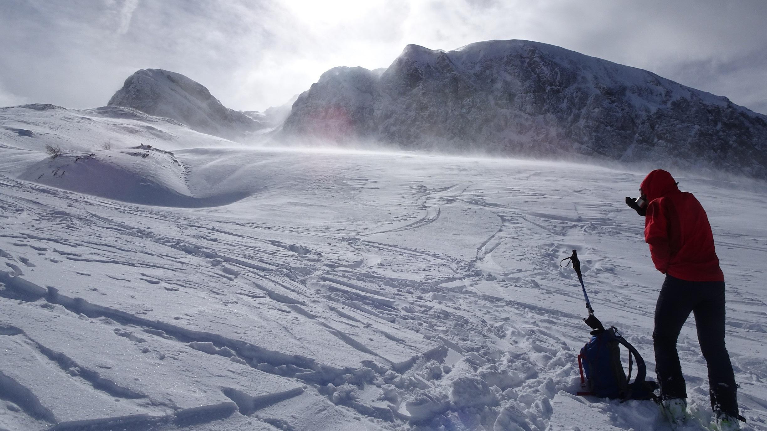Das Wetter sah am Anfang eigentlich ganz vielversprechend aus, oberhalb der Umgäng war man aber schlagartig bei Schneesturm und äußerst schlechter Sicht unterwegs. 100m unterhalb des Gipfels haben wir die Tour abgebrochen. Kaum wieder unten im Auto, scheinte auf dem Gipfel die Sonne und Schneefahnen waren auch keine mehr zu sehen. Eine Stunde später aufstehen wär heute wohl die richtige Strategie gewesen.