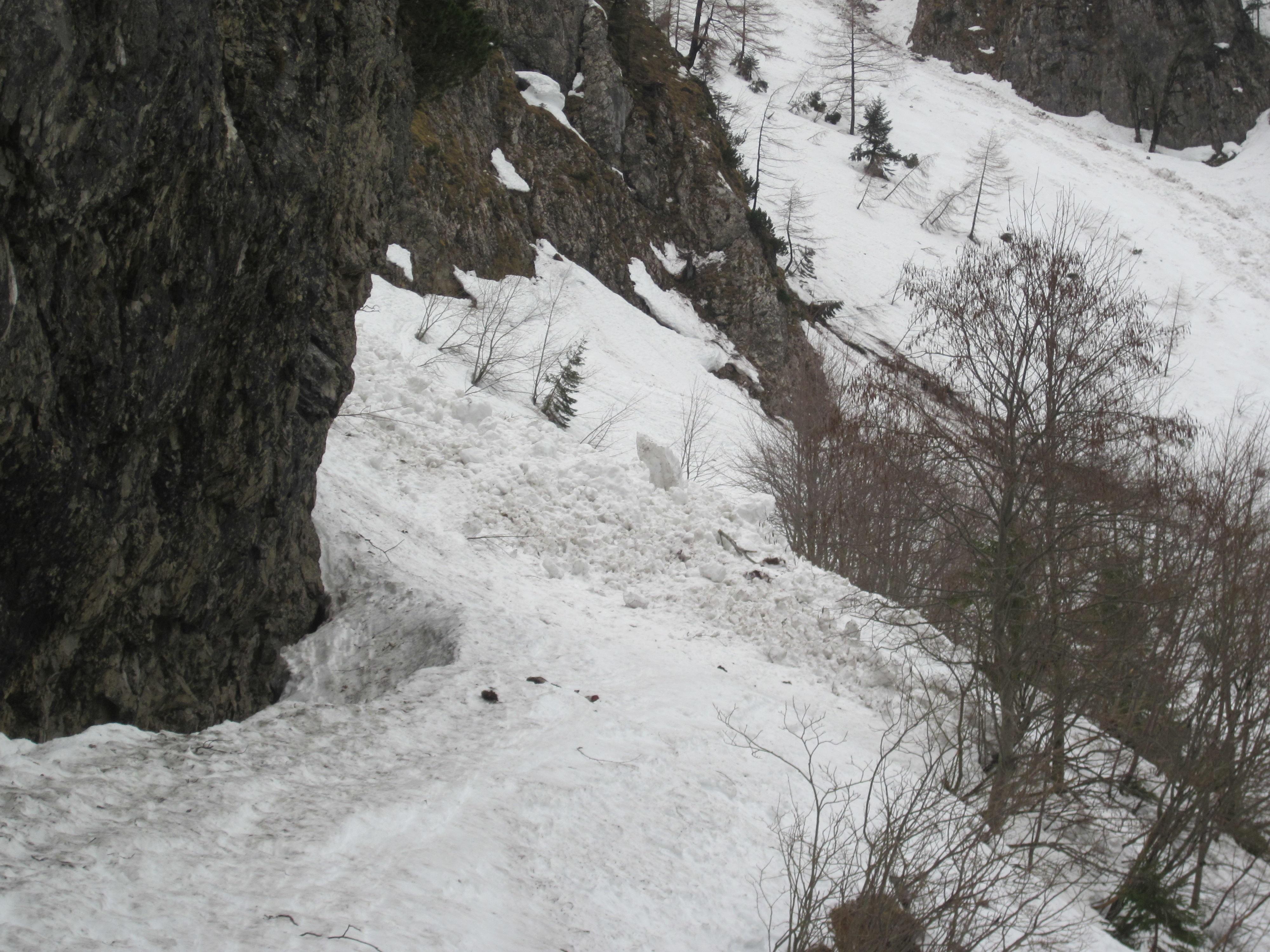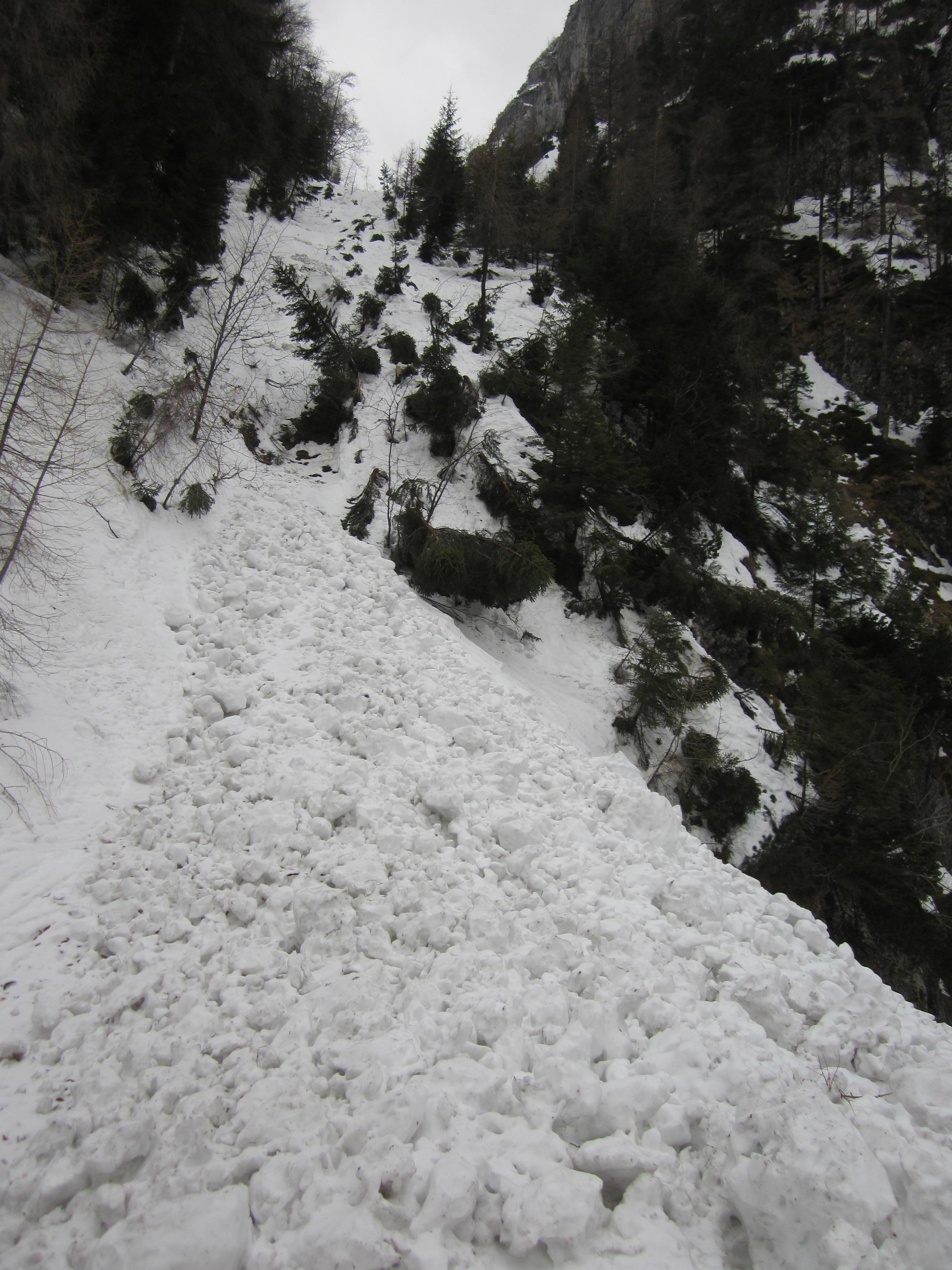 Im Bereich der "Roßgassenkehre" liegen mehrere, große Lawinenkegel, teilweise aus ungewöhnlichen Rinnen. Die Roßgasse selbst ist im unteren Teil auf ziemlich die gesamte Breite mit Knollen übersäht.