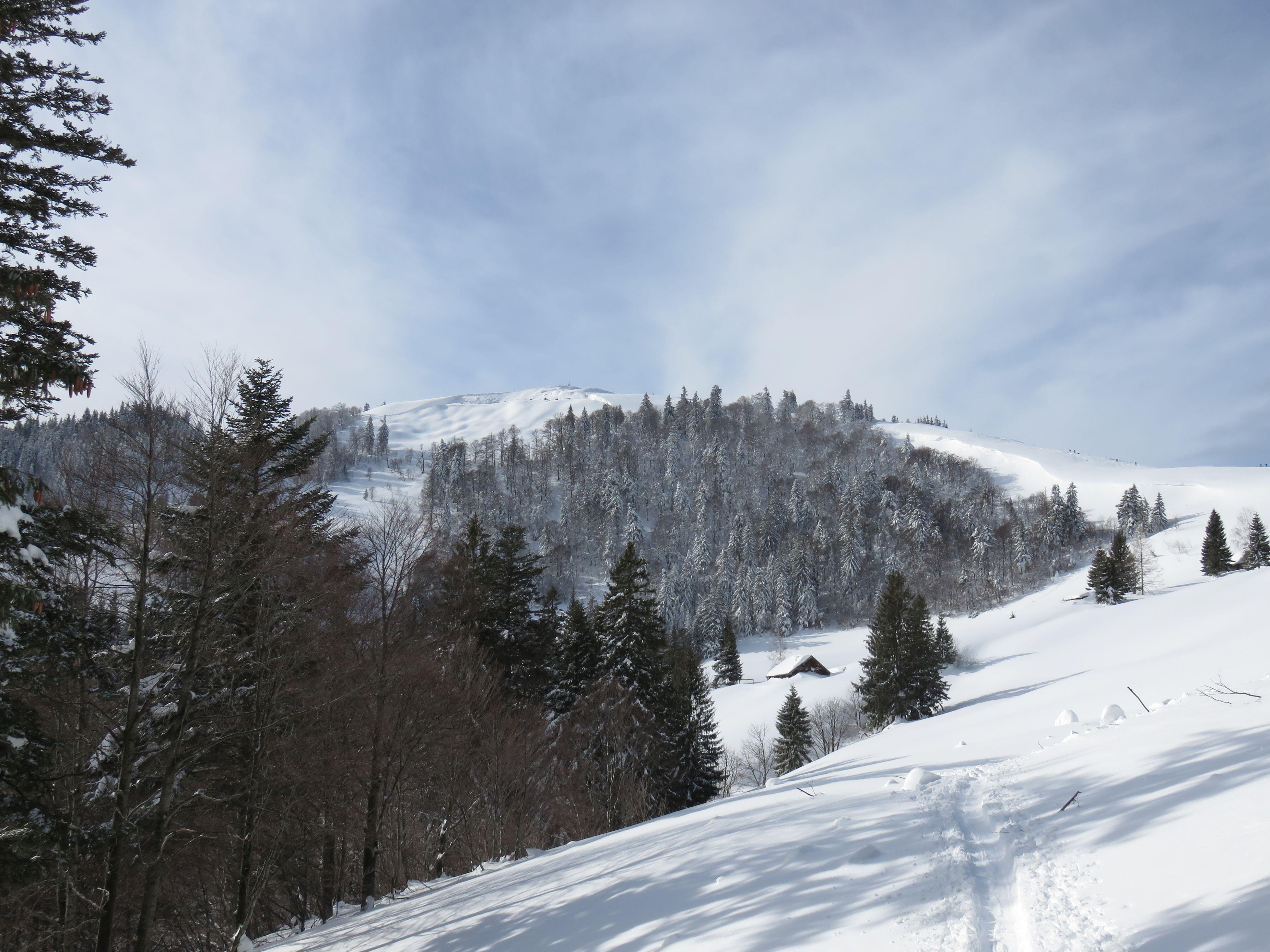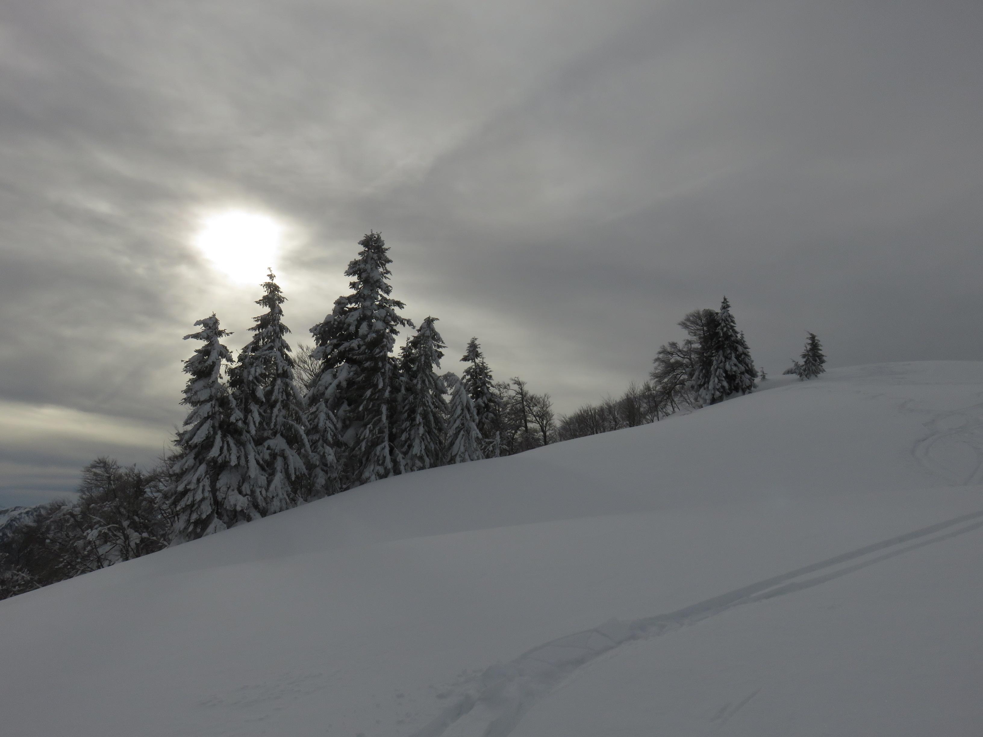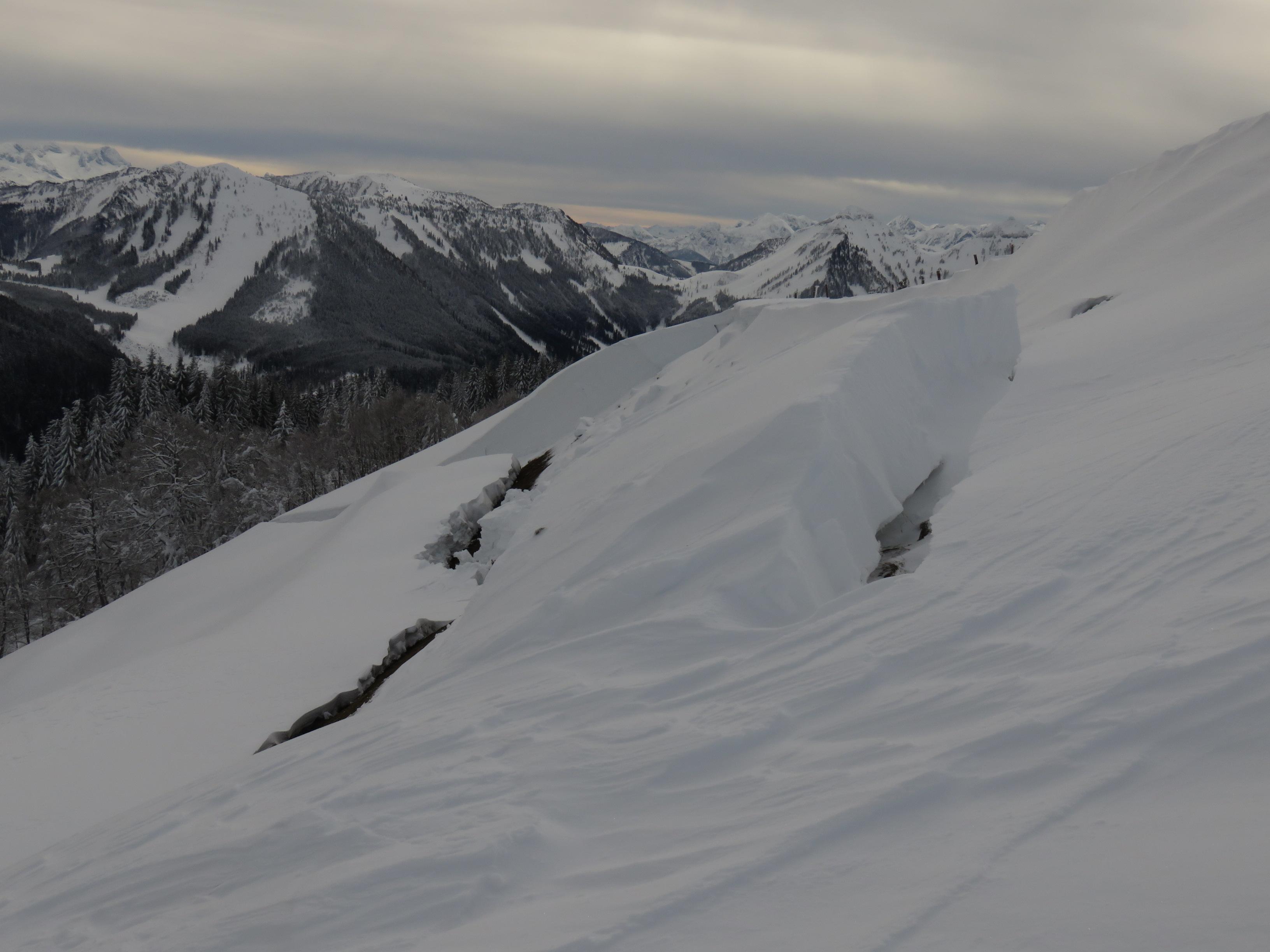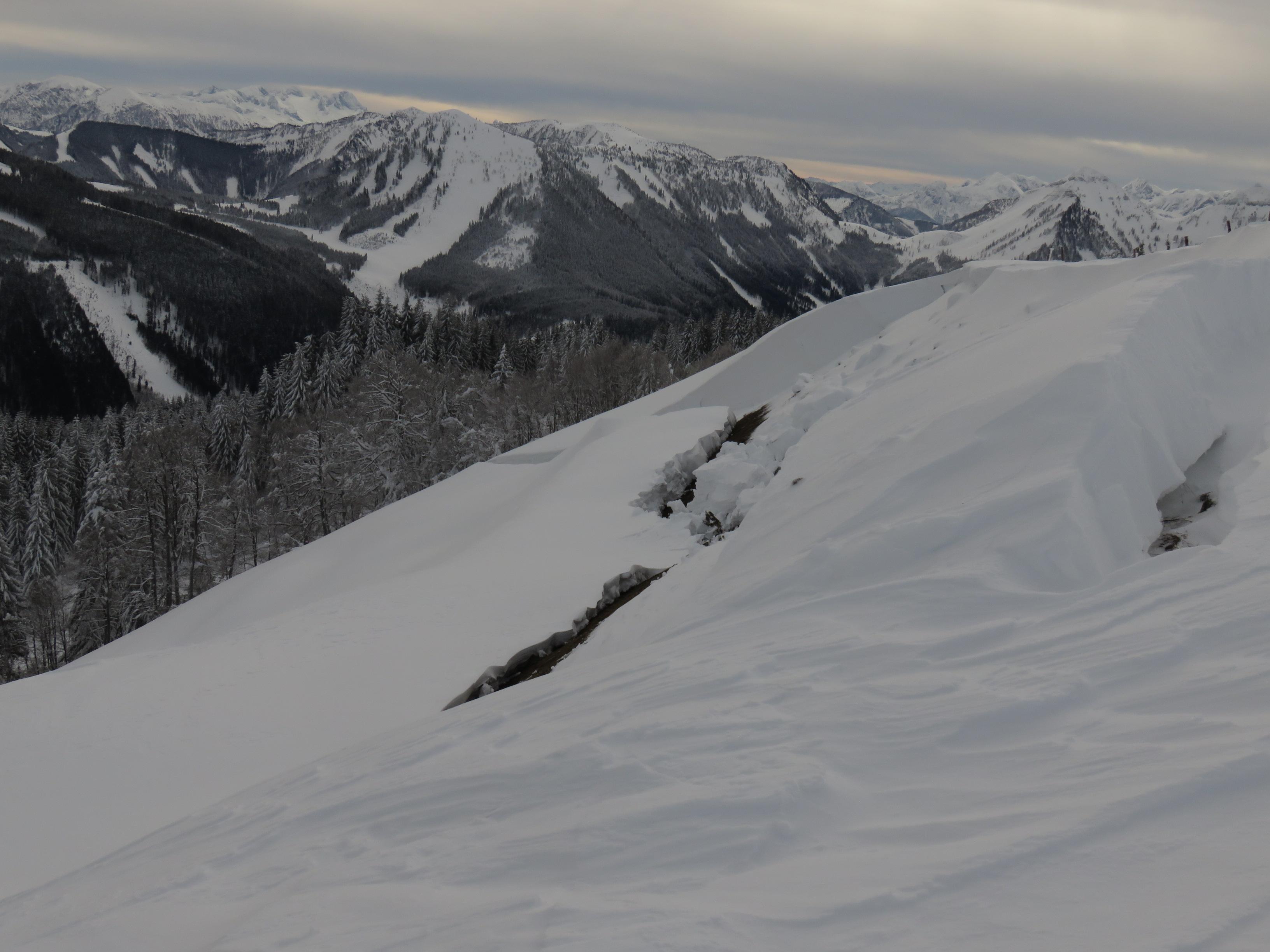 Schnee: bis ca.1100m dünne Regeneisschicht auf dem Neuschnee vom Samstag. Ab Schafberg Almen teils Windgepresst.