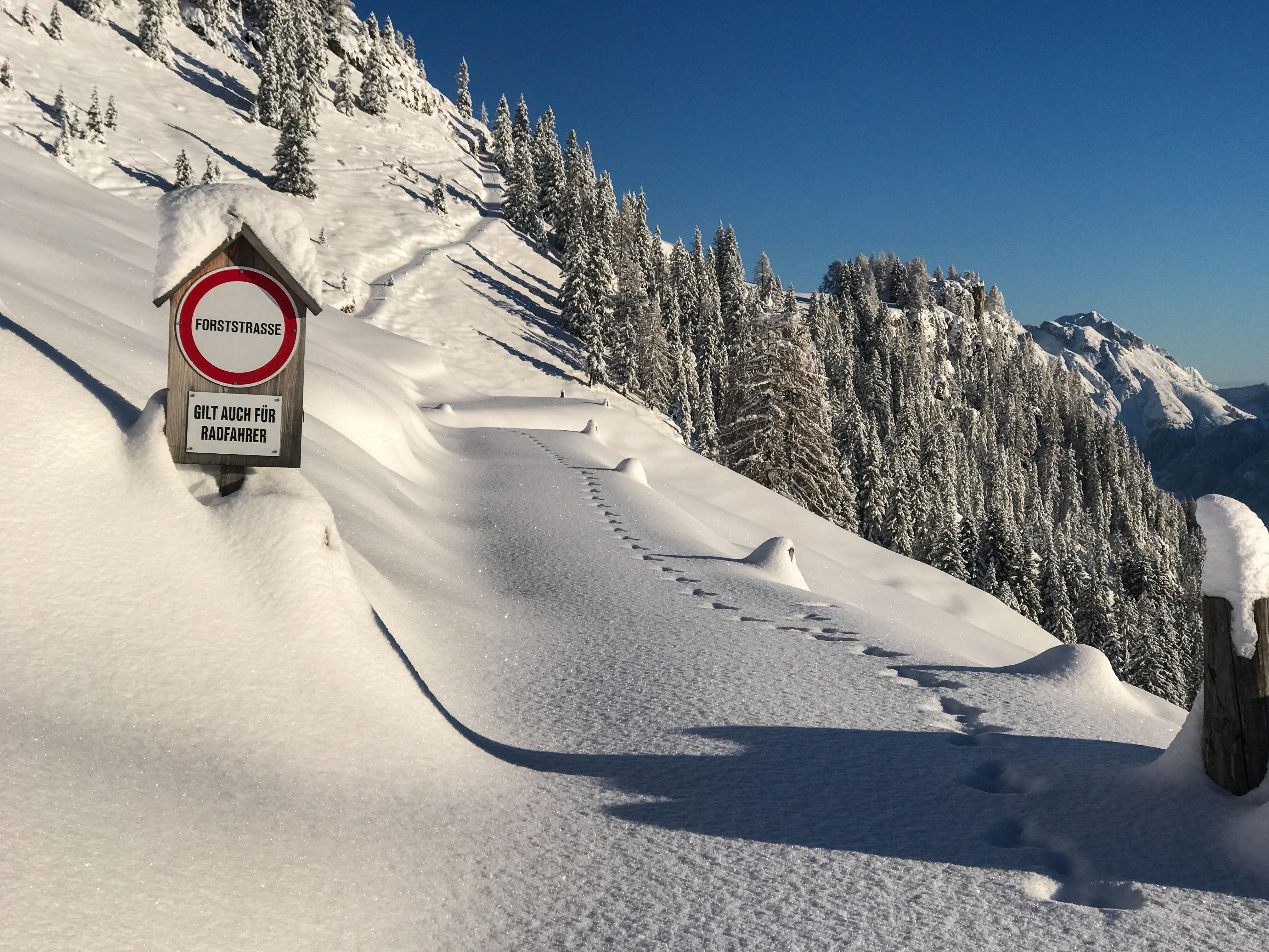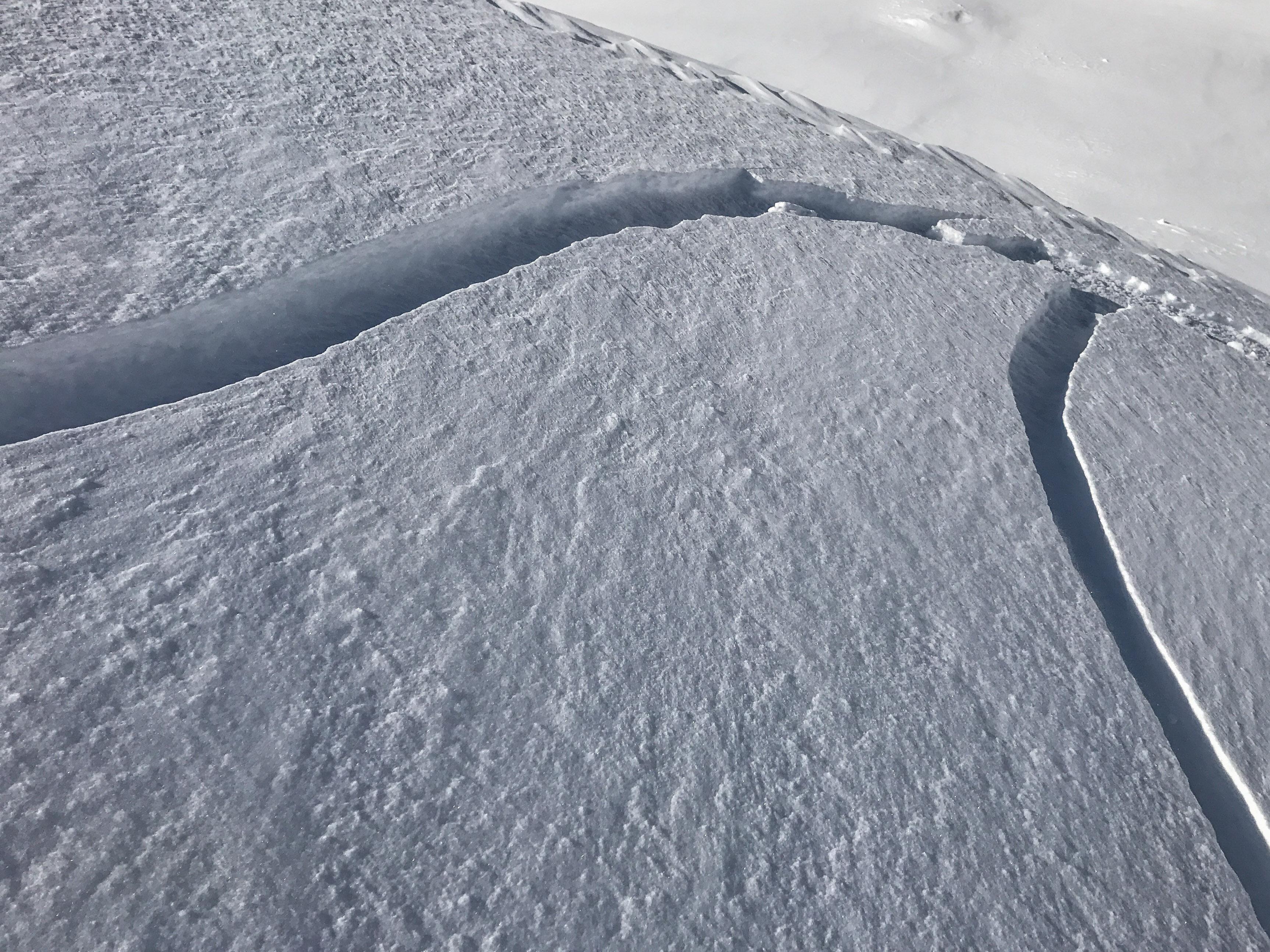 So ab 1800 m erste frische Windzeichen am Schnee und auf Höhe der Torsäule die ersten frischen Triebschneeflächen.