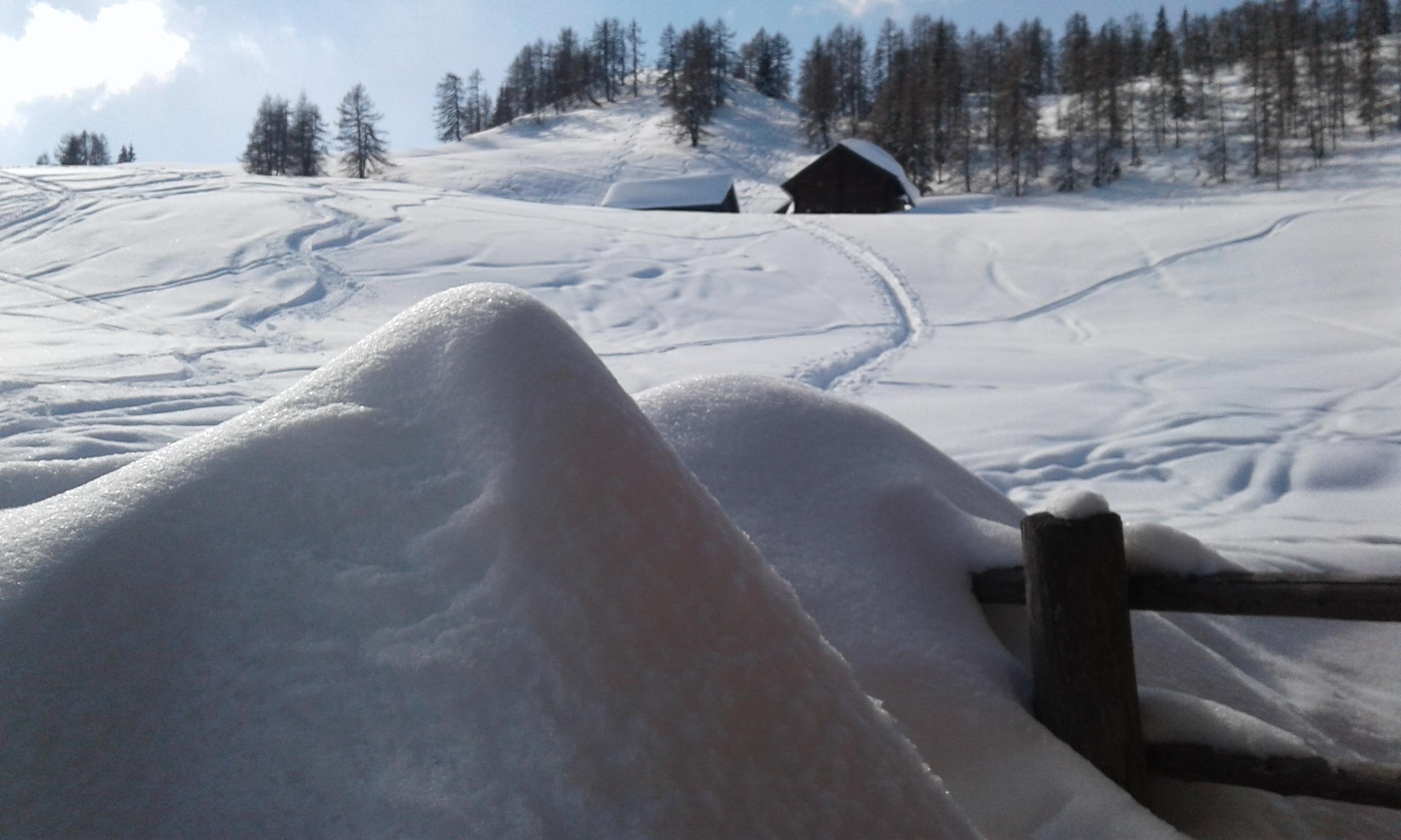 Im unteren Teil eisige Aufstiegsspur bis zum Sattelbauer. Ab dem Wald sehr gute Spuranlage bis zu den Lackenalmen. Hier entscheiden wir uns auf den Nebengipfel des Lackenkogel zu gehen. Abfahrt direkt vom Gipfel durch unverspurten super Pulverschnee bis zur Göttfried Alm.