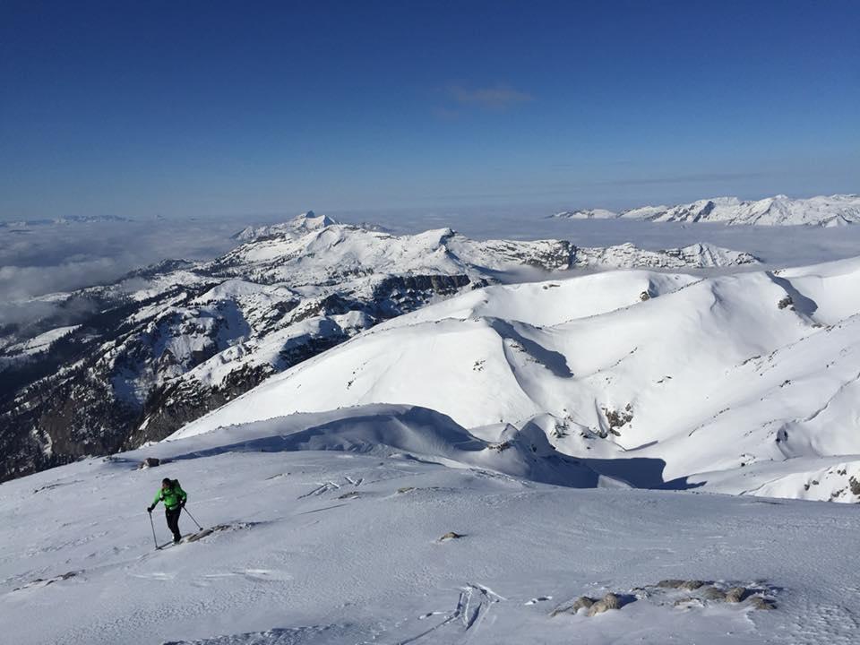 Wetter: Nebel bis ca. 1200 m, ab Mittag steigend. Darüber strahlender Sonnenschein. Windstill.