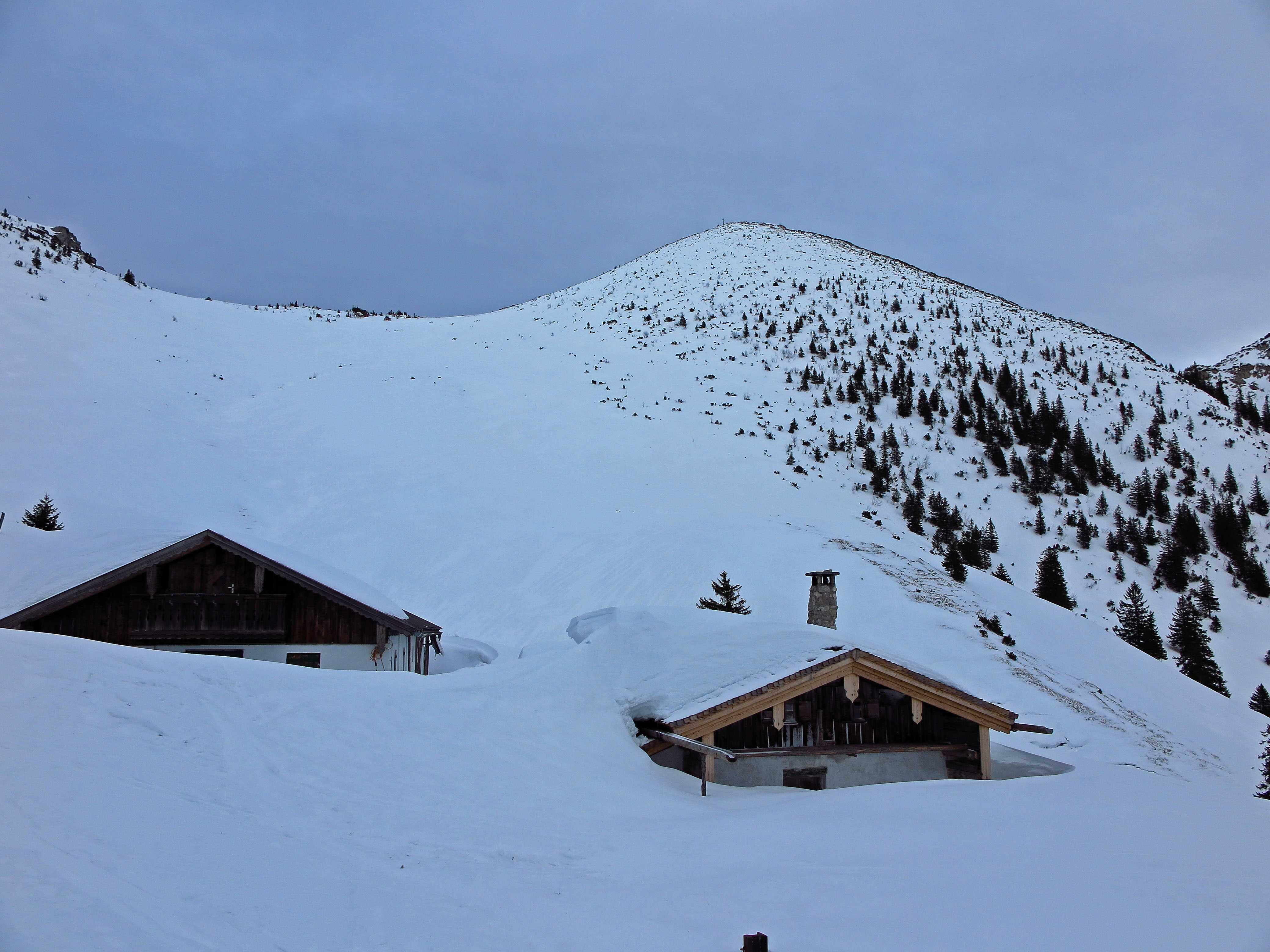 Schneelage: Rodelbahn im guten Zustand, kaum eisige Stellen. Ab ca. 1100m Harschkruste auf Schneeoberfläche; ab ca. 1400m durchgehende tragende Harschschicht. Neuschnee unbedeutend (max. 1cm, verblasen). Abfahrt auf tragendem Harschdeckel ging besser als befürchtet. Gipfelanstieg ab Sattel mit z.T. hartem Regenharsch bedeckt, ohne Harscheisen nicht ratsam. Bin oberen Teil zu Fuß zum Gipfel auf- und abgestiegen (etwas mühsam wegen wiederholtem Einbrechen, aber sicher). Gipfelgrat mit Blankeis bedeckt.