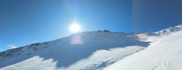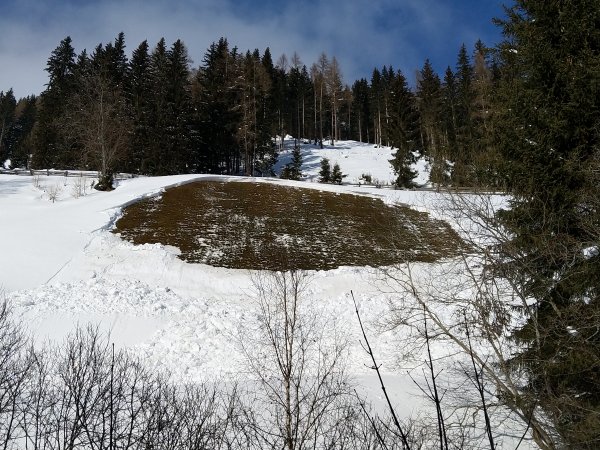 Mächtige Schneemassen in Pusterwald. In schattigen Bereichen noch immer feinster Pulver, ansonsten tw wechselnde Verhältnisse zwischen Trieb und Presspulver. Oberflächlich bereits tw tragende Schneedecke.