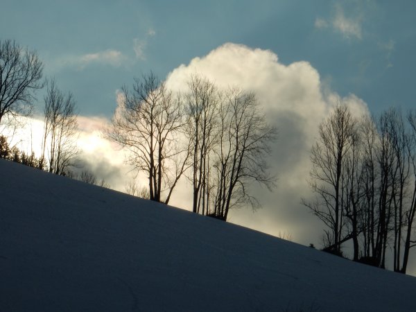 Im unteren Teil der Tour Kompaktschnee. Ab zirka 1000 m Bruchharsch. Teilweise noch Pulverschnee.