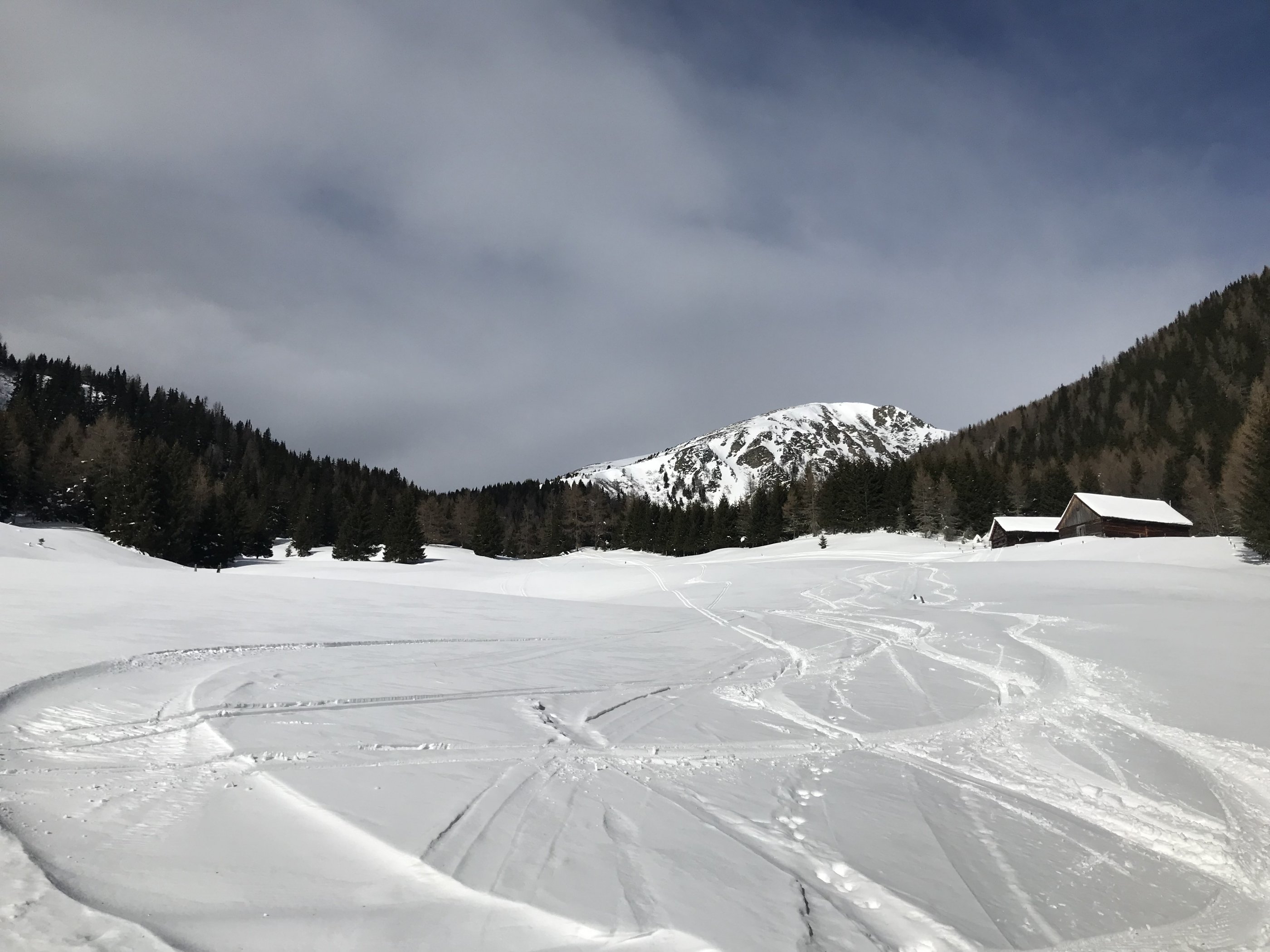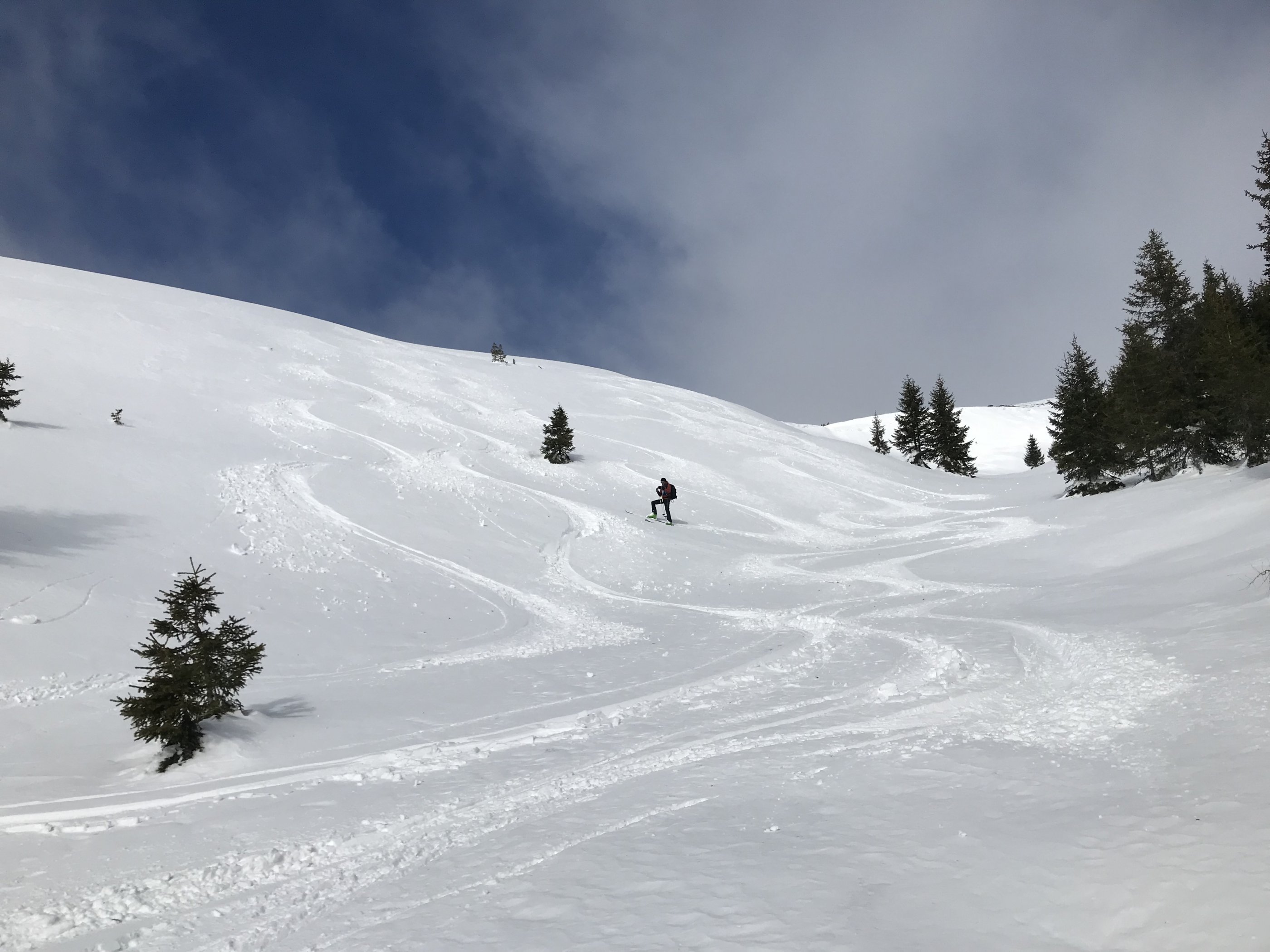 Perfekte Schneelage im gesamten Verlauf. Gute Abfahrtsbedingungen mit griffig und zum Teil noch pulvrigem Schnee. Die Forststrasse im unteren Drittel der Tour ist leider gründlich geräumt.😒