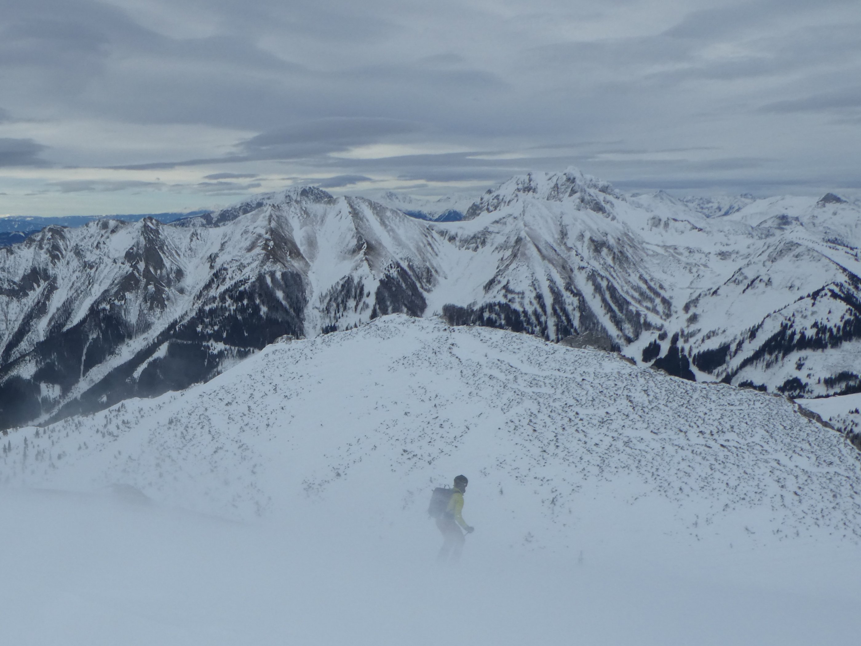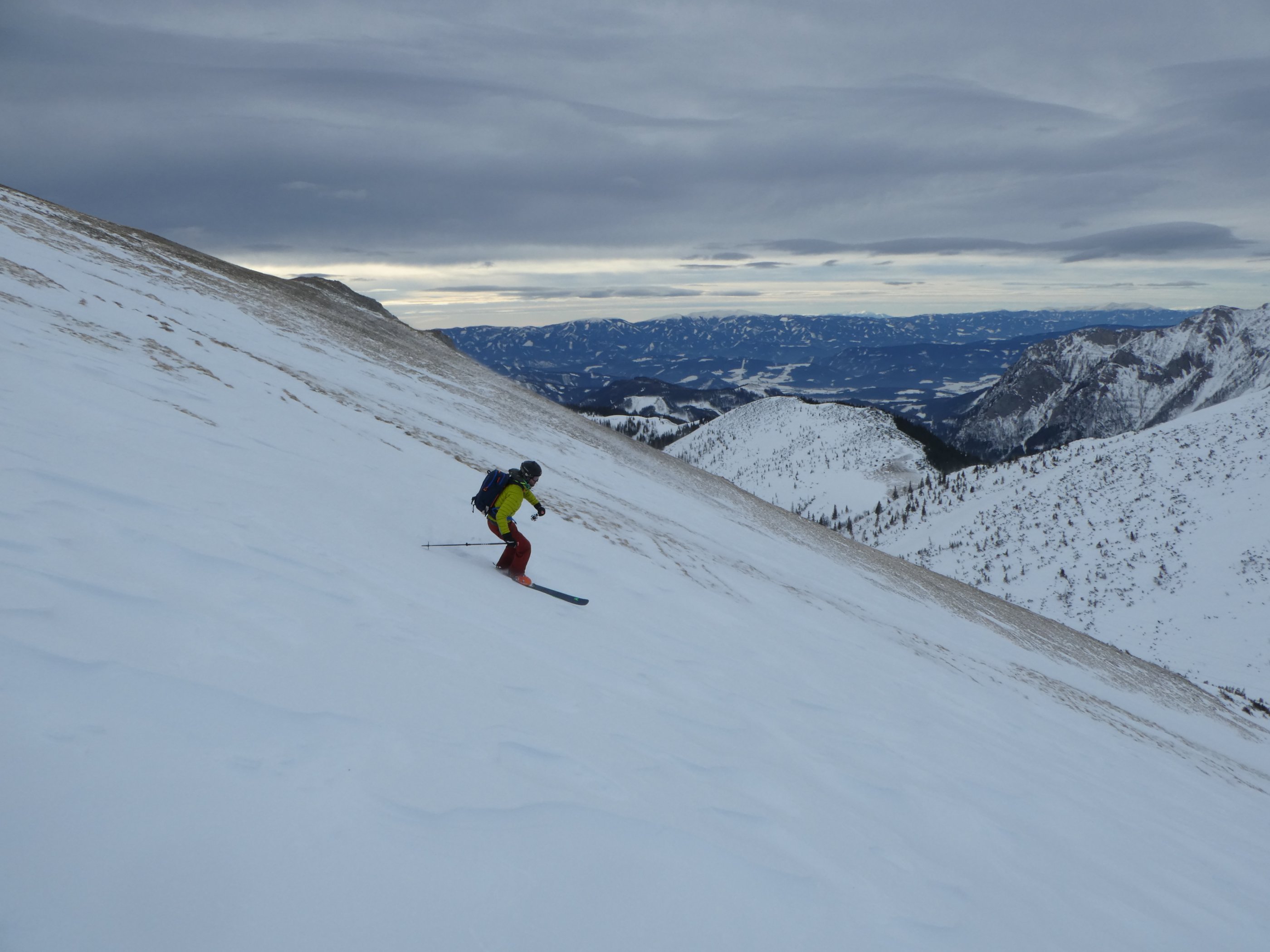 Aufstieg von den Almhäusern über Obere Handlalm -Wildfeld - Lamingegg - N.N. (Mt. Shorty); wegen des Sturms aus N/NO auf angedachte Zwischenabfahrt ins Schneeloch mit Wiederanstieg über die Leobner Mauer verzichtet und gleich über Wildfeld und Trenchtlingrinne abgefahren. Die ganze Geschichte zur Tour bald unter www.schittertour.at