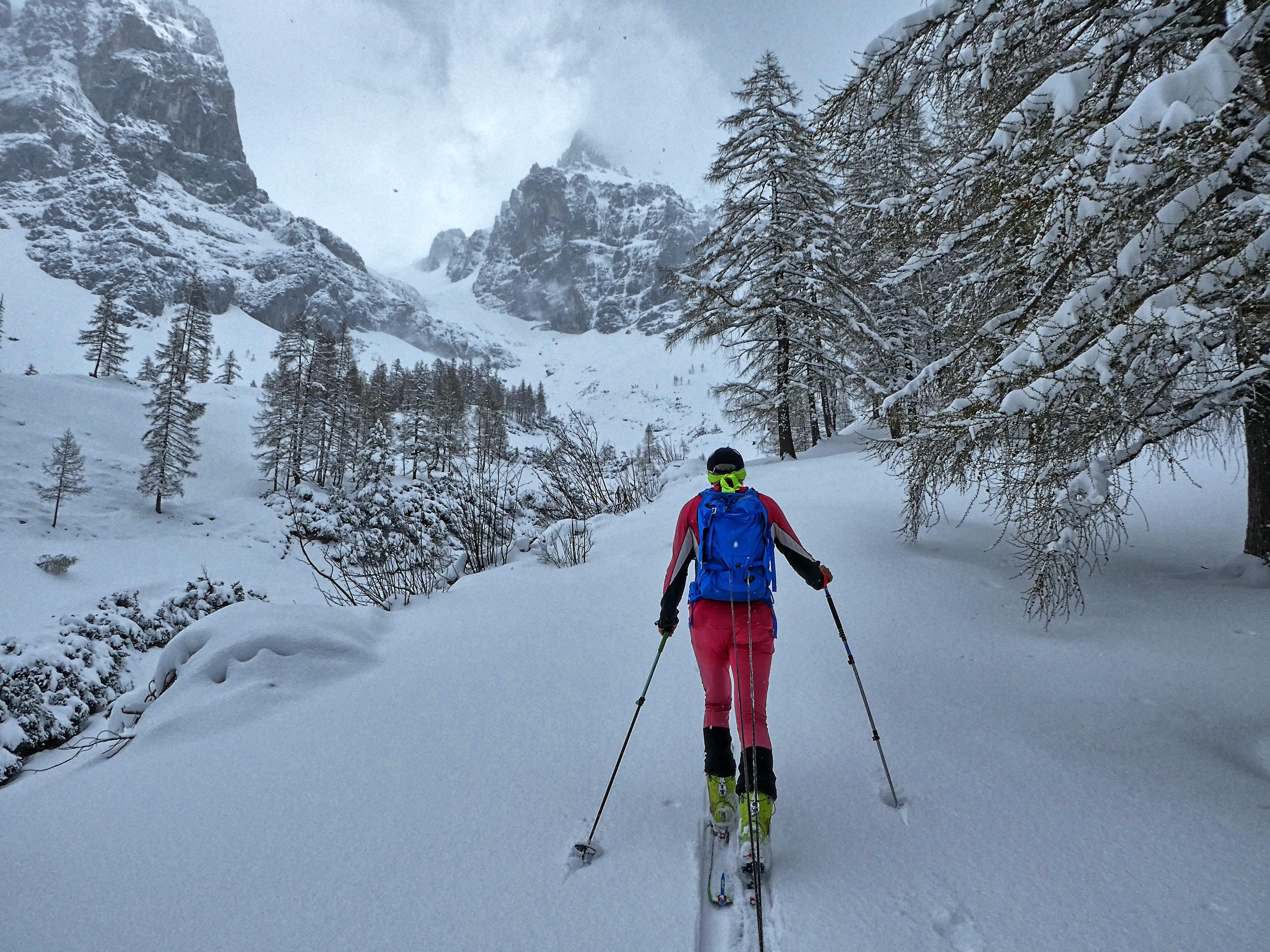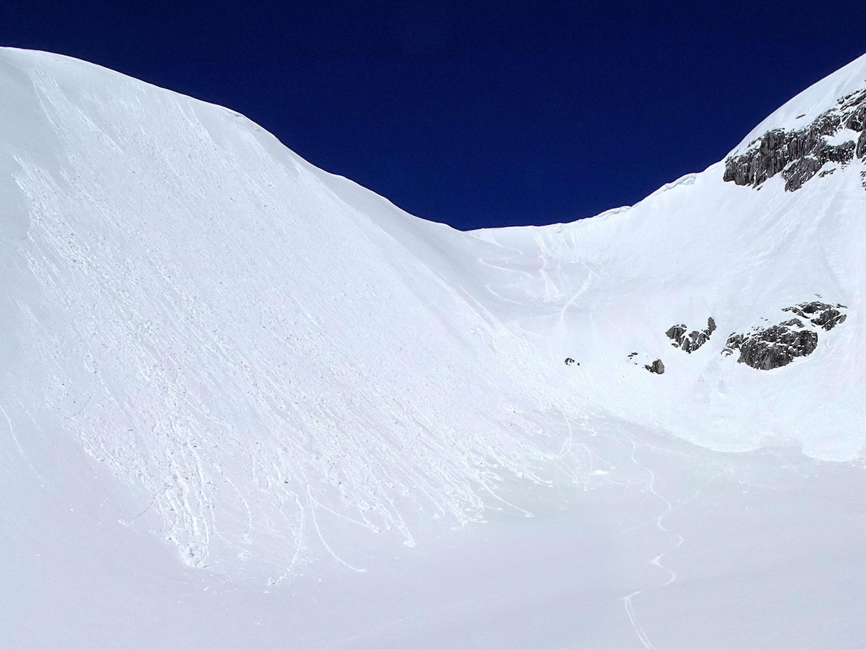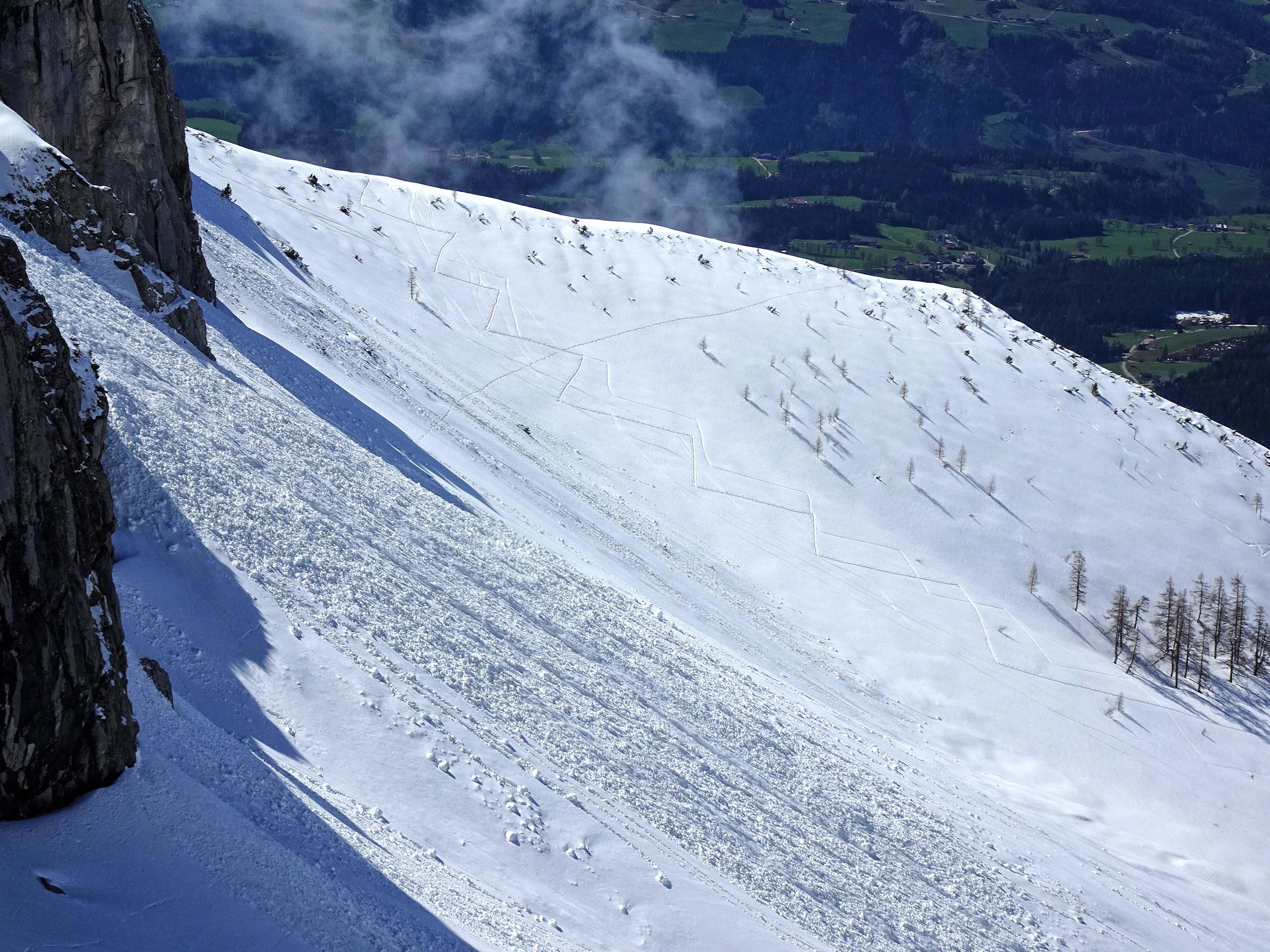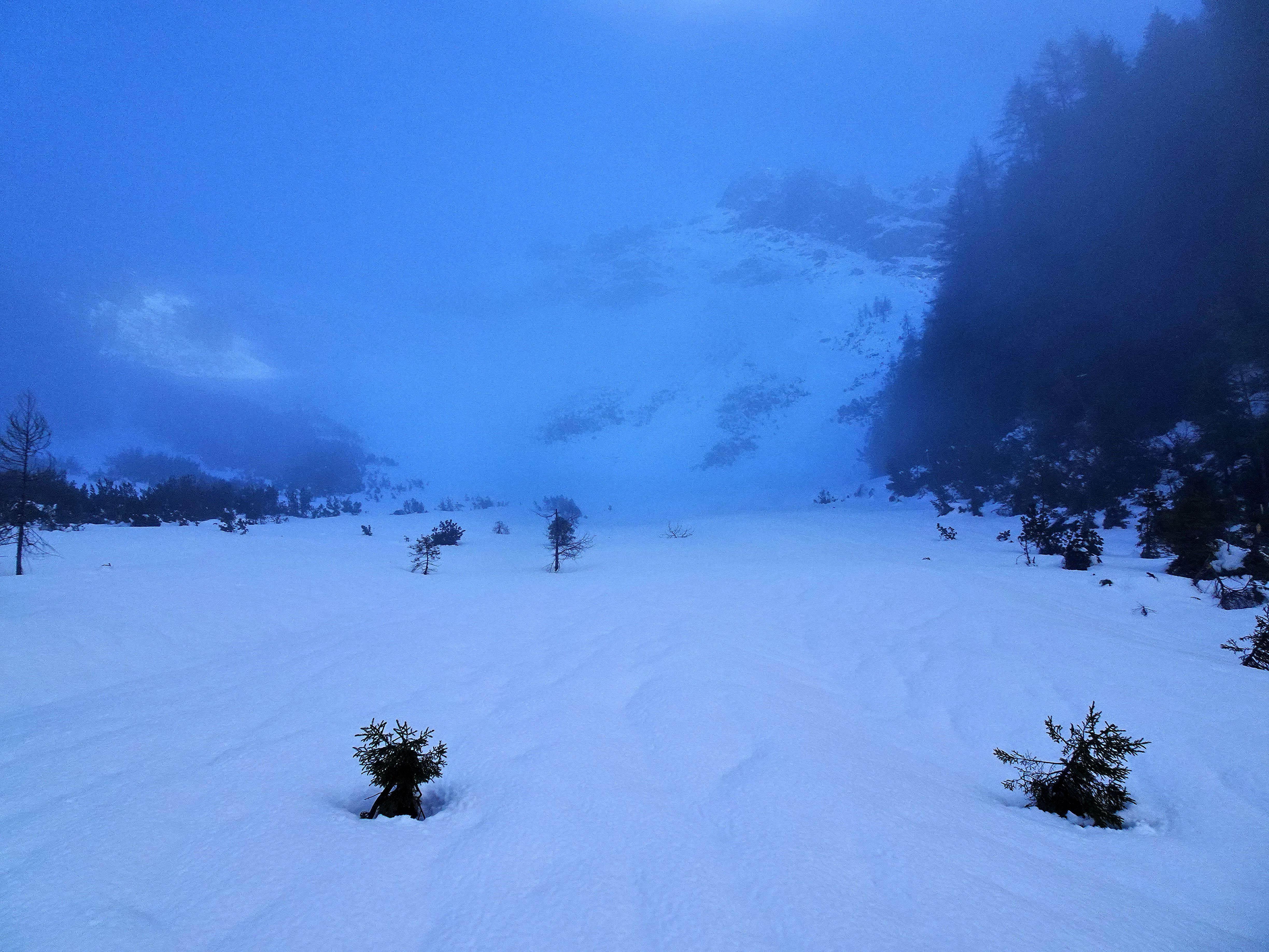 Nach einigen Tiefschneetouren heute nochmals hinterer Türlspitz ab Ramsau. Durchbruch durch die Hochnebeldecke bei 1500m, darunter der Schnee mangels Abstrahlung nass, ebenso ostseitig um 7:30 Uhr. Schattseitig Harschdeckel, der erst ab 2000m hält. Edelgriesboden bestens ausgeschneit, frühmorgens wie eine präparierte Schipiste zu fahren. Ostseitige Edelgrieseinfahrtbereits weich mit "Schneckenbildung" bis Mannsgröße ausgehend von Aufstiegsspur bzw. ab überwechteten Grat spontan.