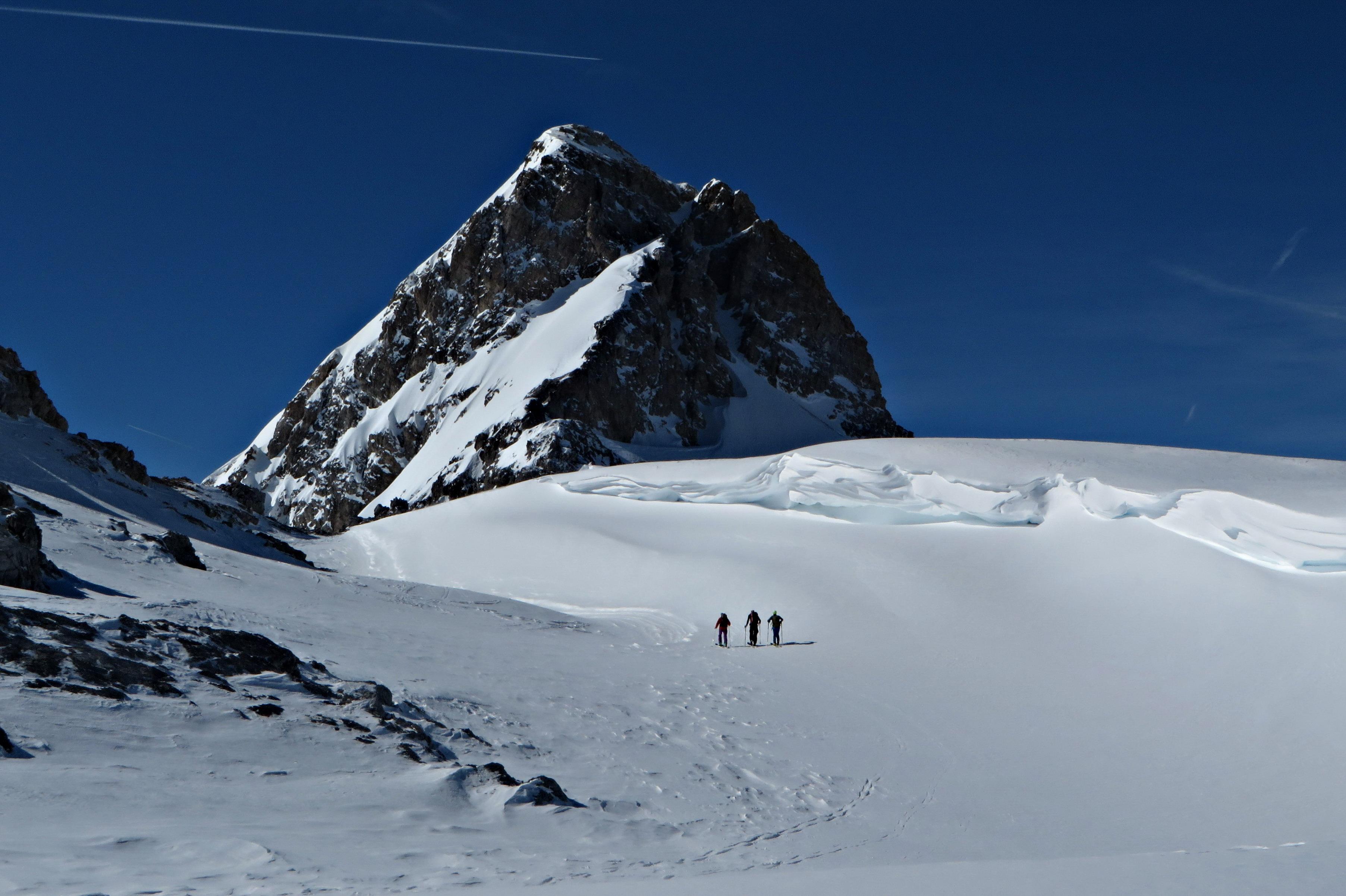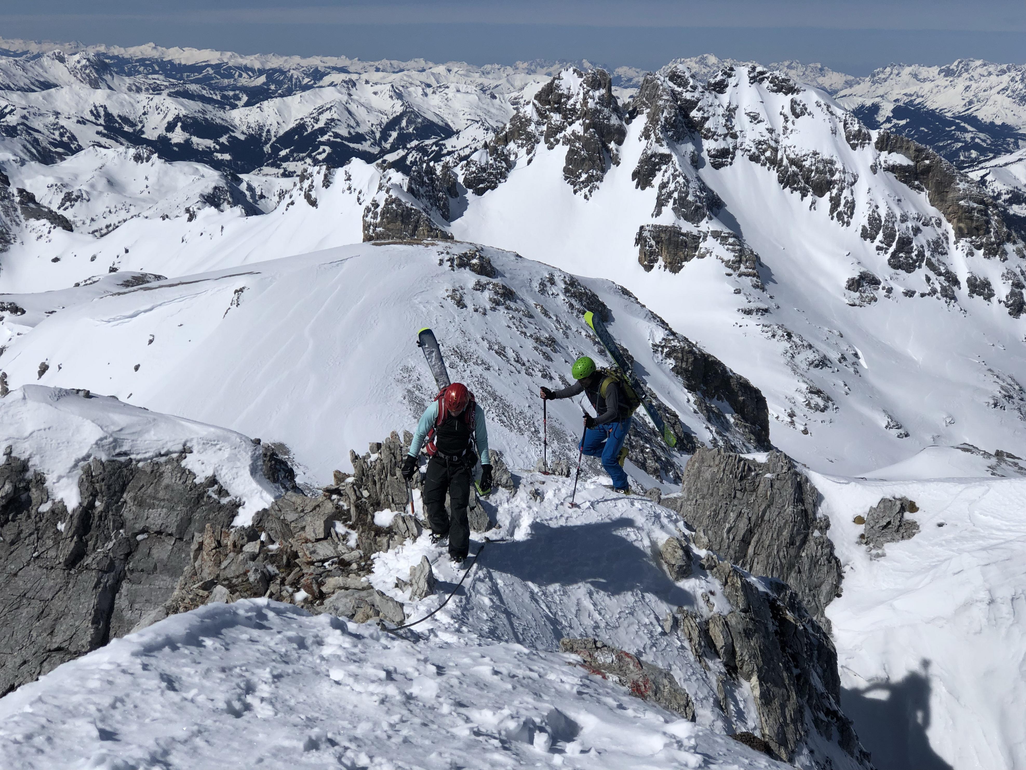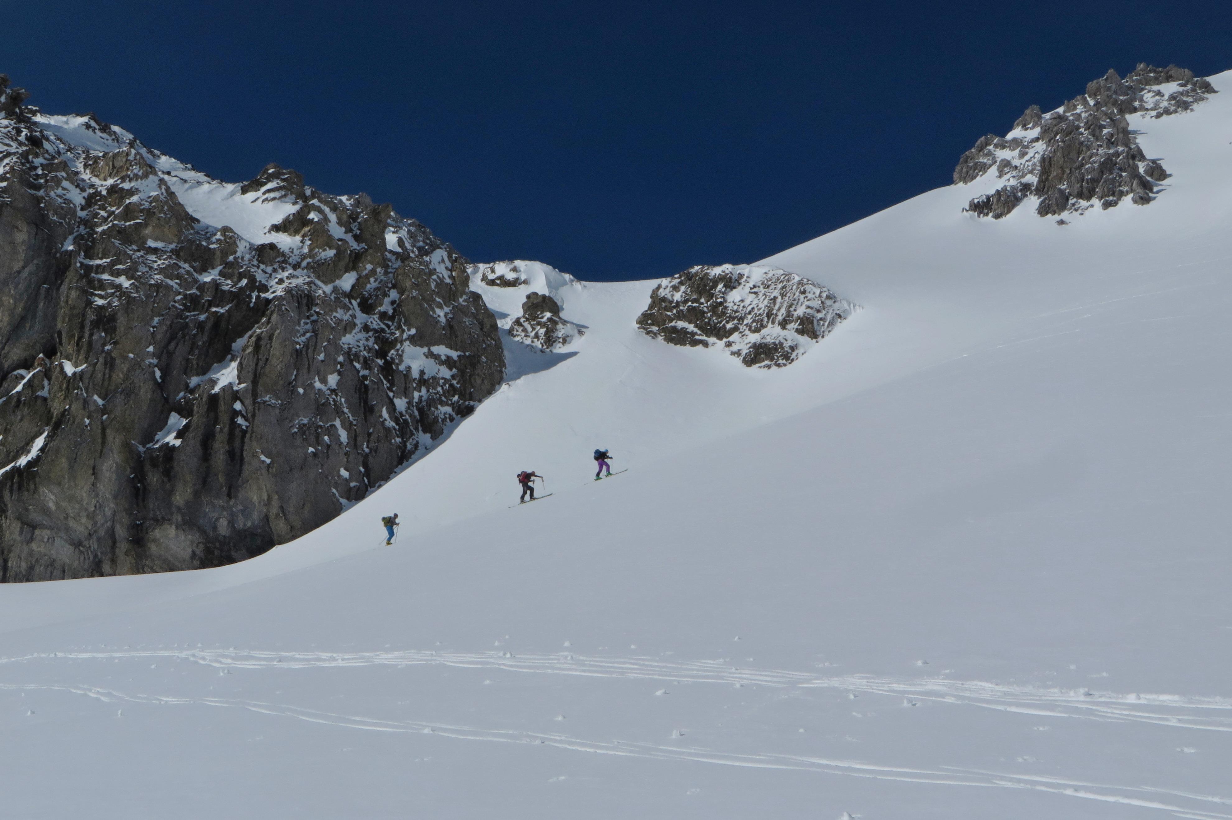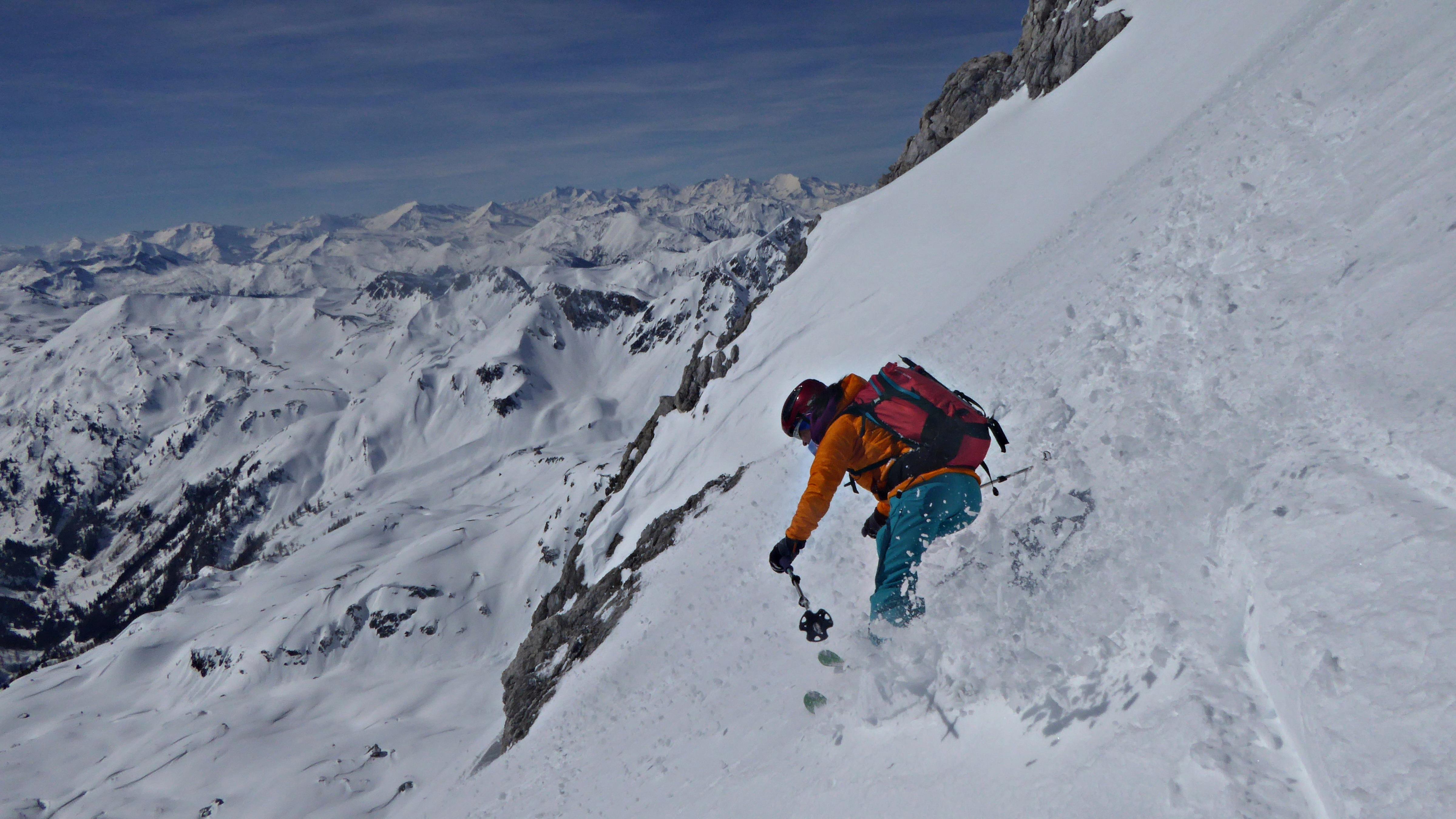 Beim Anstieg über's Urbankar noch recht harte Unterlage, auf der Nordseite des Mosermandls noch etwas alter Pulver.