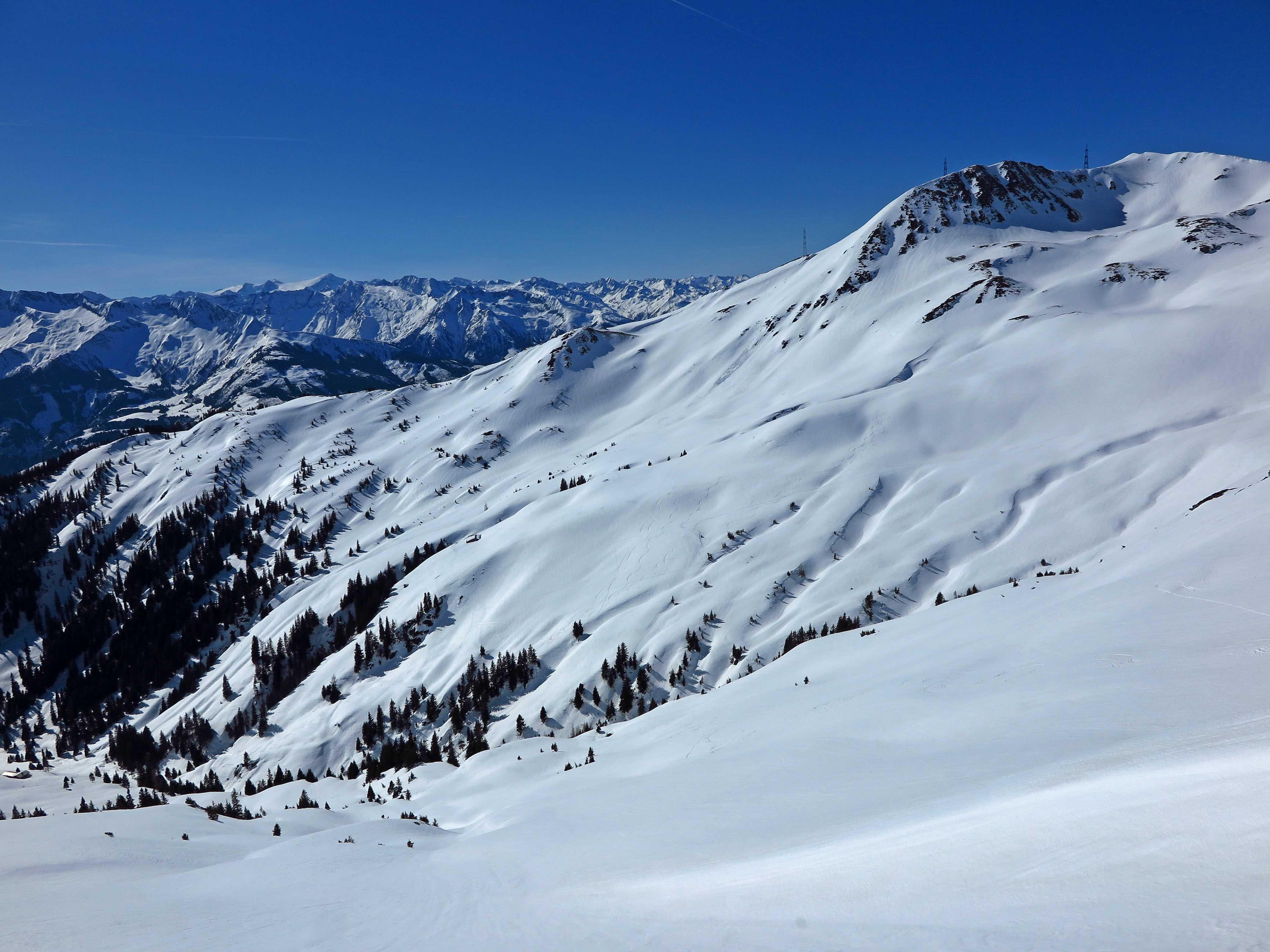 Vom Schwarzachengraben über die Reichensberg Hochalm zum Bärensteigkogel (2225). Abfahrt O-Hang zur Grindbichlalm (ca. 1830). Aufstieg Medalkogel (2123) und weiter zum Hochsaalbachkogel (2212). Firnabfahrt S-Hang und Wiederanstieg zum Hochkogel (2249). Firnabfahrt SW-Hang und Anstieg retour zum Bärensteigkogel. Pulverabfahrt N-Seite zurück zum PP.