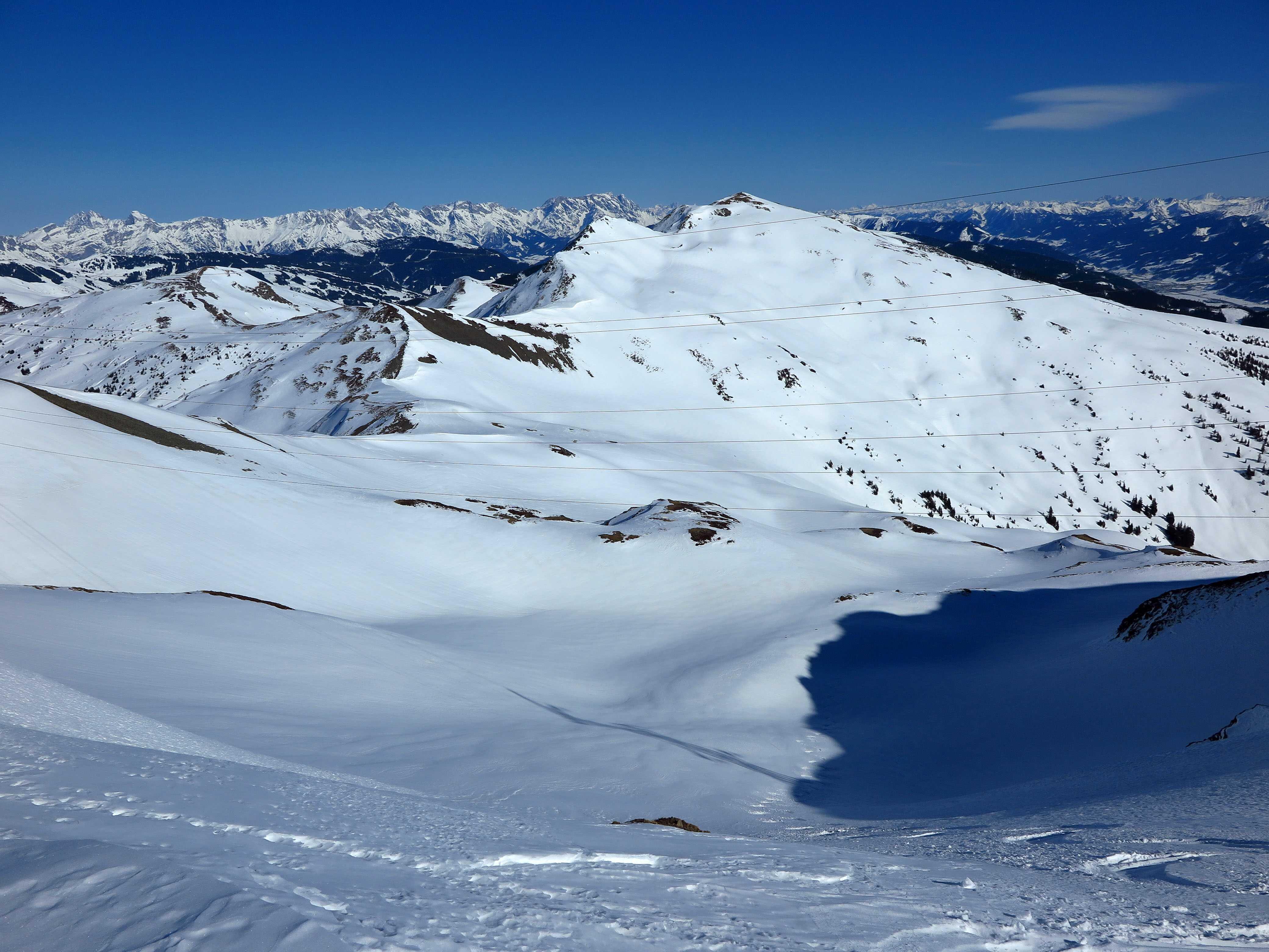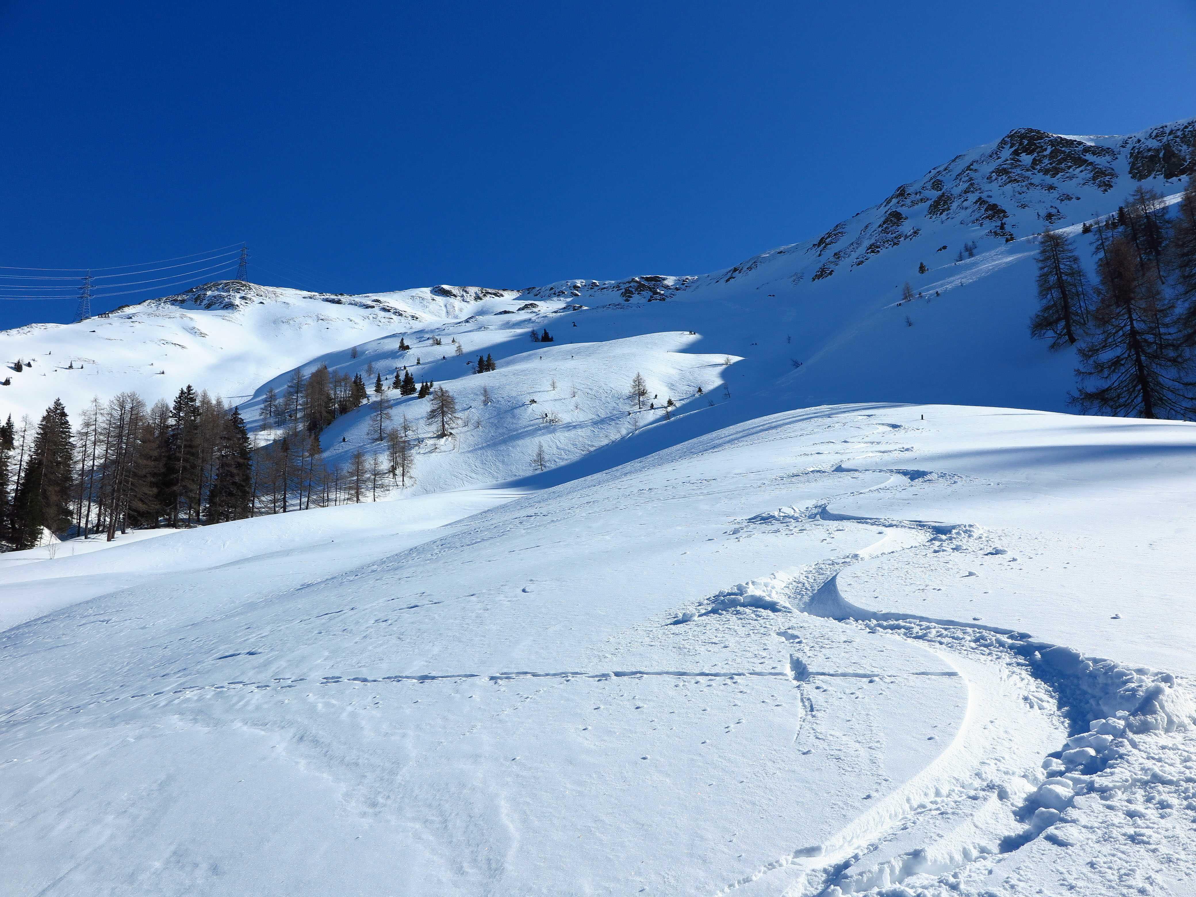Schneelage: Auf Schattenseiten ab ca. 1600m noch Pulver, der nach oben hin zunehmend windbeeinflusst, aber noch ordentlich fahrbar ist. Sonnseitig firnte es im Laufe des Vormittags auf. Alle Hänge waren gut fahrbar.