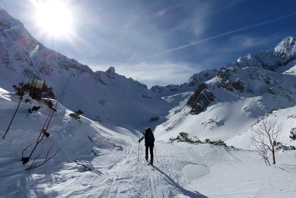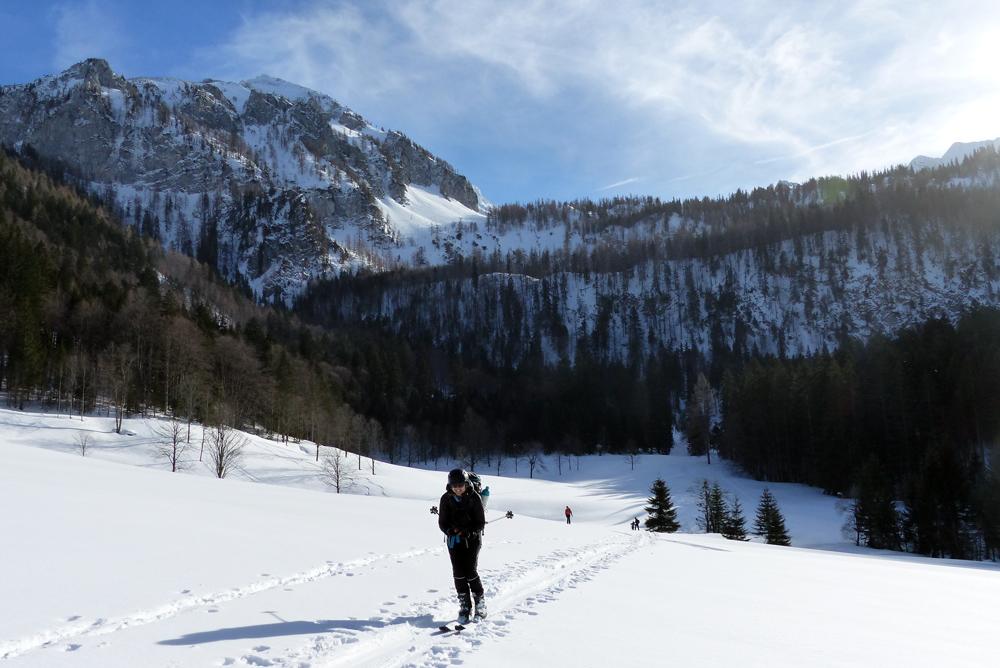 AP: Großzügiger Parkplatz 500m nach dem Biathlonzentrum in der Innerrosenau am Hengstenpass. Mitte Februar, geringe LWST, jede Menge Schnee, Plusgrade, Sonne, kein Wind, Powder und keine Lawinentätigkeiten. Einzig im Bereich "Schafplan" hat der Wind ordentlich Schnee gekehrt, ansonsten in allen Abschnitten (heute) perfekte Bedingungen.