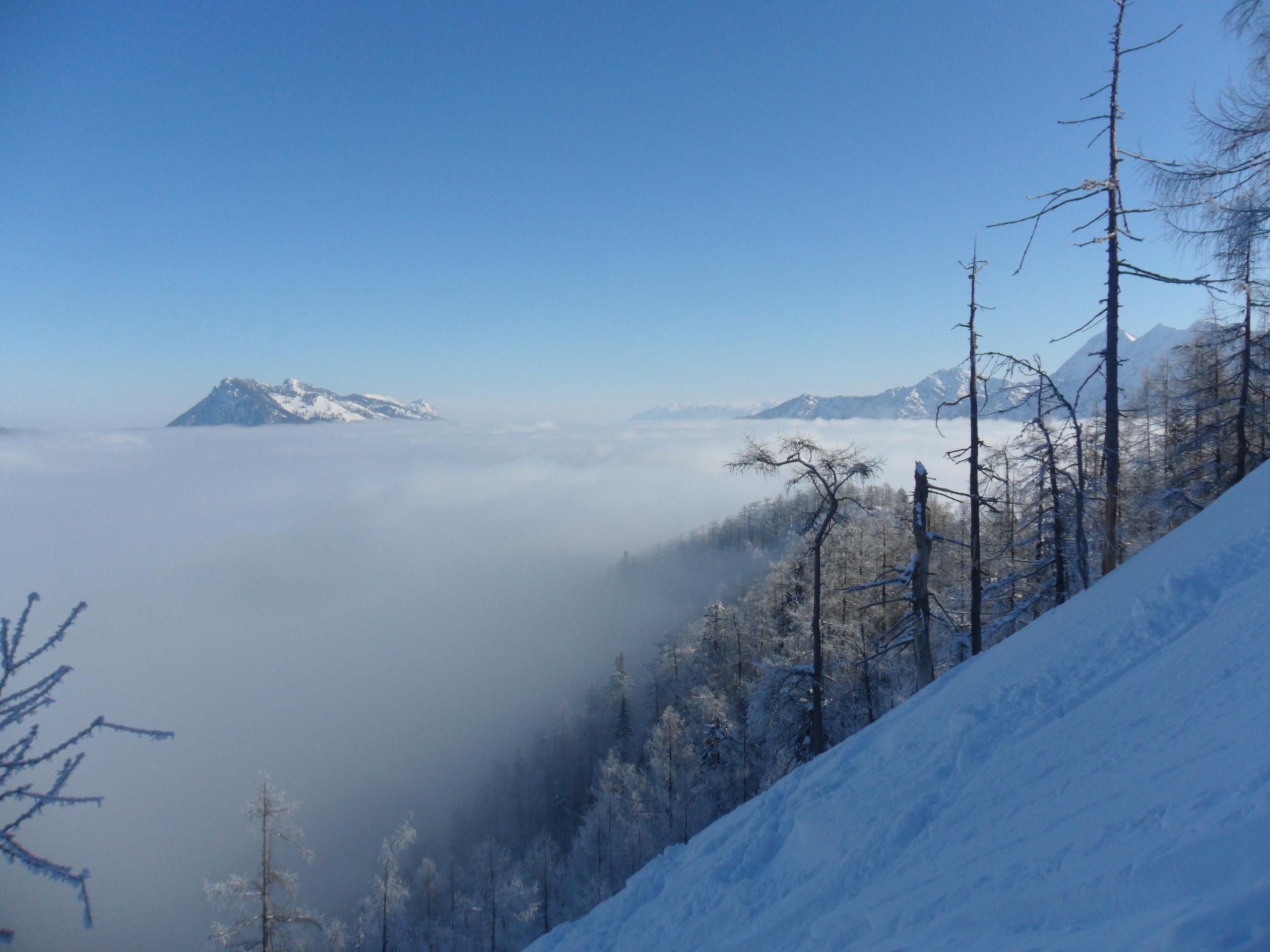 Und meine Felle (Dieser Mist Hybrid Kram) haben auch miserabel gehalten. Gott sei Dank hatte ich noch ein zweites altes Paar dabei, die dafür aber ordentlich anstollten. Gedanklich schon 3x umgekehrt, geht das leider bei der Tour nicht. Das Auto steht auf der anderen Seite vom Berg ;).
