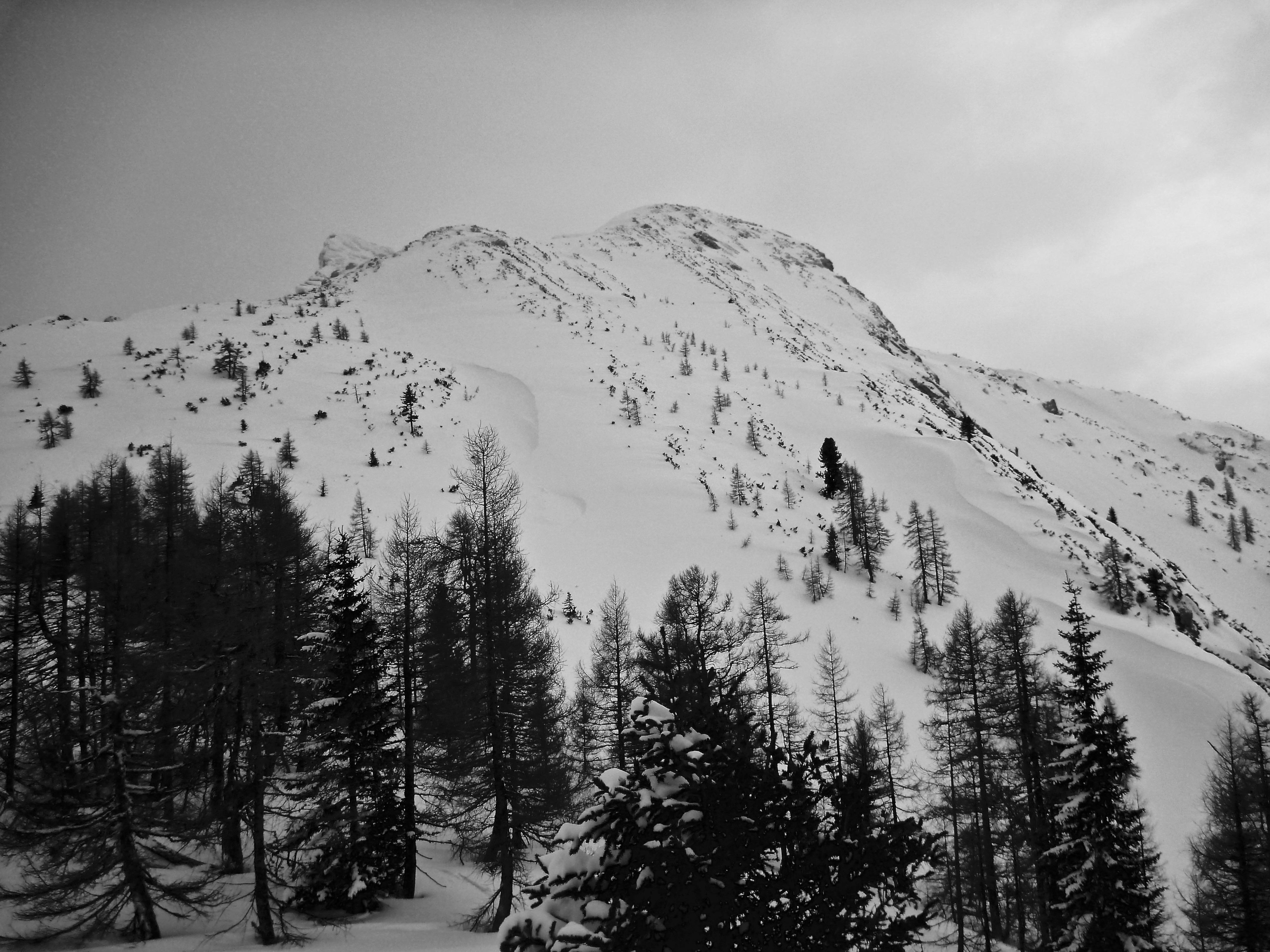 Lawinen: bis zur Waldgrenze absolut stabil, nicht mal ein Rutscherl, Gipfelbereich abgeweht und tw. voll beladen, aber gut erkenn- und umgehbar.