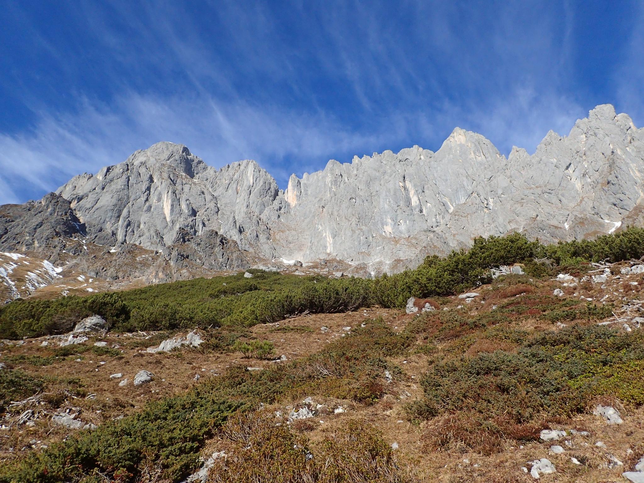 Bis zum Gipfel sonnig und beinahe windstill, später stellenweise böiger Wind und rasche Eintrübung von Westen bzw. Nordwesten mit zunehmend diffuser Sicht.