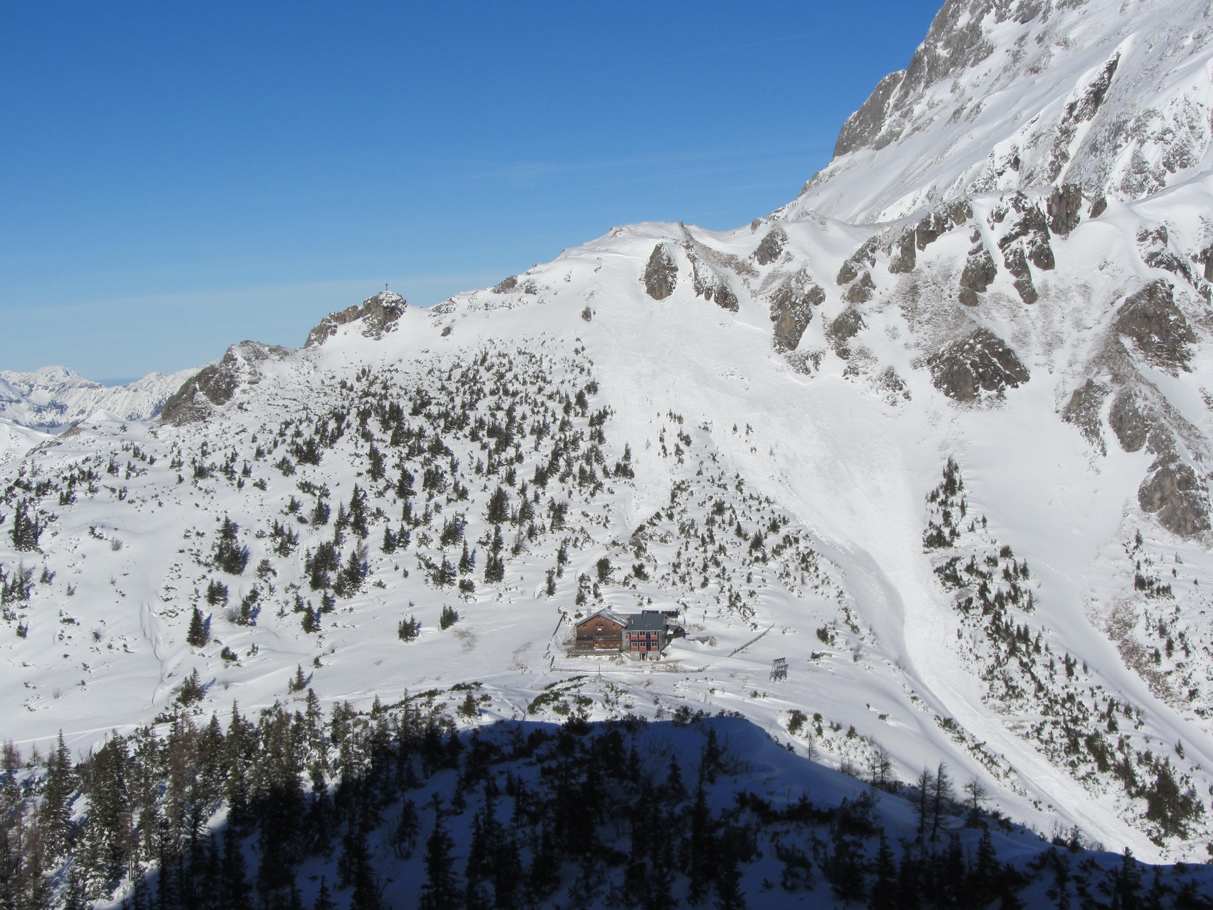 Nachbetrachtend wäre bei früherem Start die "Kleine Reib'n" auch mit Schneeschuhen dann doch denkbar gewesen - einige am frühen Nachmittag aufsteigende Tourengeher dürften sie wahrscheinlich gemacht haben.